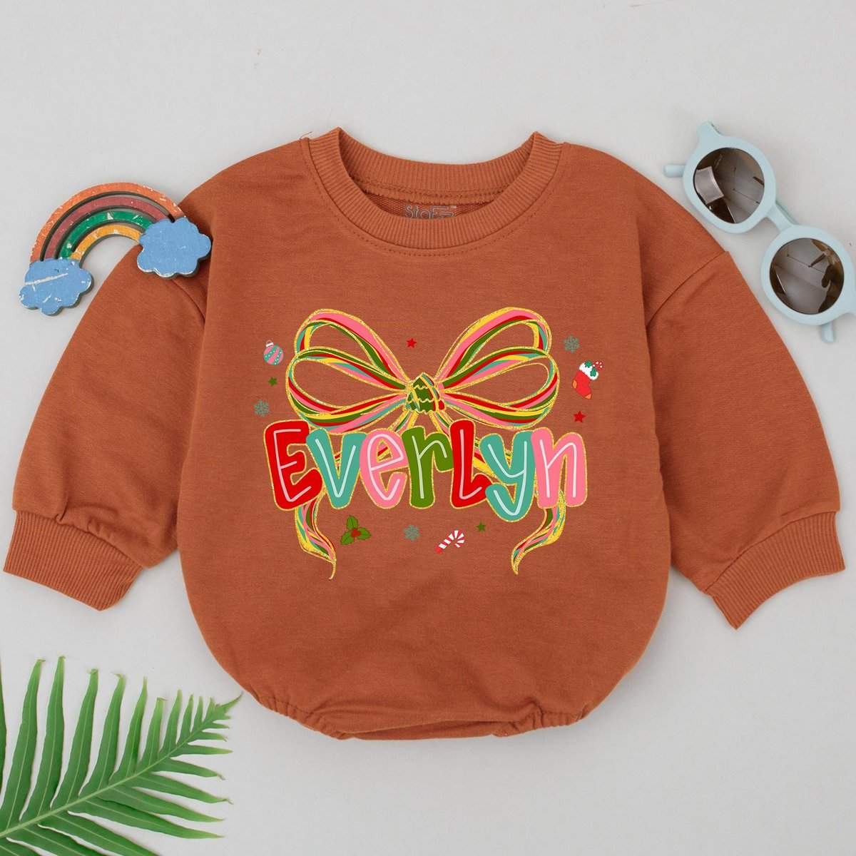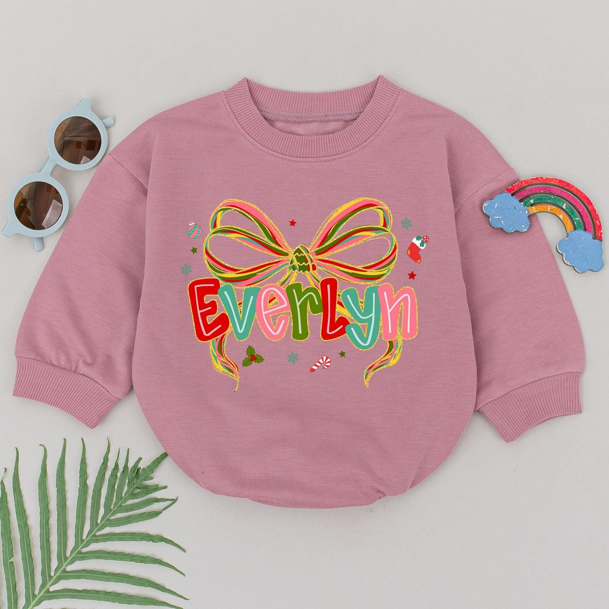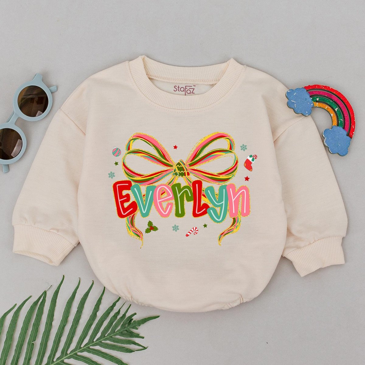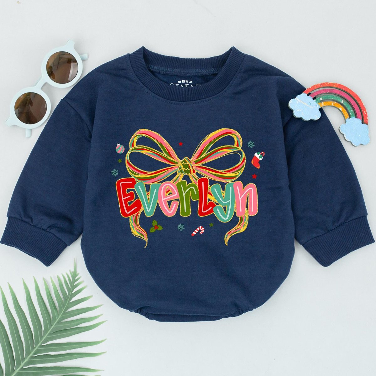 Personalized Christmas Name Romper My First Christmas Bodysuit Colorful Bow Baby Girl Outfit Xmas Ba