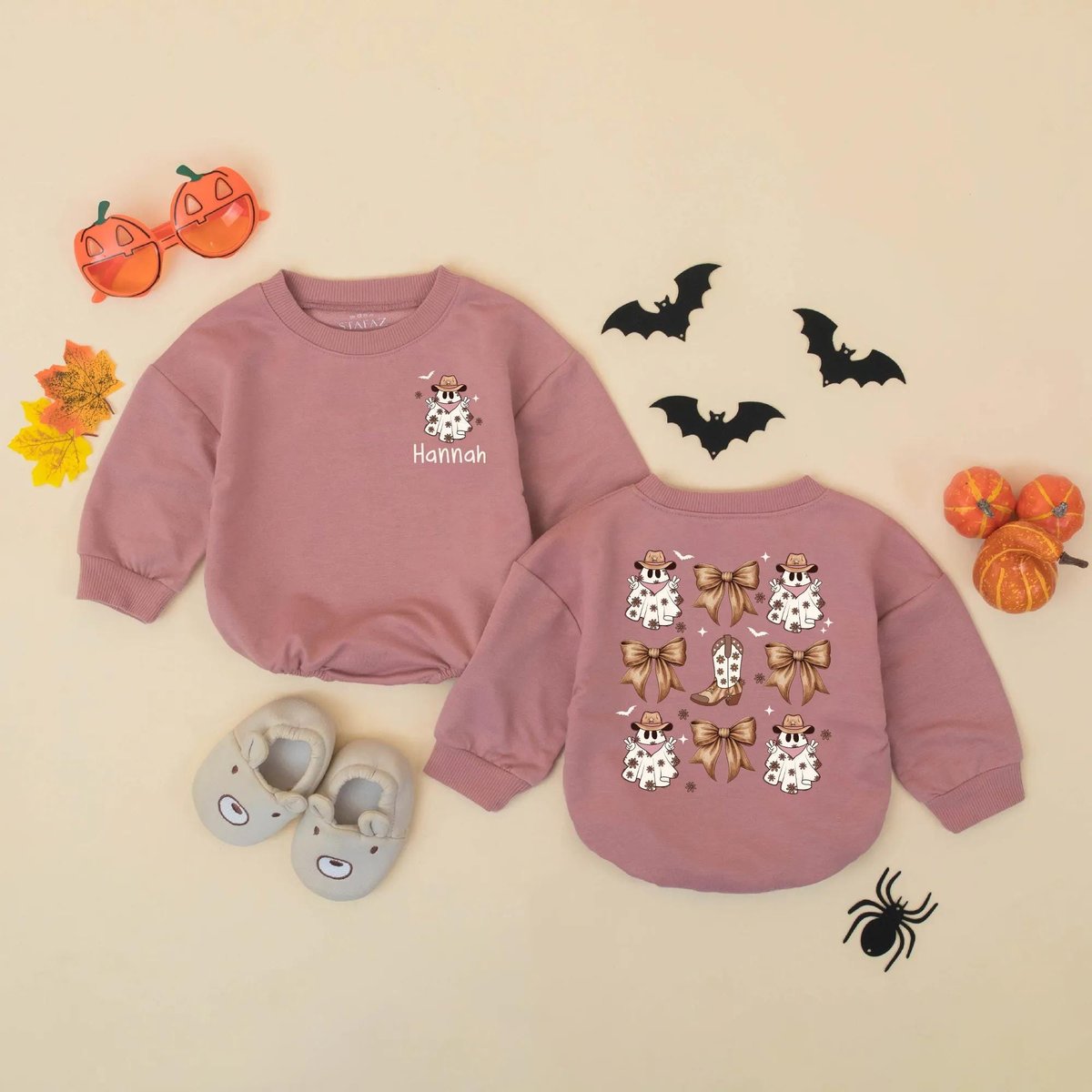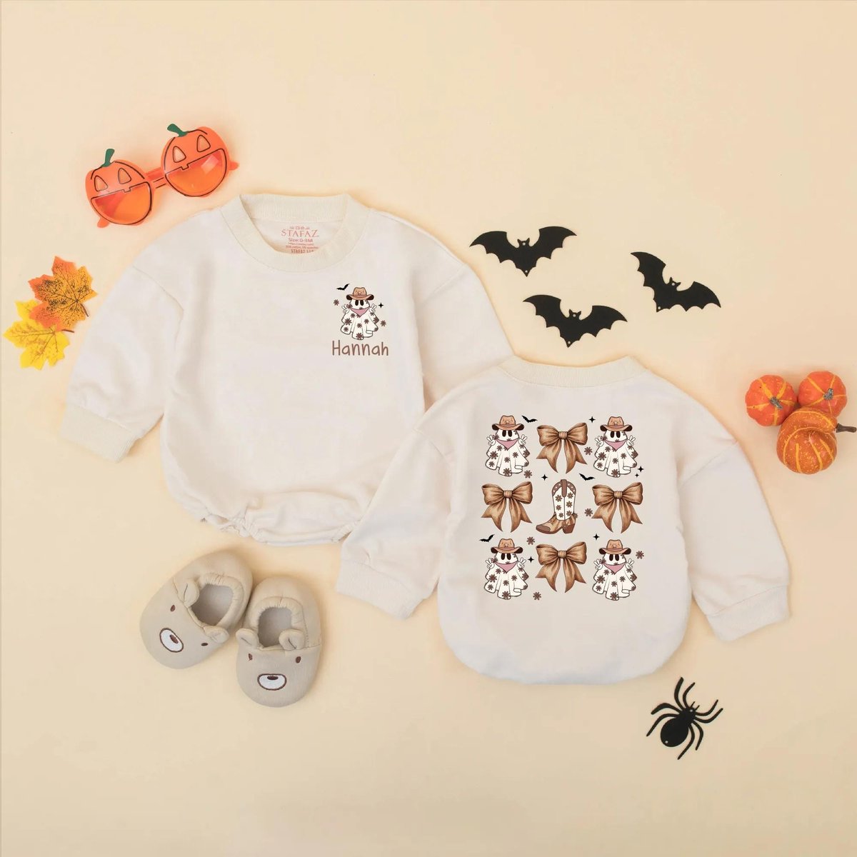 Personalized Cute Halloween Cowboy Ghost Baby Romper Western Halloween Bodysuit My First Halloween O 432