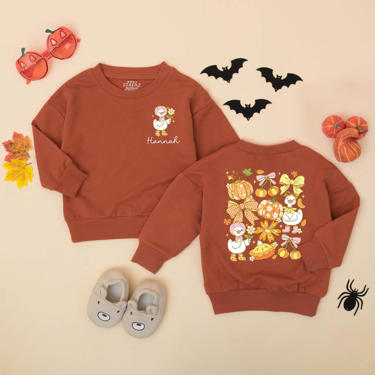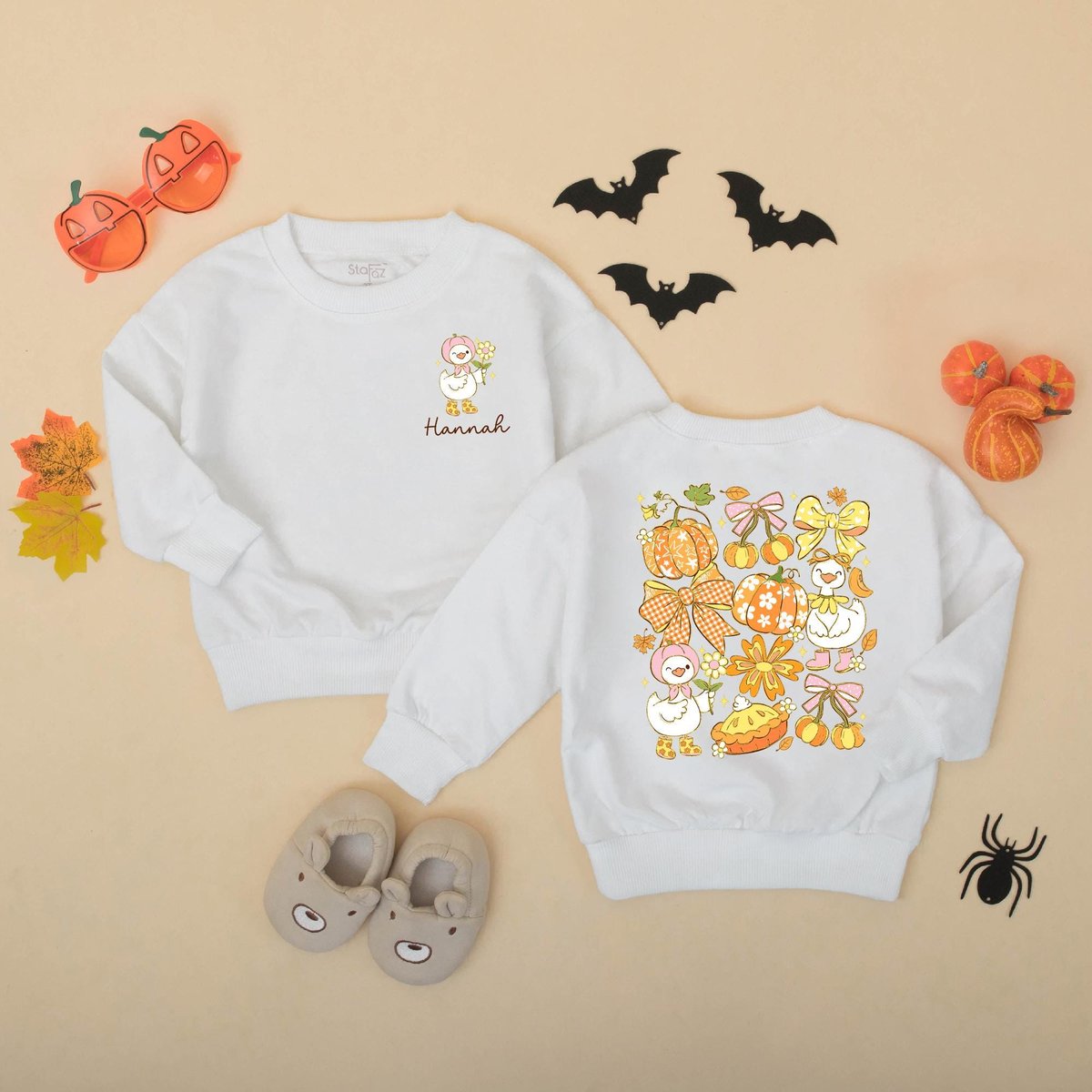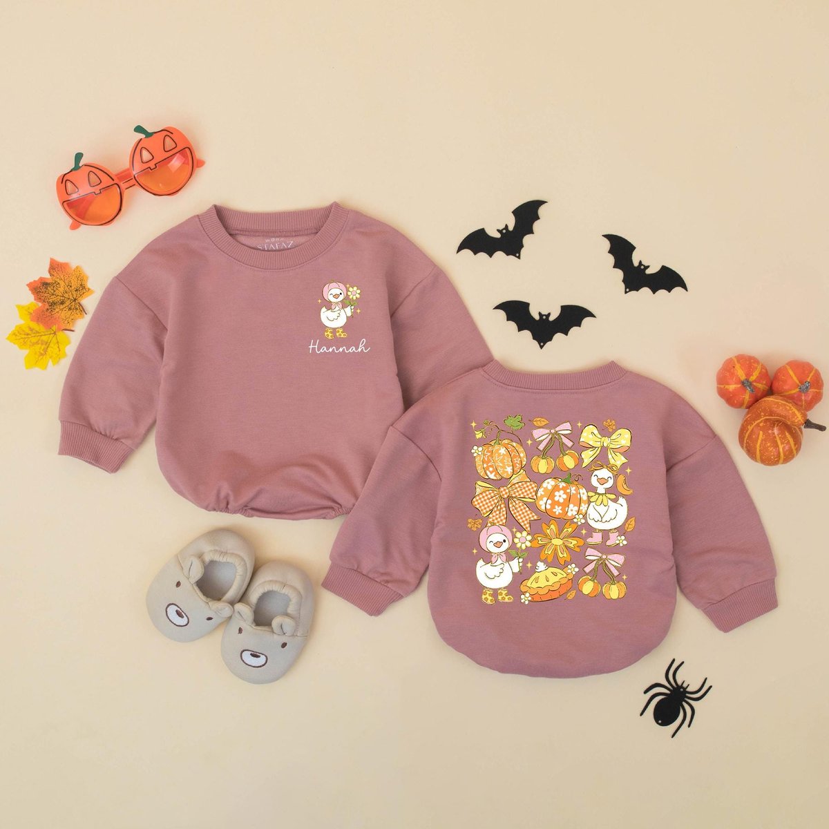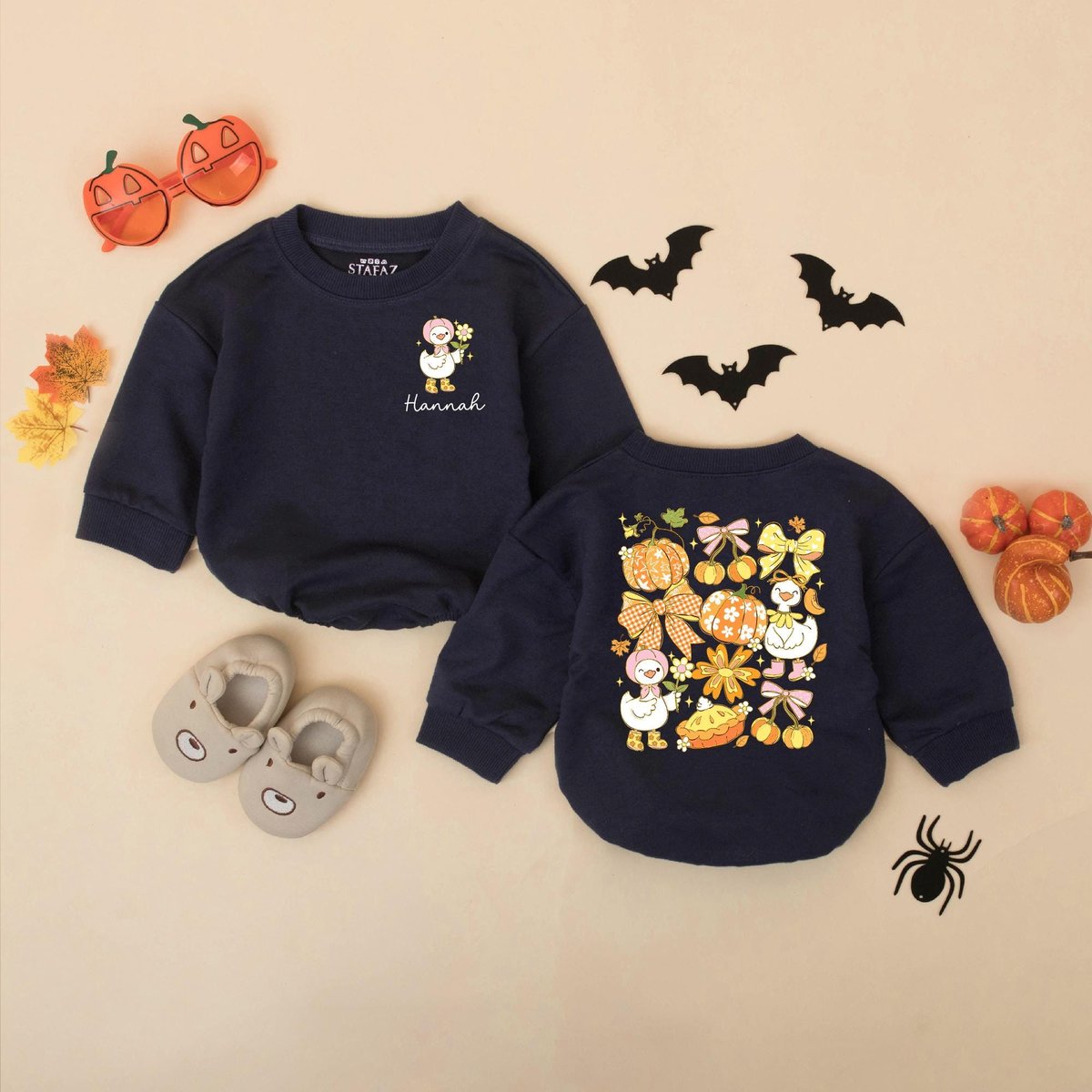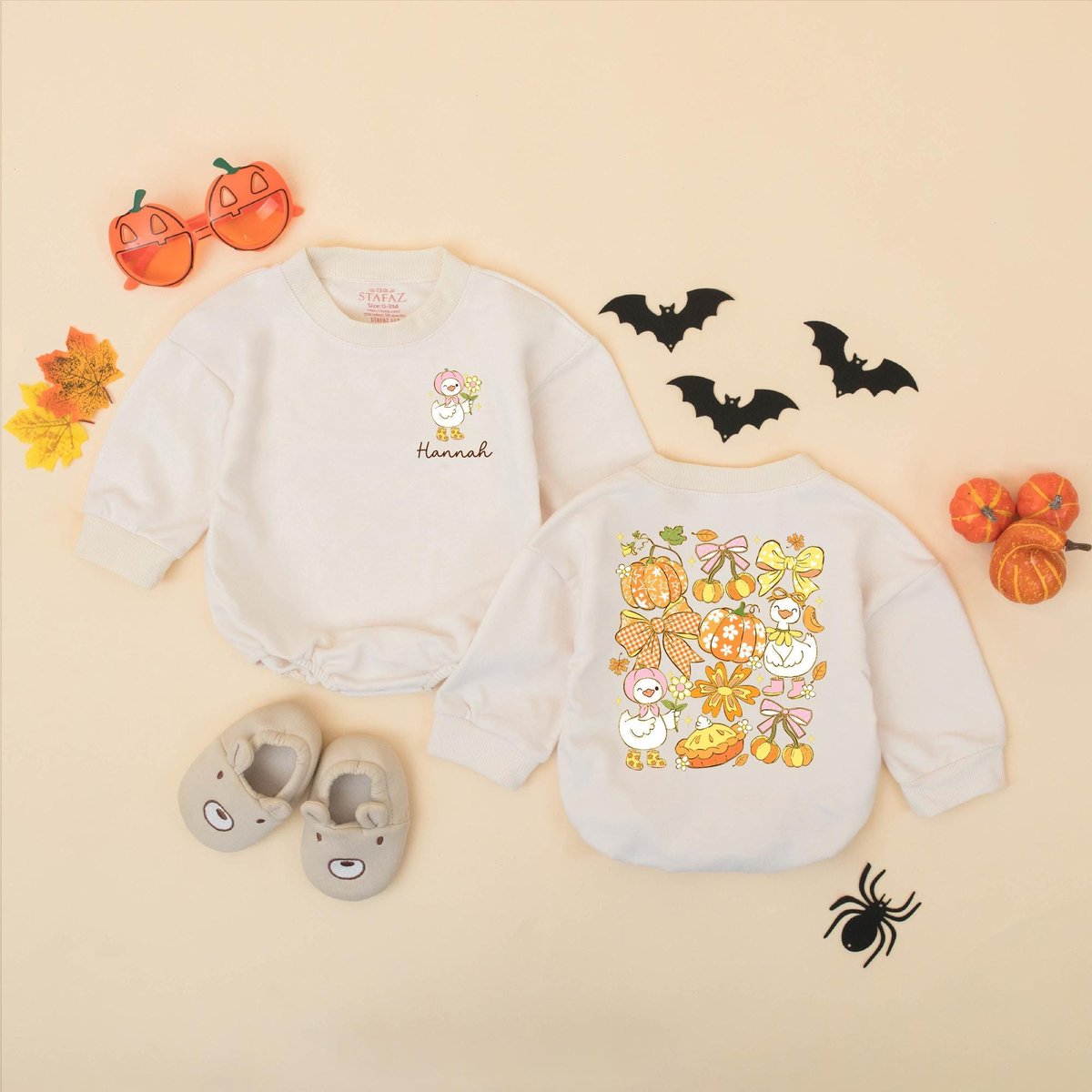 Personalized Fall Goose Baby Romper Girly Pumpkin Autumn Baby Bodysuit Custom Name Autumn Outfit for 432
