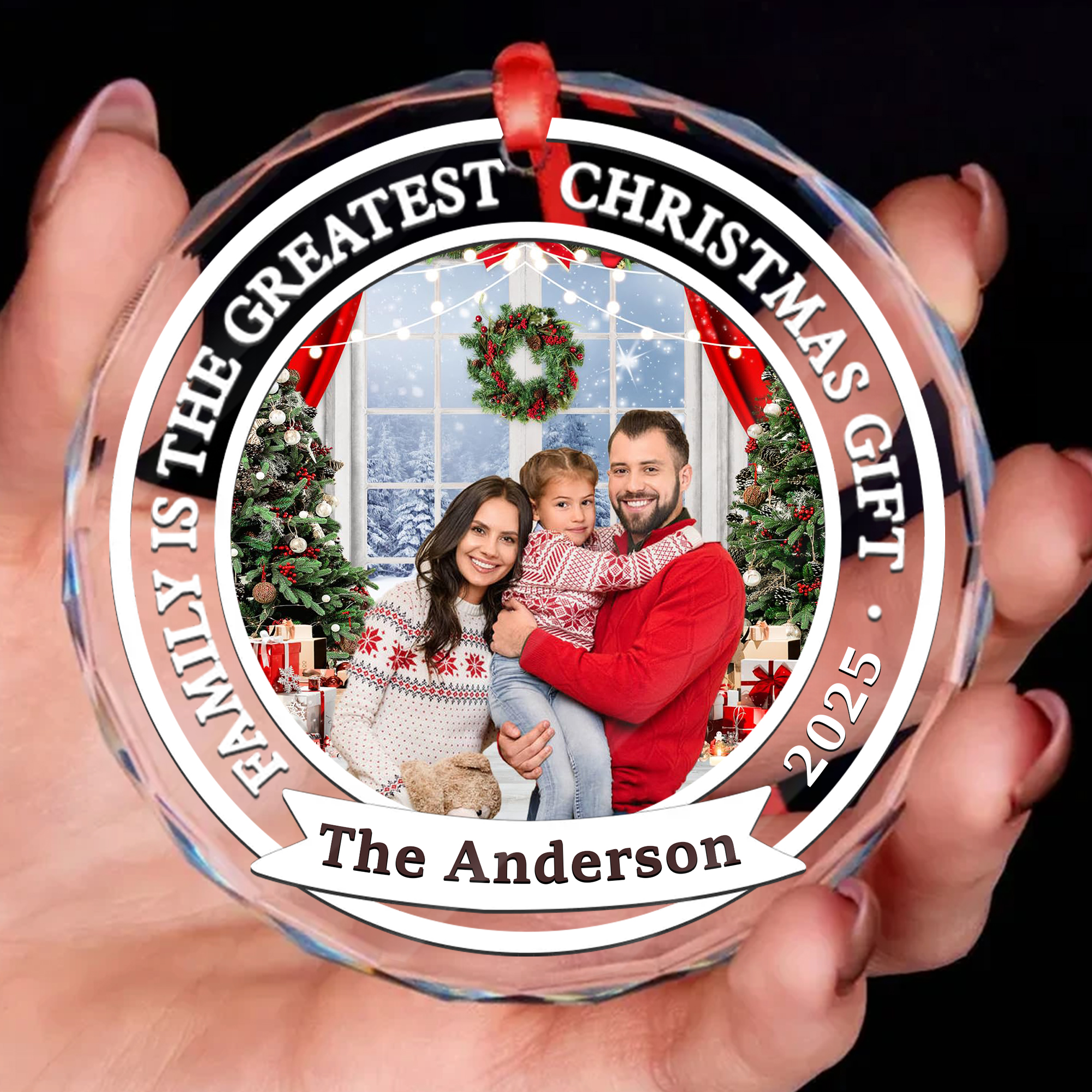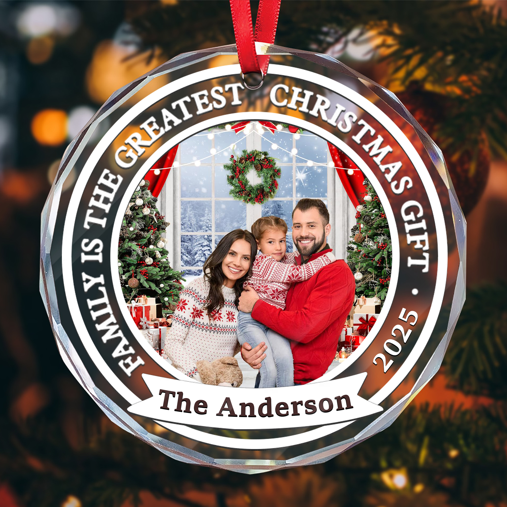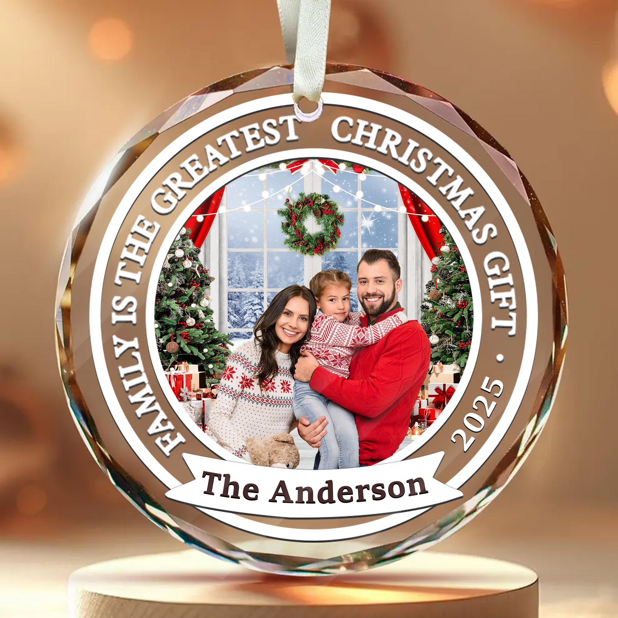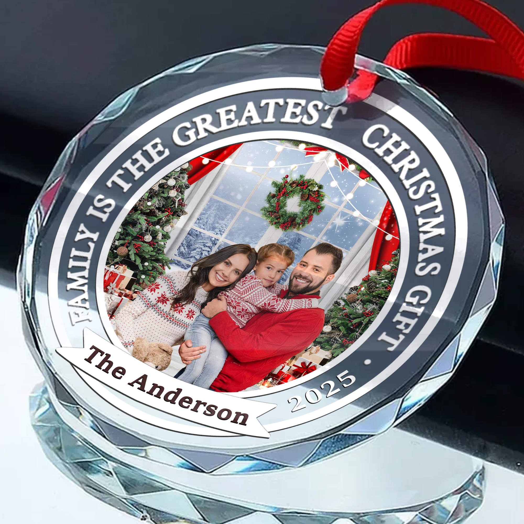Personalized Family Photo Ornament – Faceted Glass with Wreath – Christmas Gift for Parents & Grandparents 2025-GLO-T7L8D