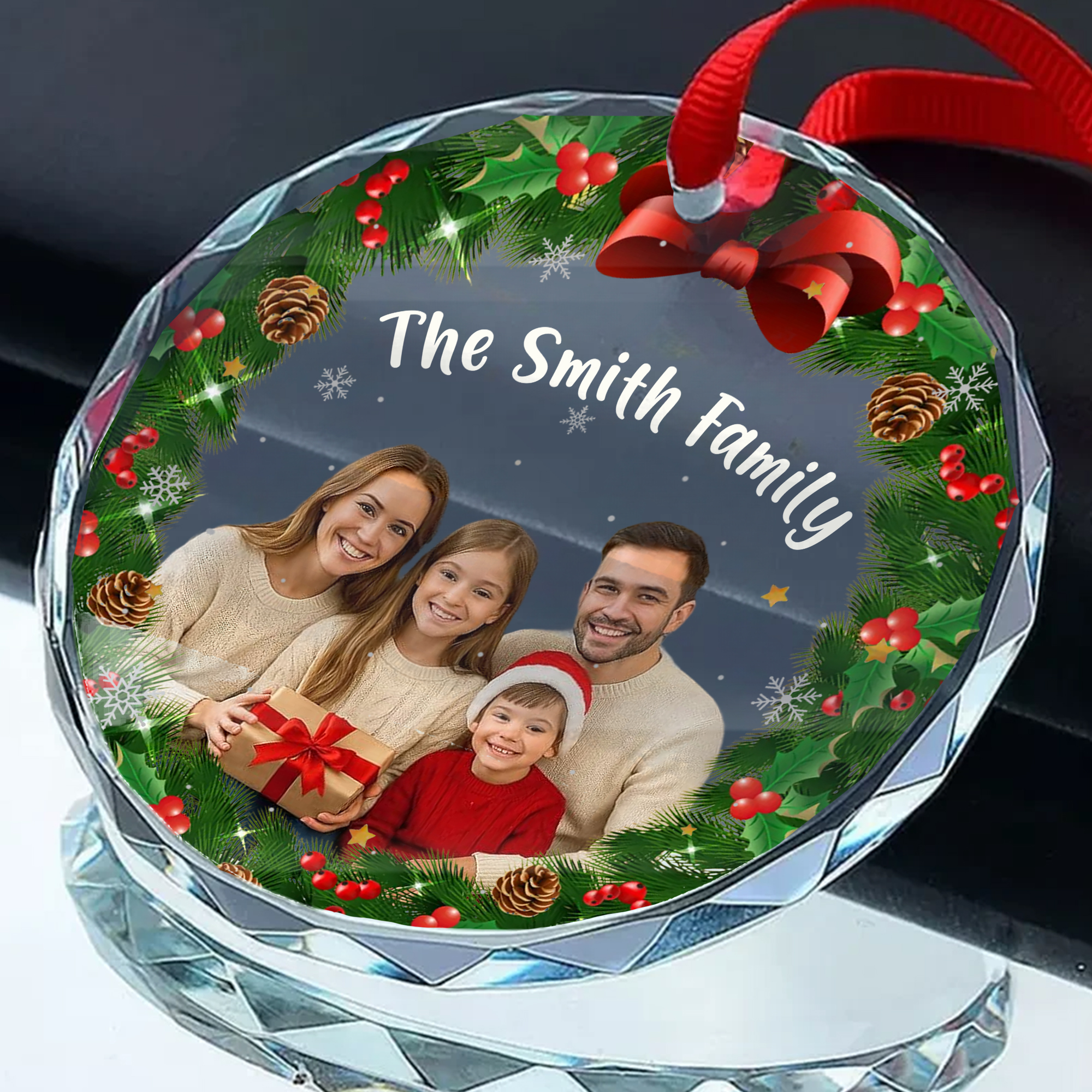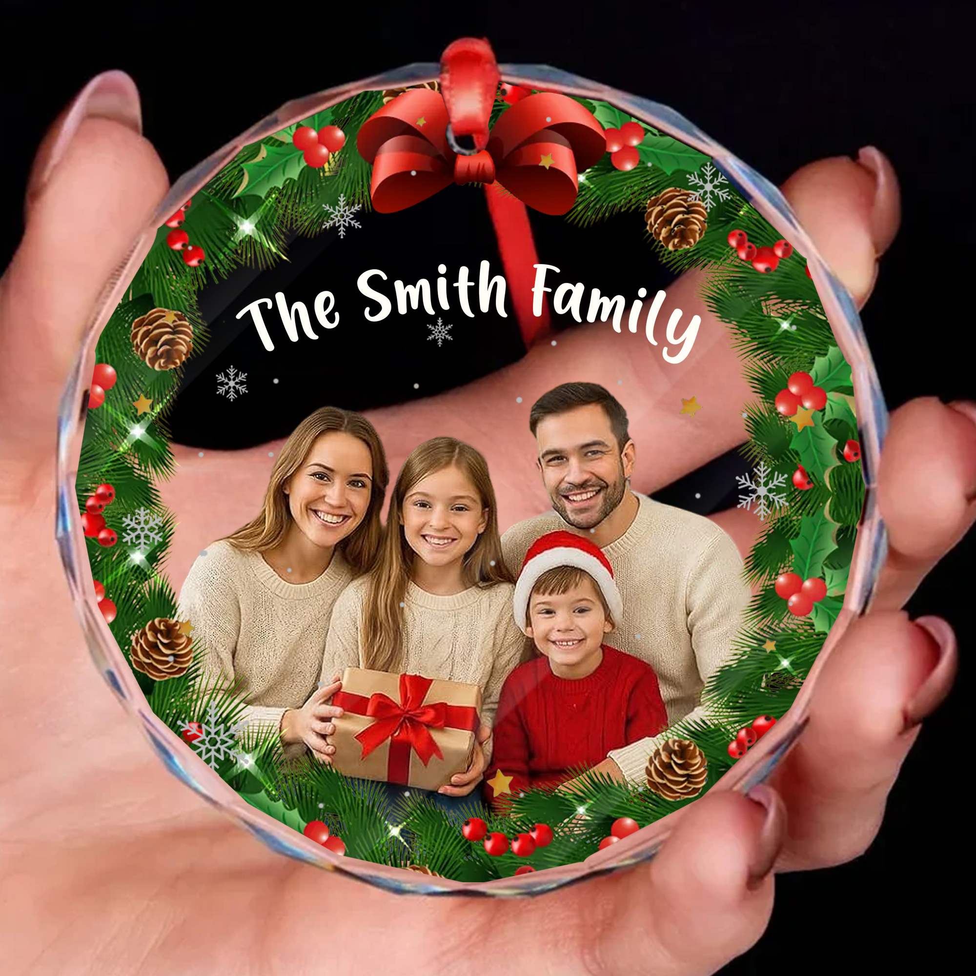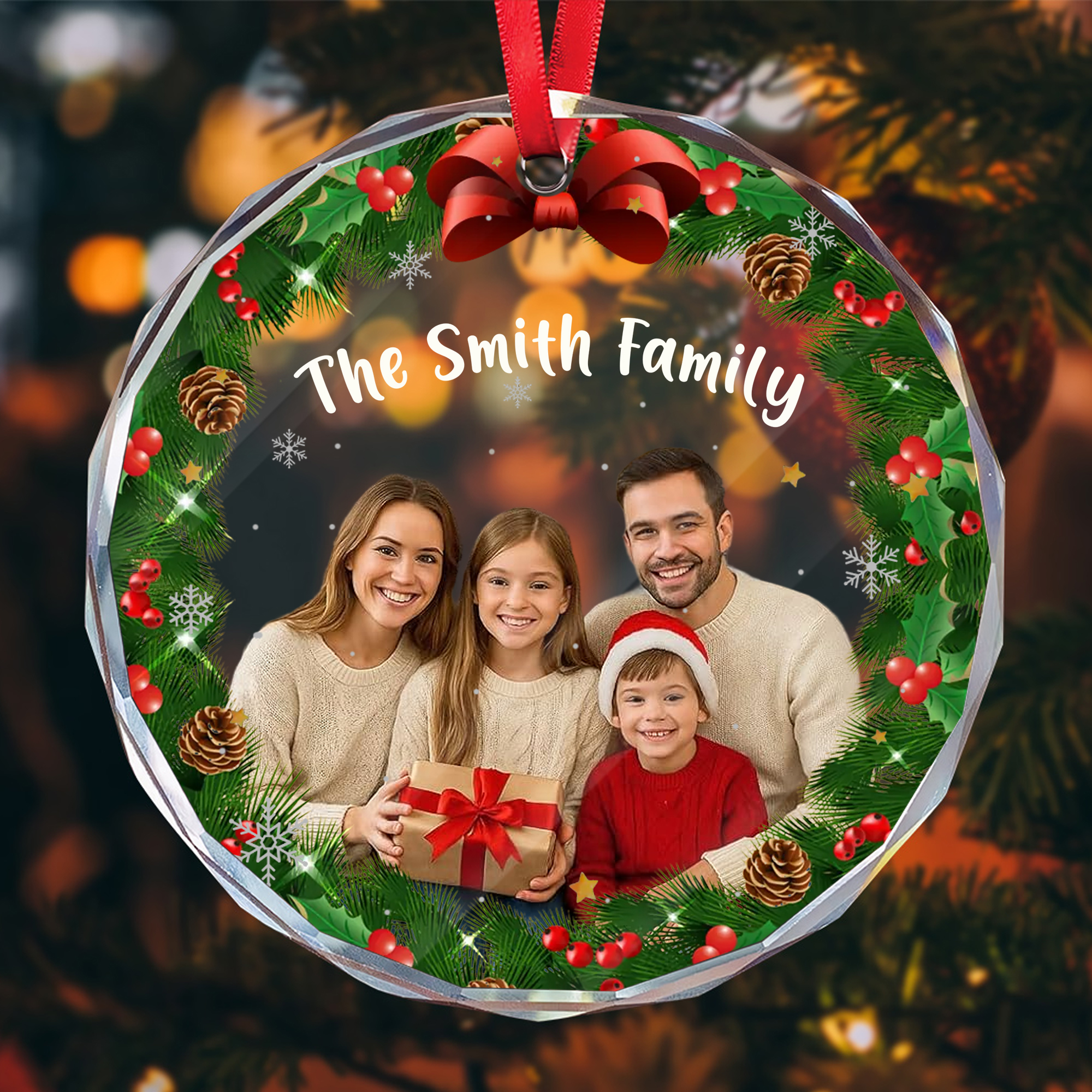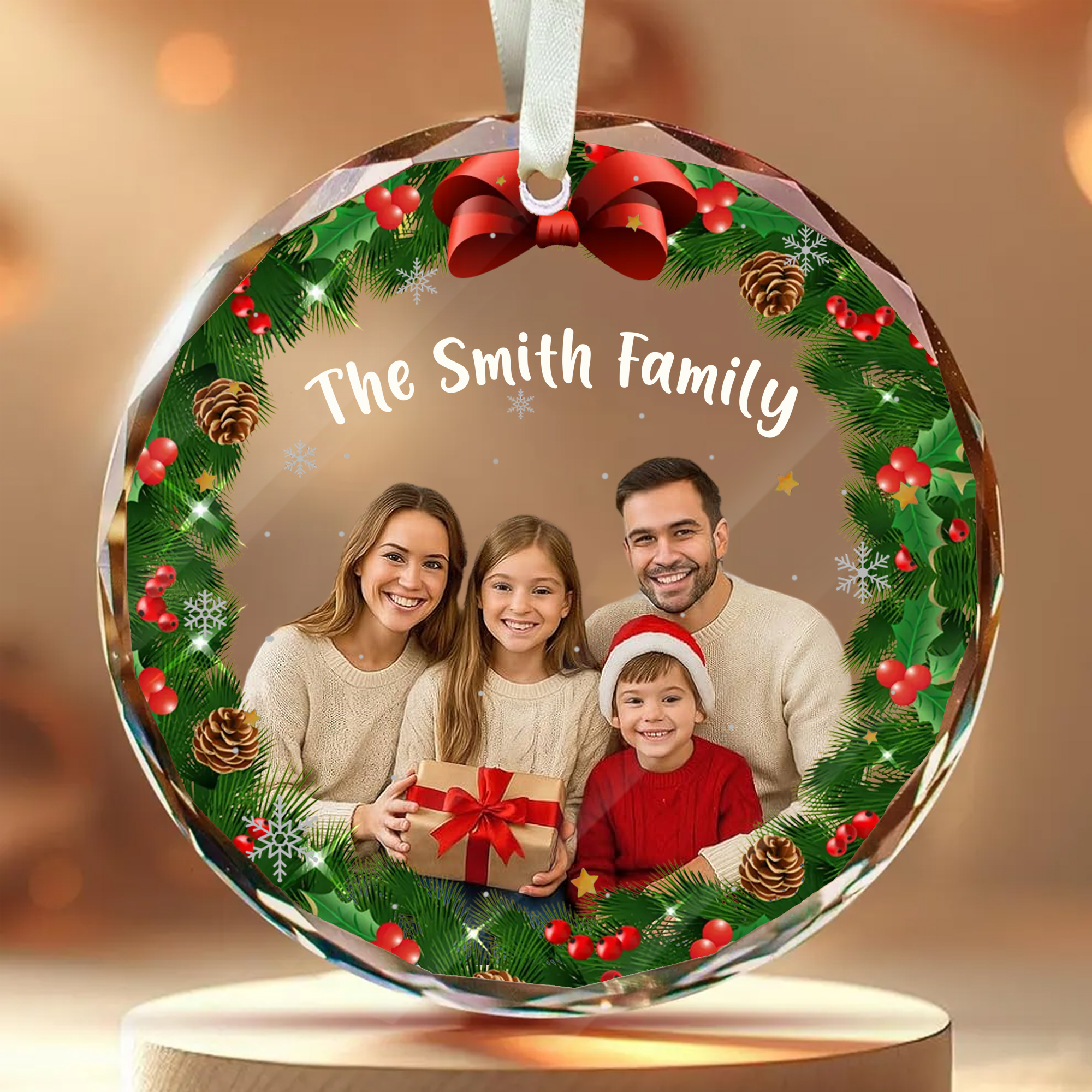 Personalized Family Photo Wreath Christmas Ornament Acrylic Wood Style Holiday Gift for Families-GLO-DBVN3