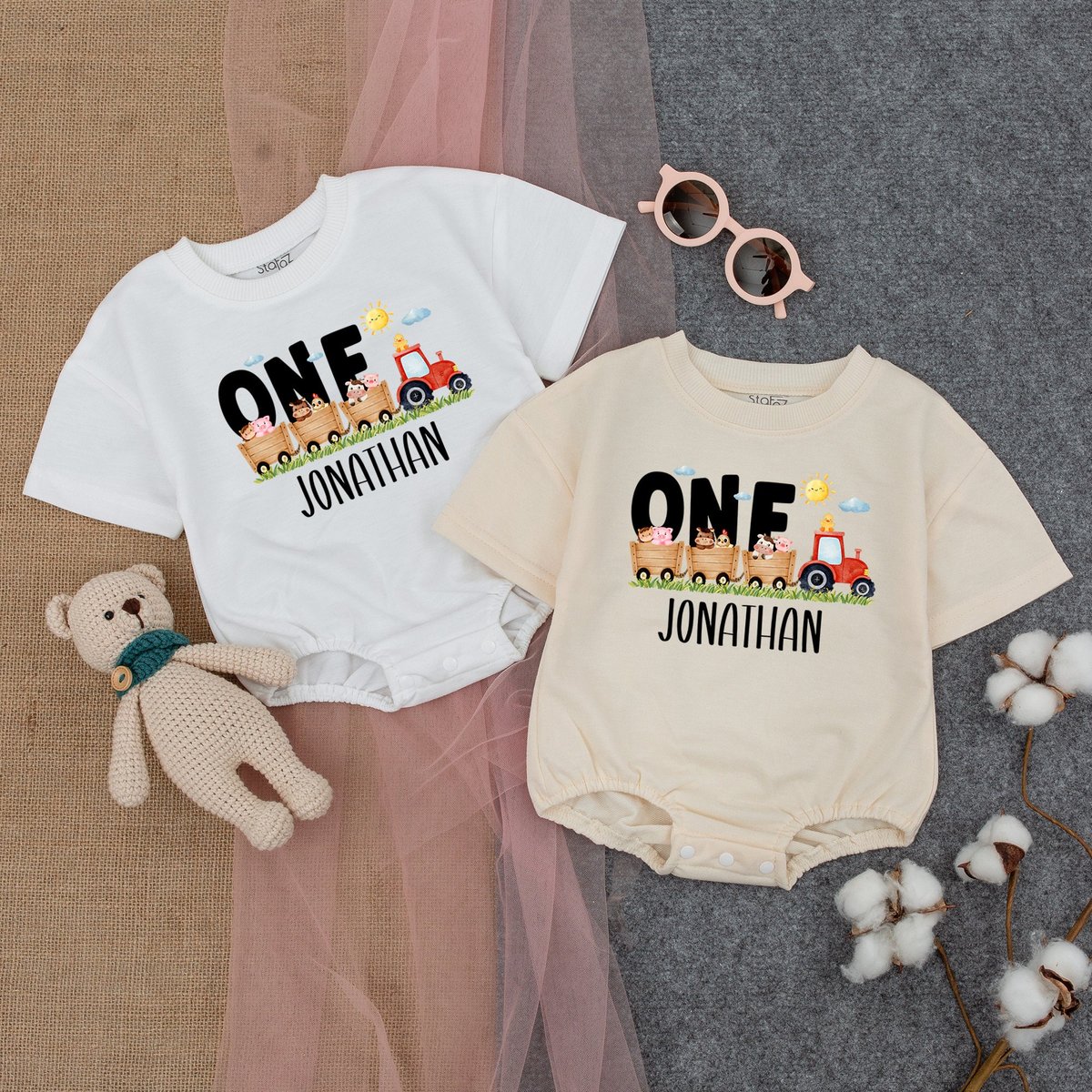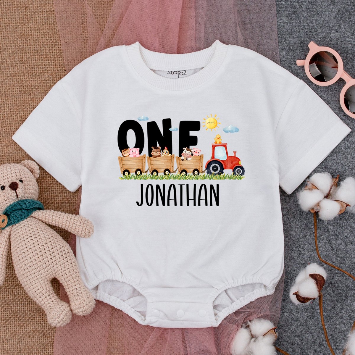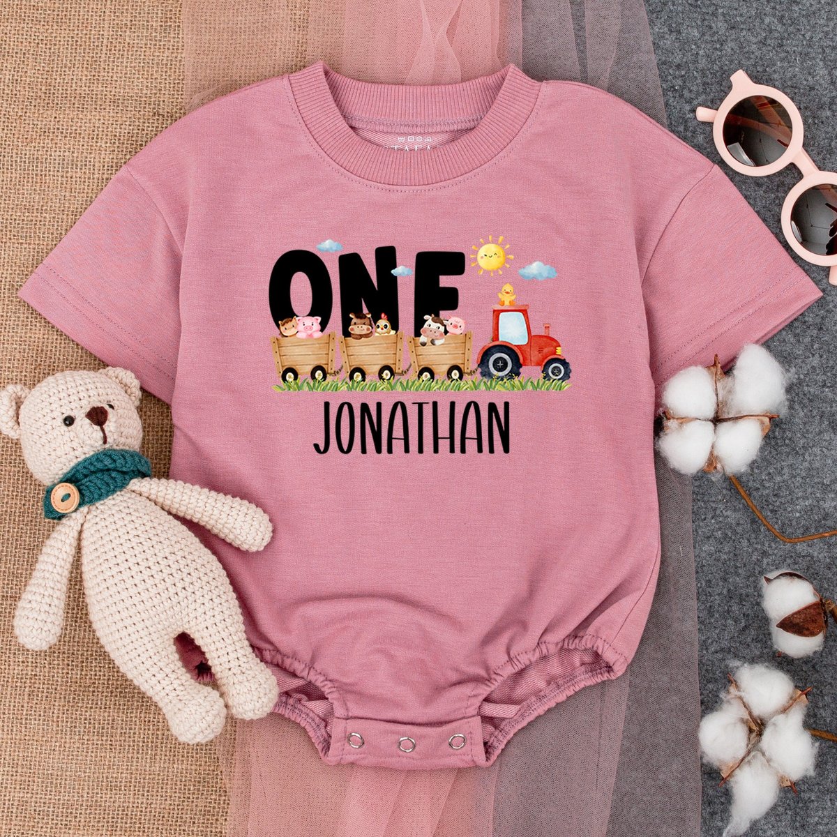 Personalized Farm Birthday Baby Bodysuit Birthday Boy Romper First Birthday Outfit Romper Boy Birthd 177