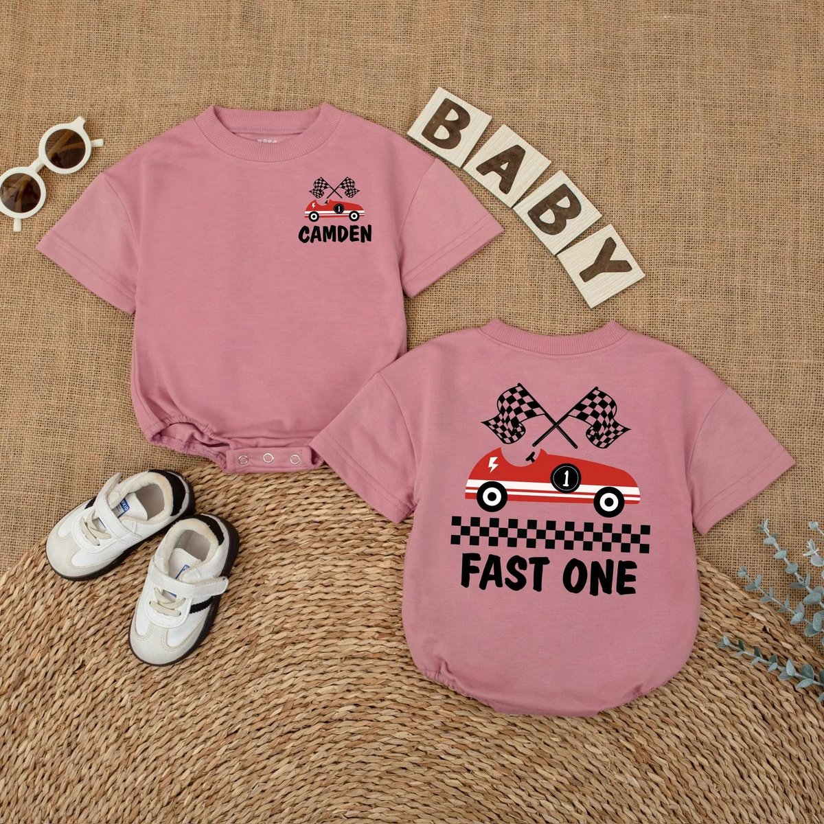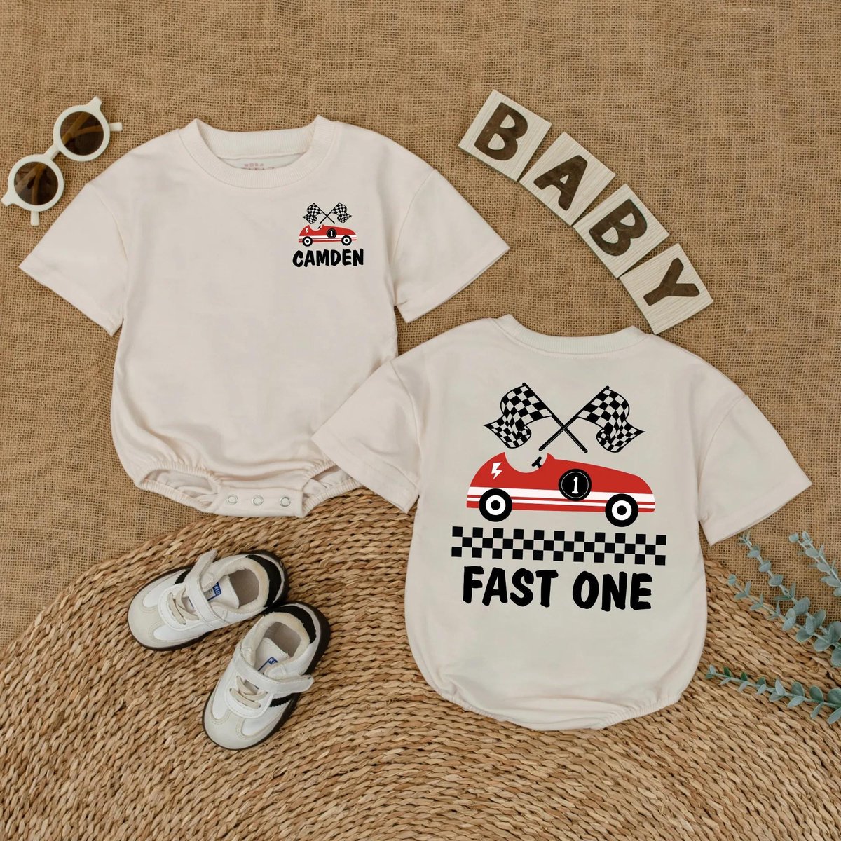 Personalized Fast One Birthday Romper for Baby Boy Race Car 1st Birthday Outfit Custom Name First Bi 433