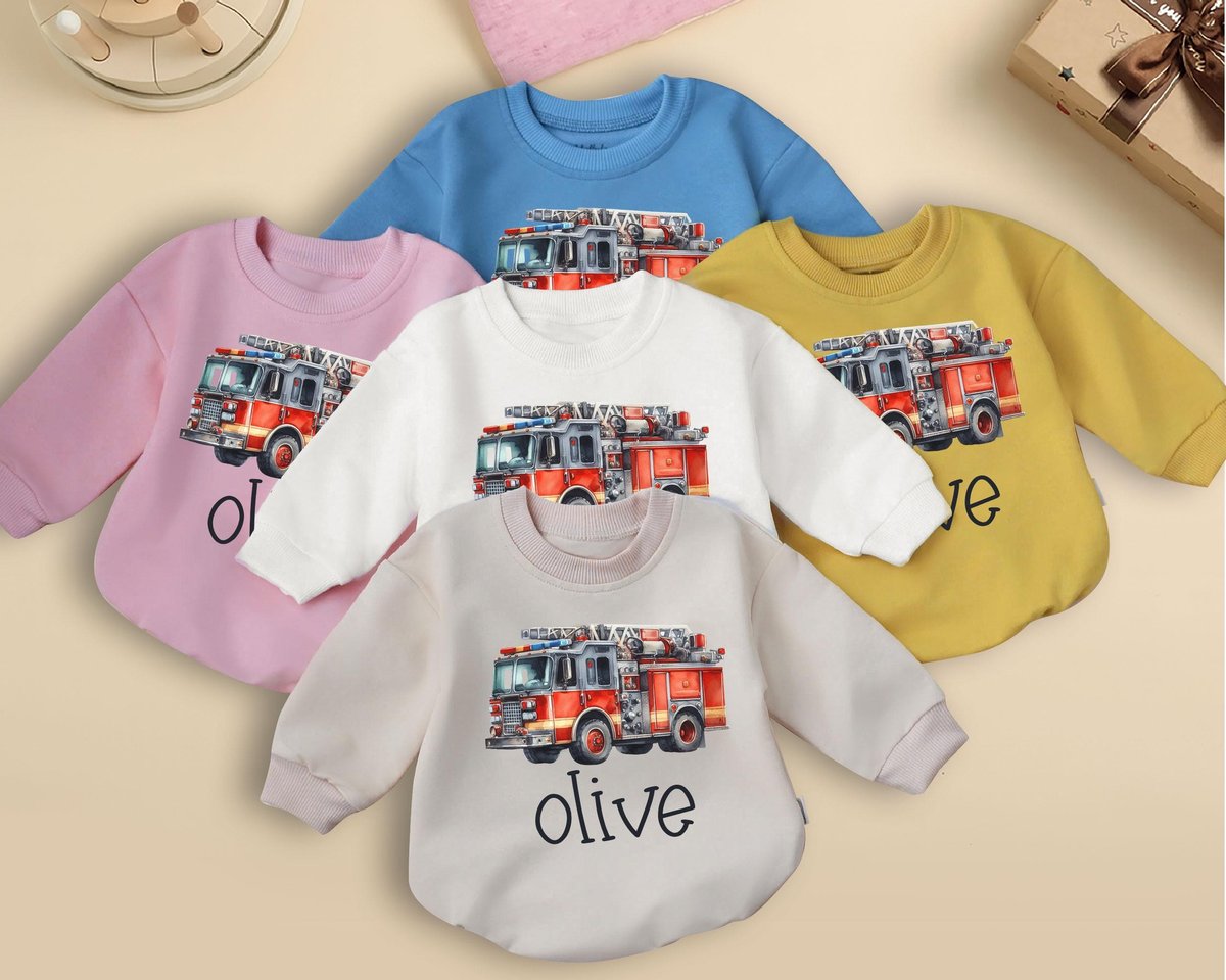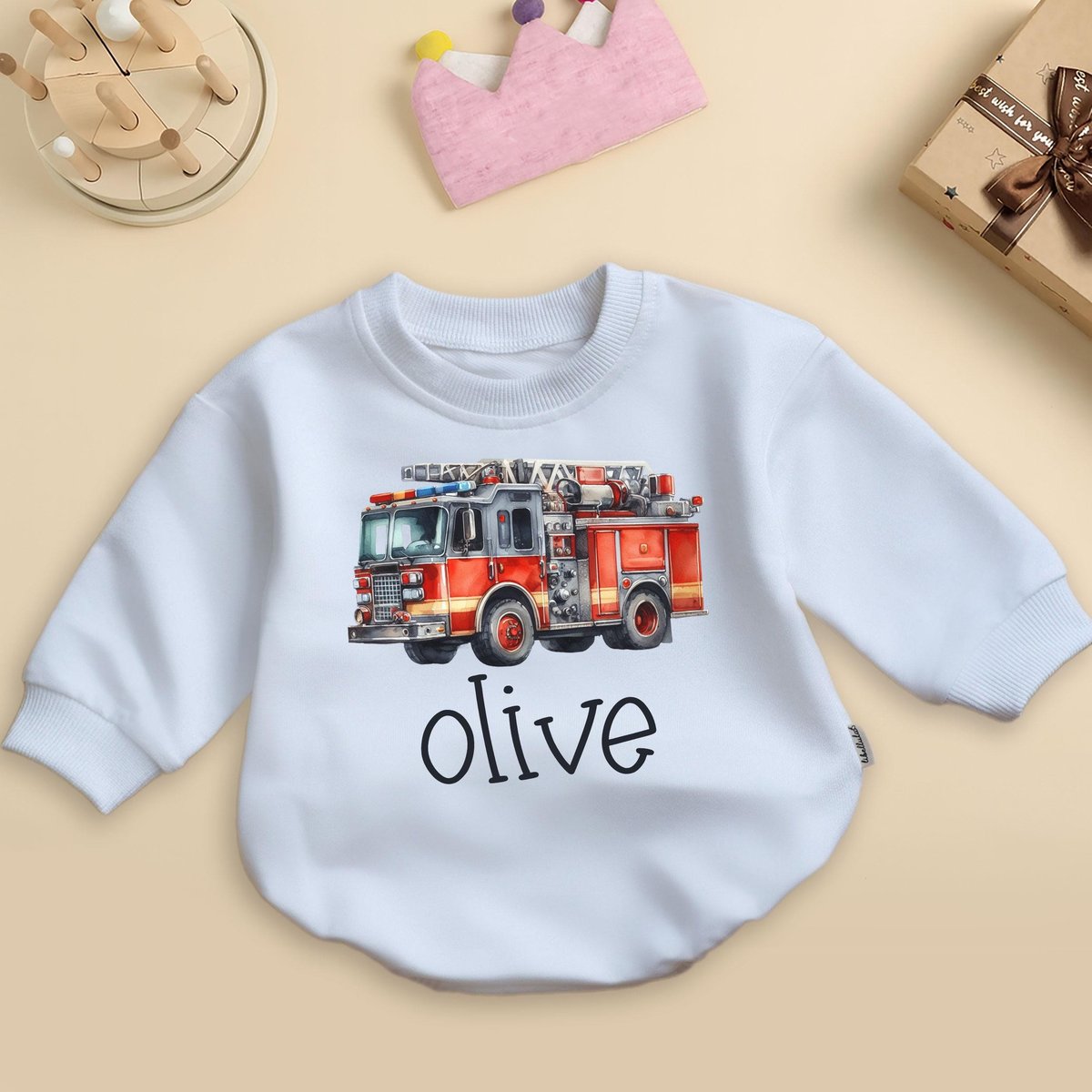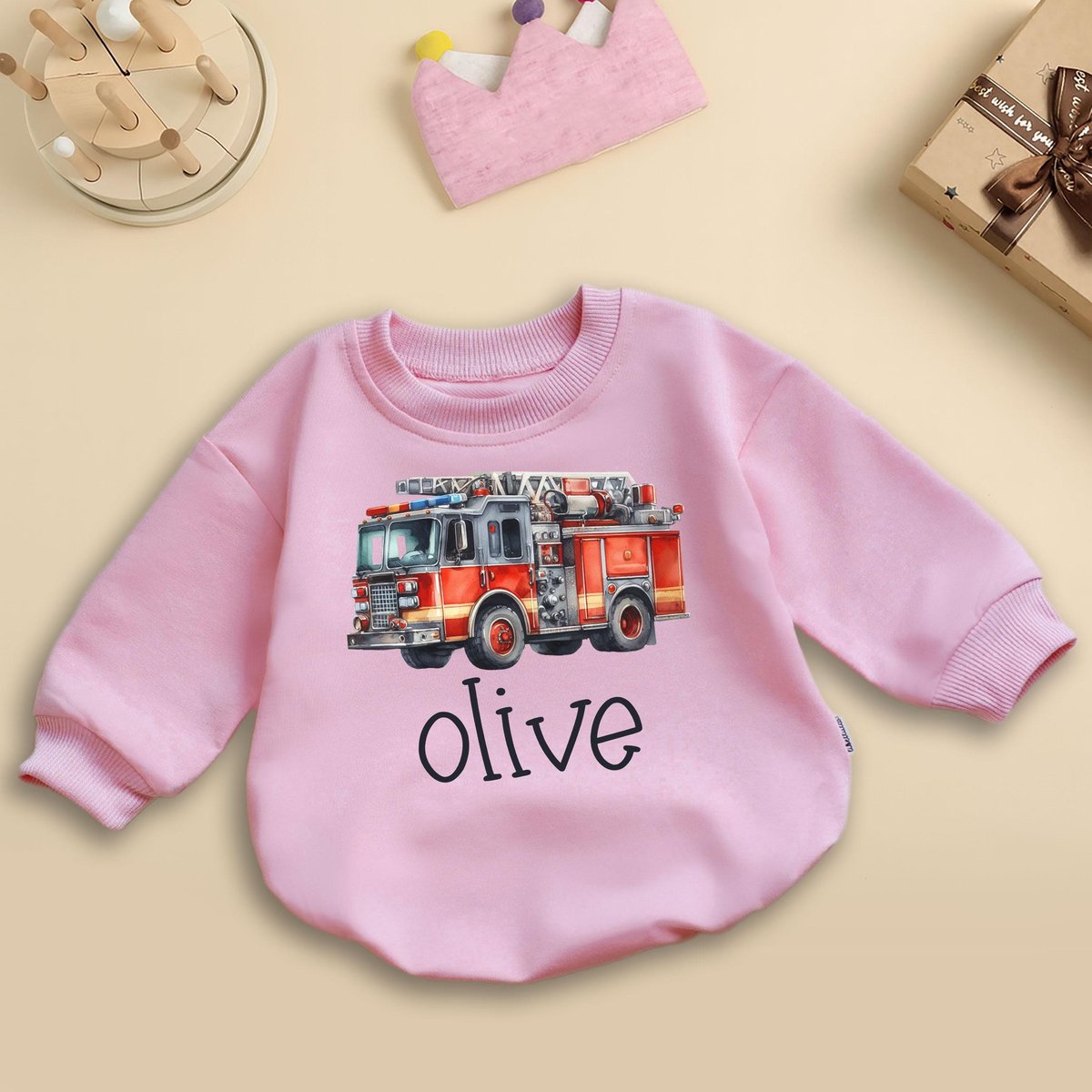 Personalized Fire Truck Toddler Romper Cute Firefighter Outfit Custom Name Romper Gift for Birthday 436