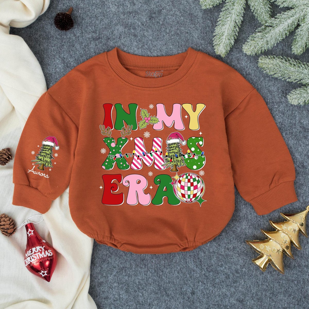Personalized First Christmas Romper Retro Christmas Baby Romper In My Christmas Era Outfit Groovy Ch 436