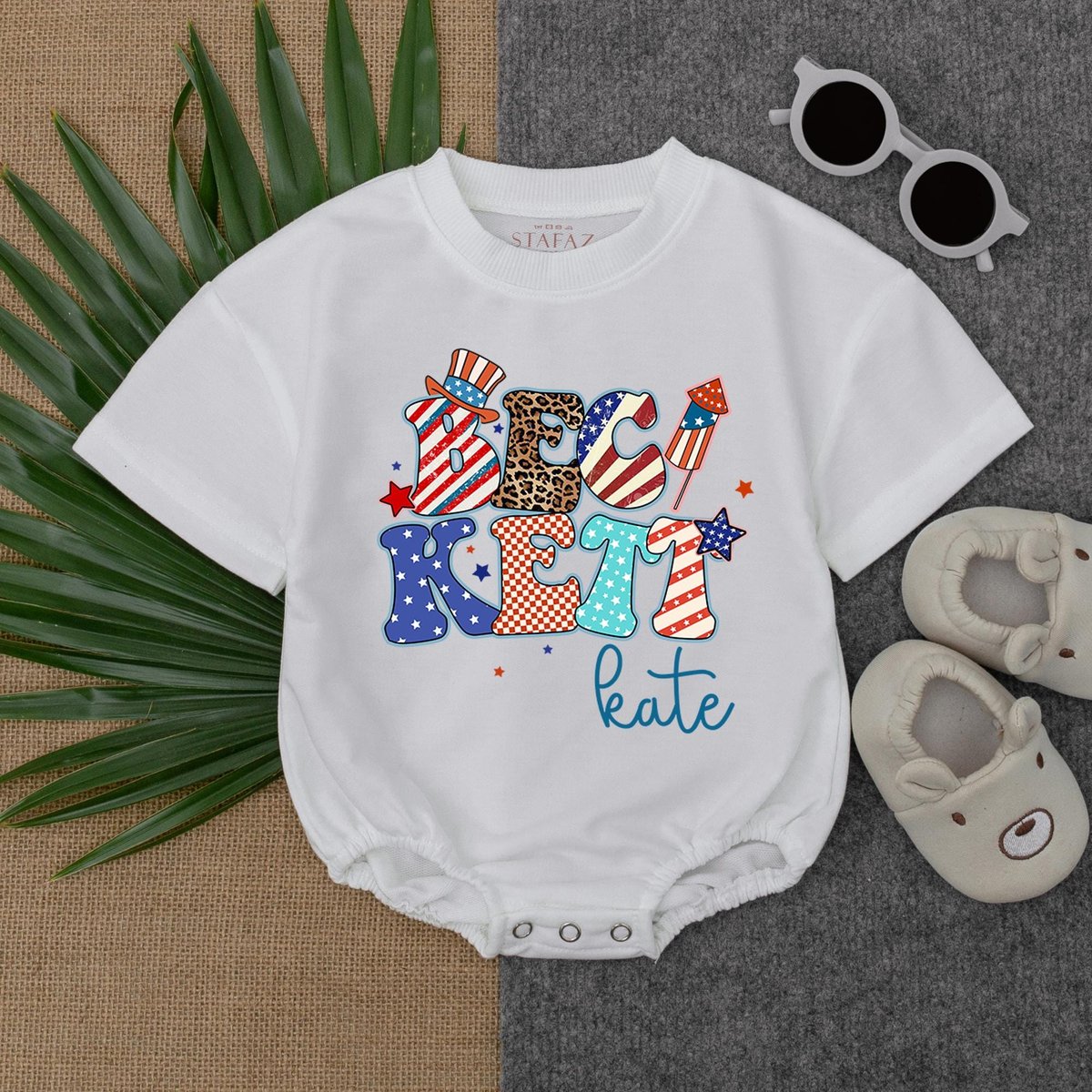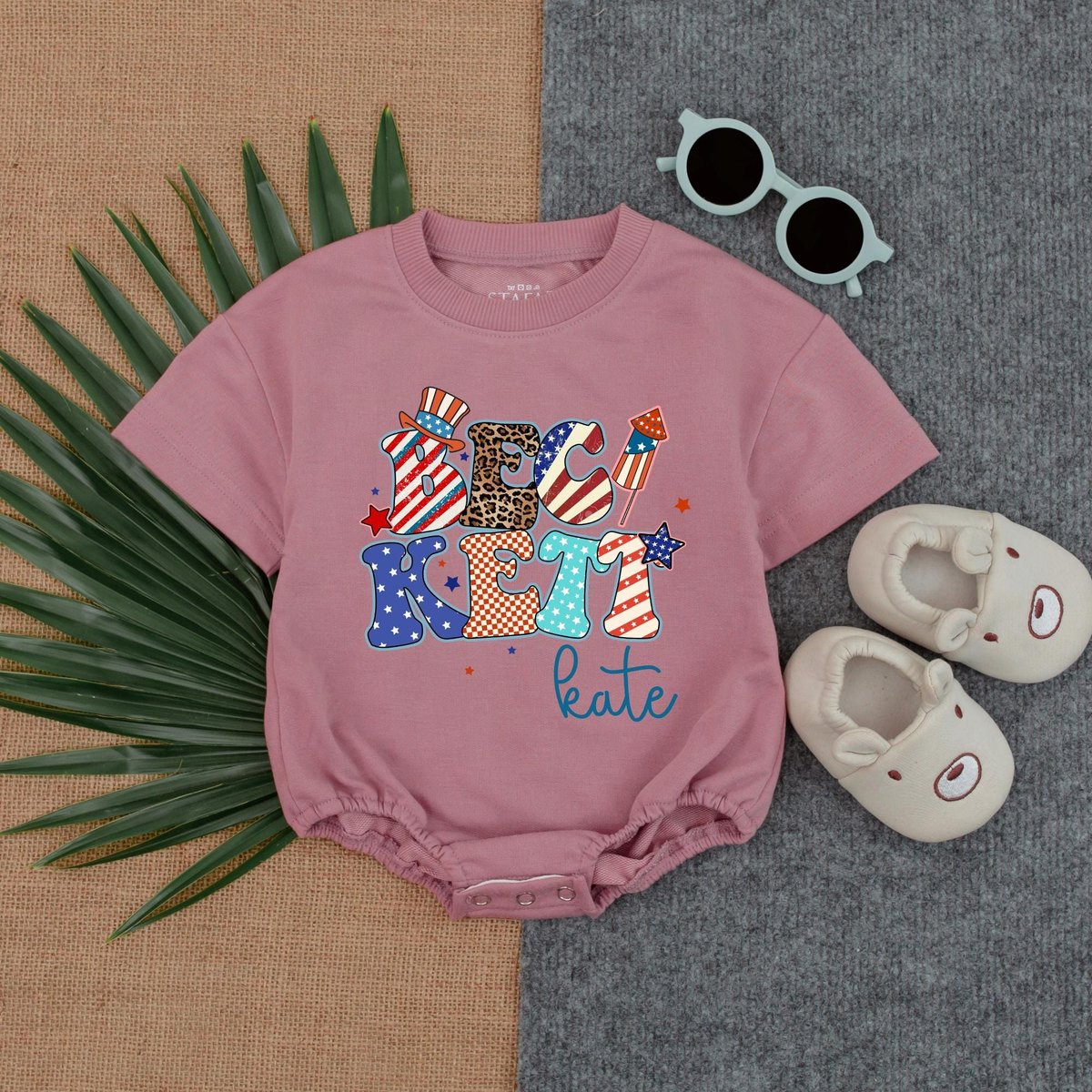 Personalized Fourth of July Baby Romper Short Sleeve Patriotic Baby Outfit 188