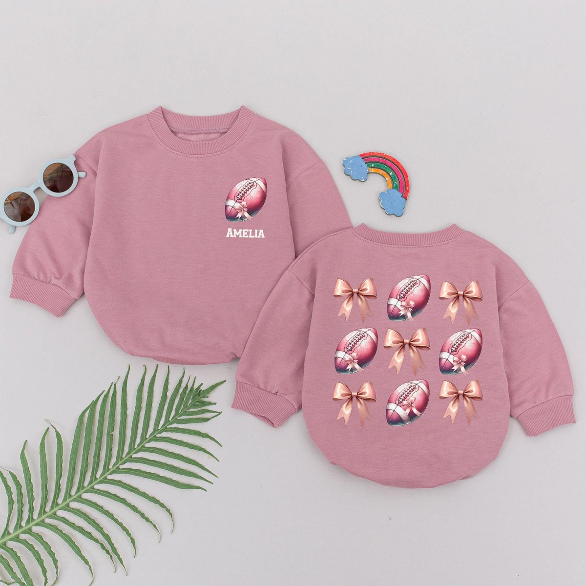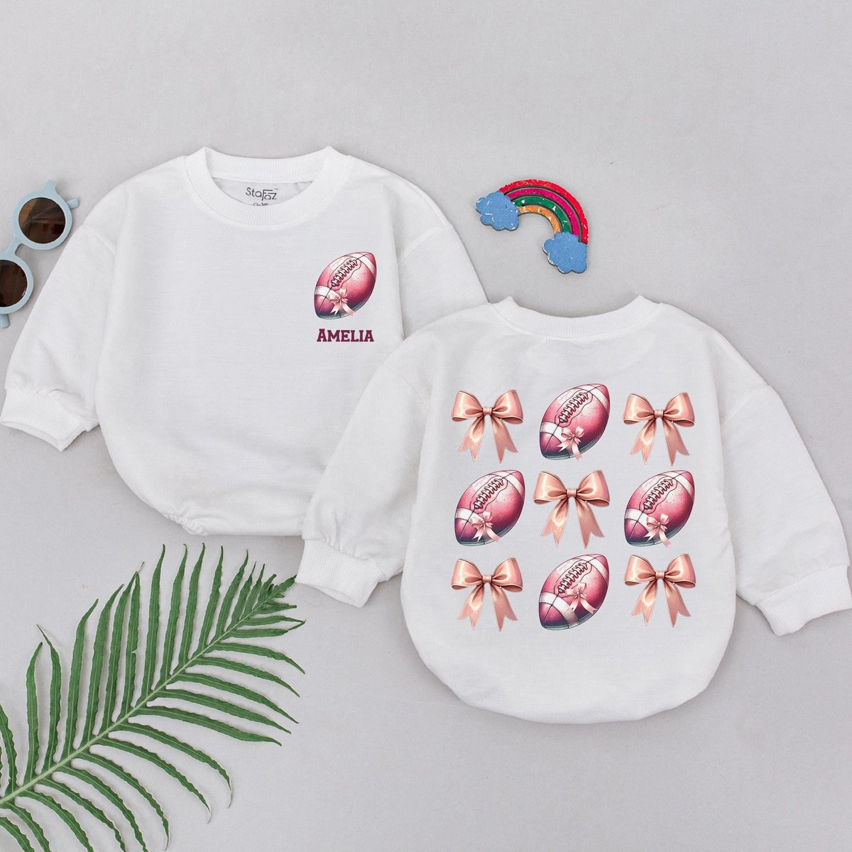 Be the first to review “Personalized Game Day Football Romper Retro Football Bow Outfit Gameday Season Natural Bubble Baby R”
