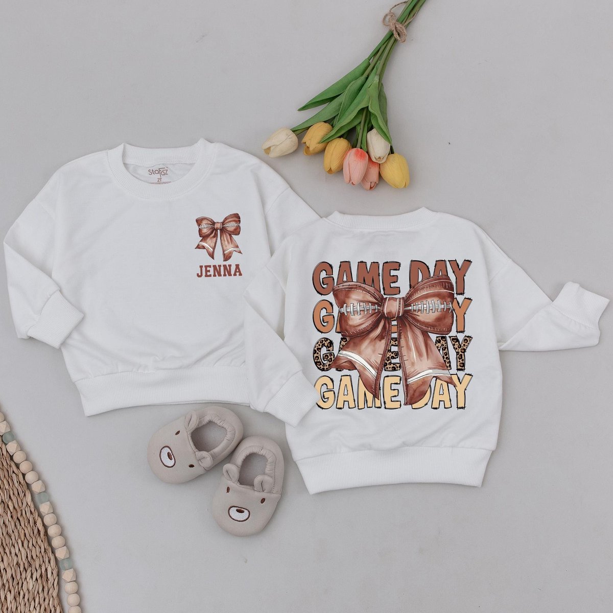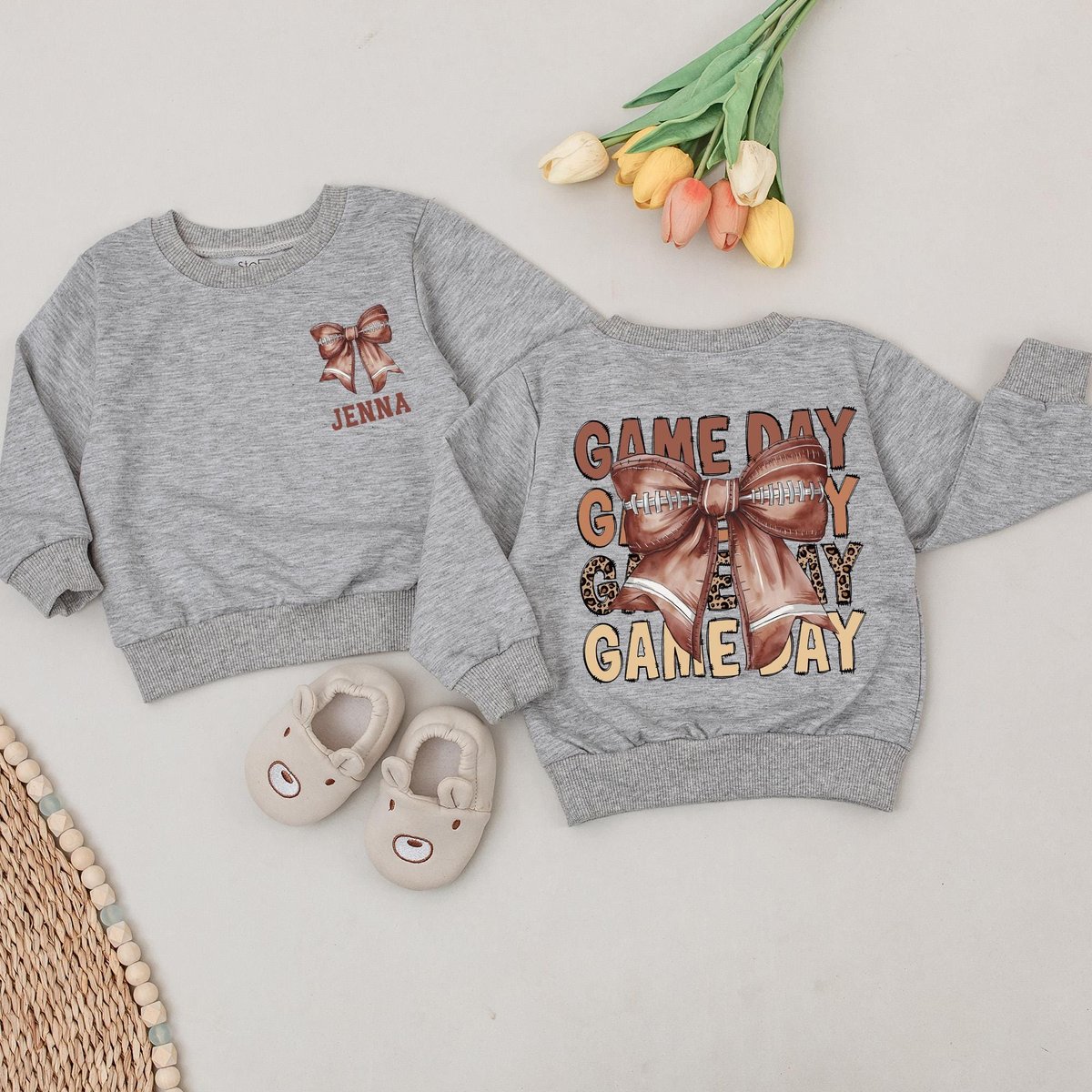 Personalized Game Day Football Sweatshirt Retro Football Bow Sweatshirt Gameday Season Bubble Baby R