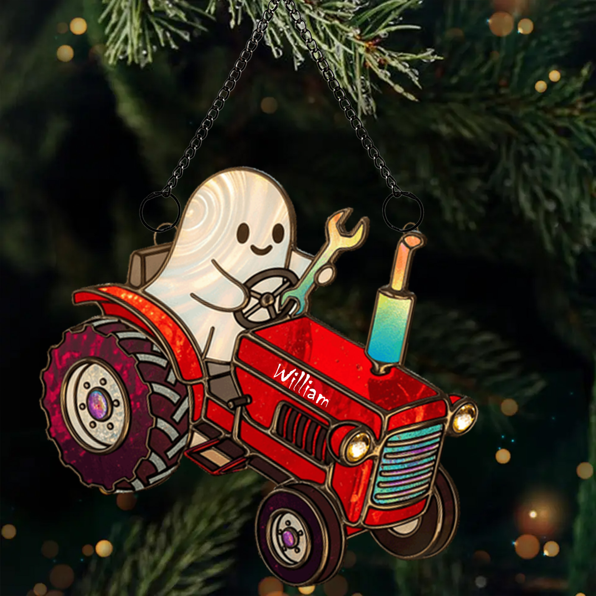 Personalized Ghost on Tractor Ornament – Stained Glass Acrylic – Halloween Gift for Tractor Lovers & Farmers 2025-ASO-UEZFY