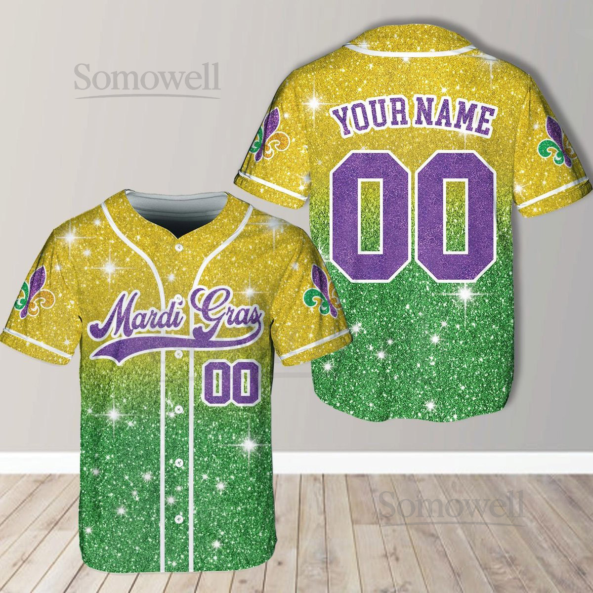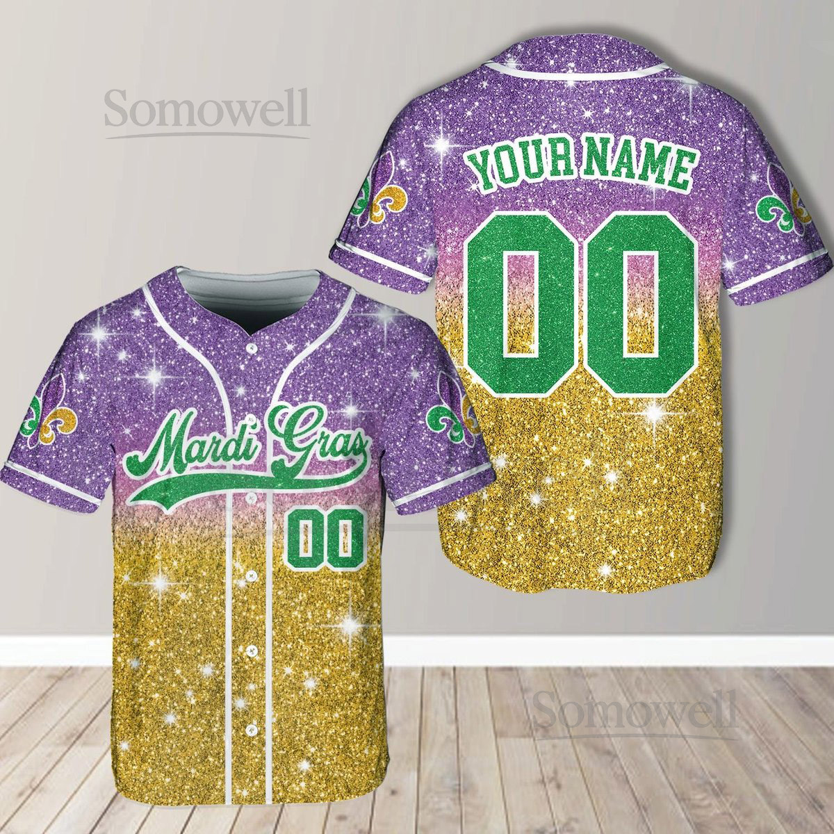 Personalized Glitter Mardi Gras Baseball Jersey Custom Name And Number Baseball Jersey Mardi Gras Carnival Jersey Printed Glitter_127