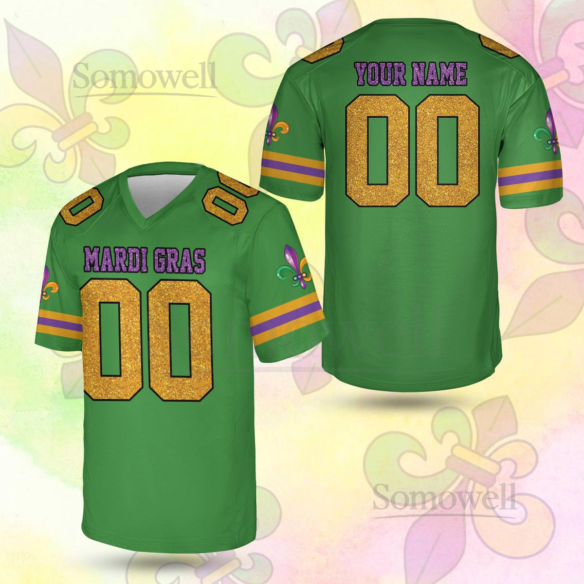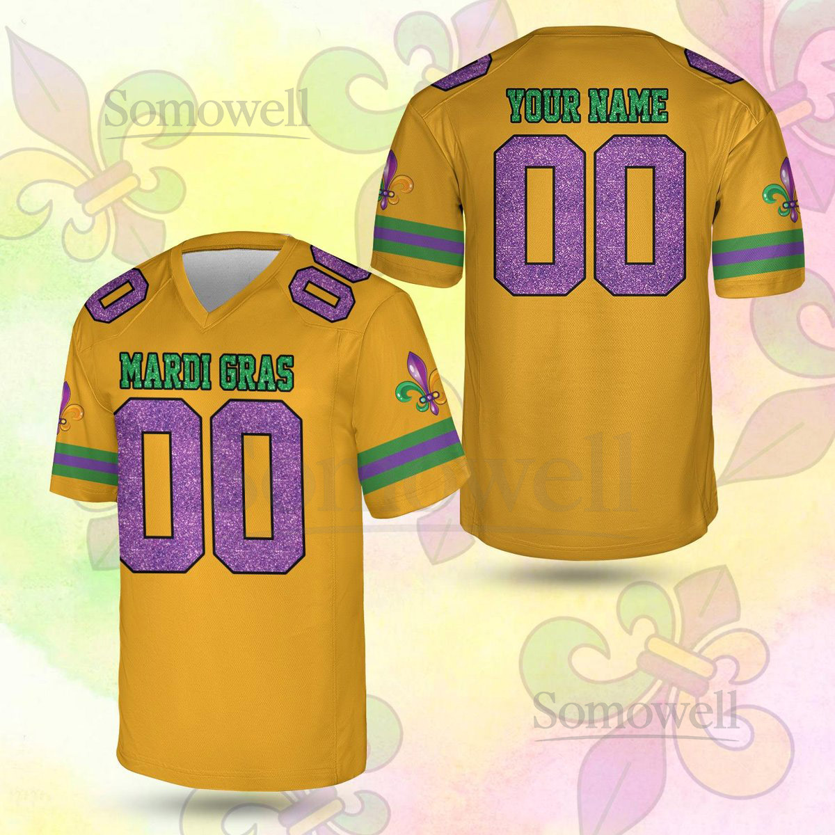 Personalized Glitter Mardi Gras Football Jersey Custom Name And Number Short Sleeve Jersey Mardi Gras Carnival Jersey Printed Glitter_130