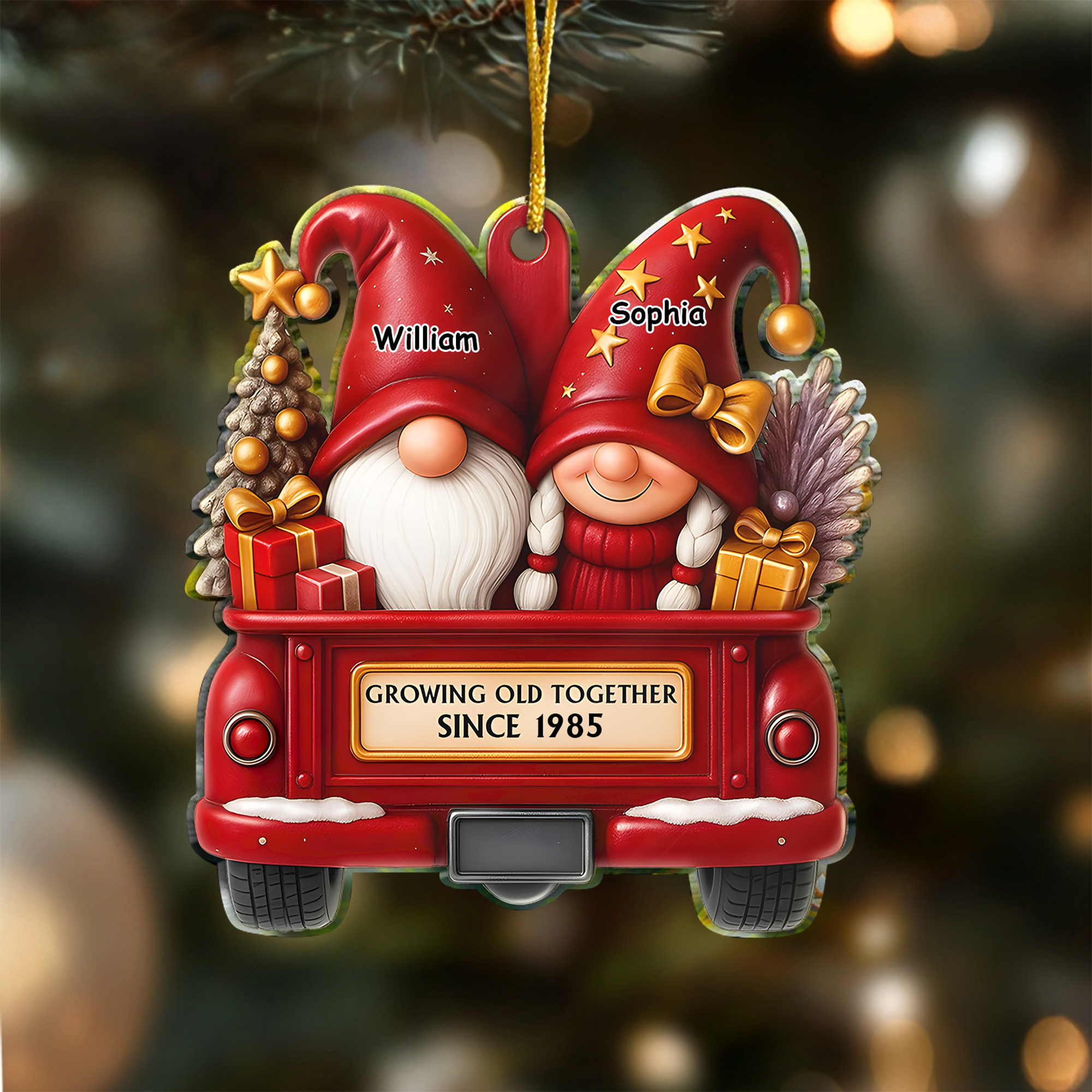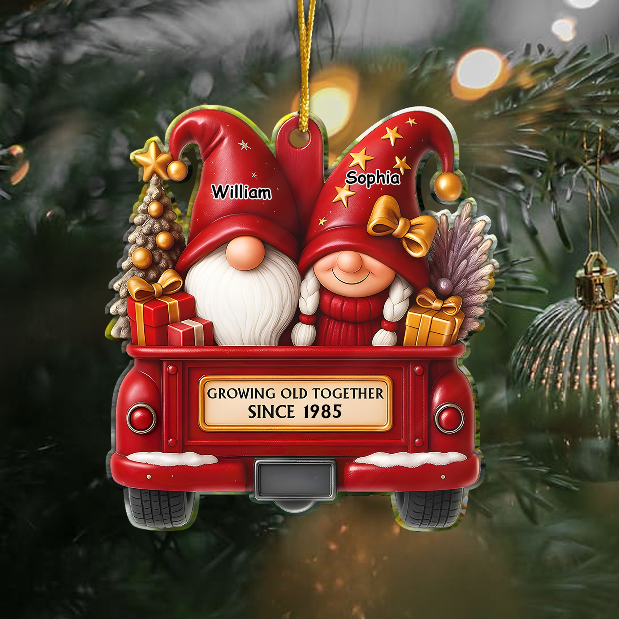 Personalized Gnome Couple Christmas Ornament Red Truck Acrylic Anniversary Gift for Husband Wife-ASO-1AEH6