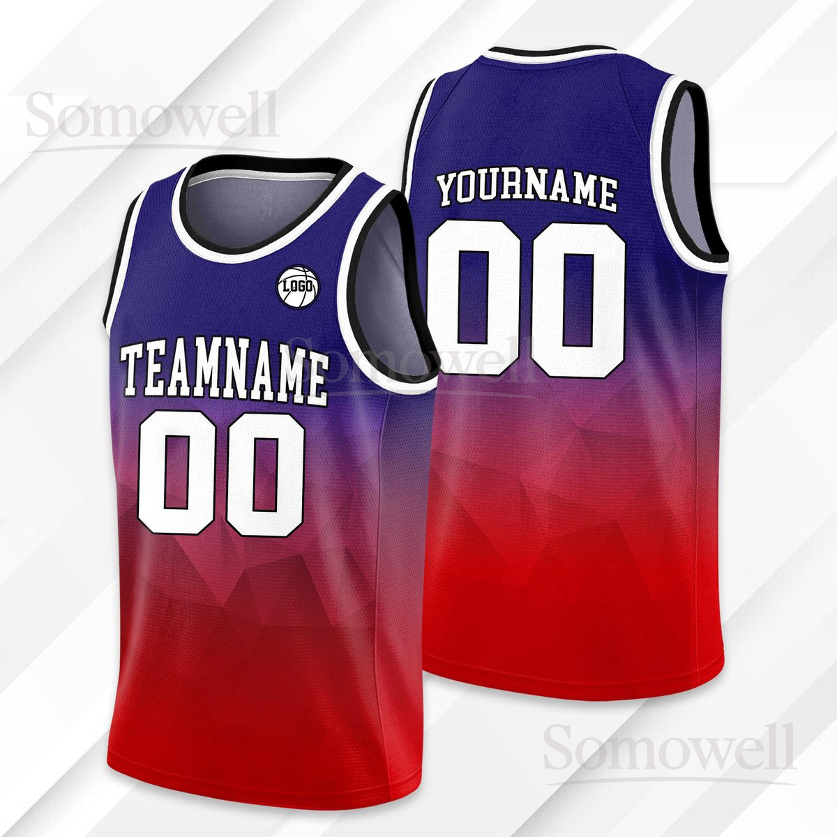 Personalized Gradient Basketball Jersey Team Name Number Logo For Adult Kid Youth in Multiple Colors