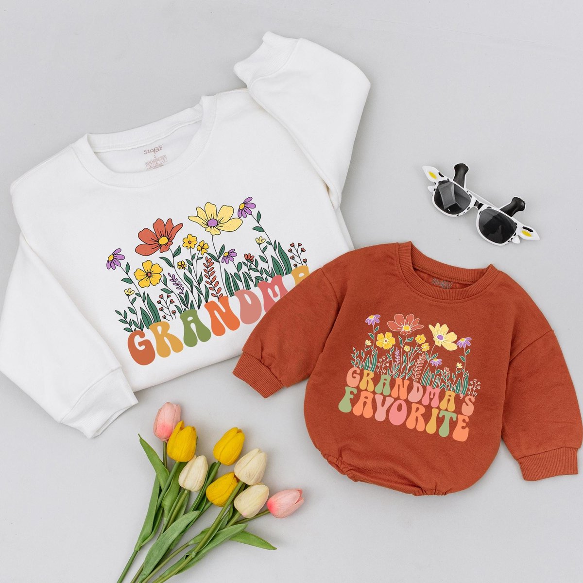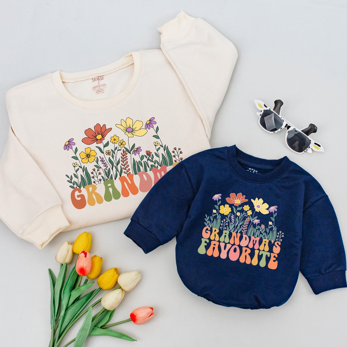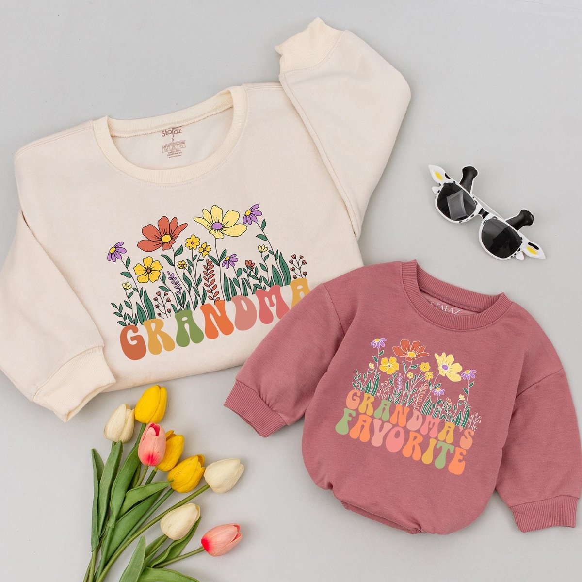 Personalized Grandma And Grandma’s Favorite Flower SweatshirtGift For Grammy Grandchild Newborn B 189