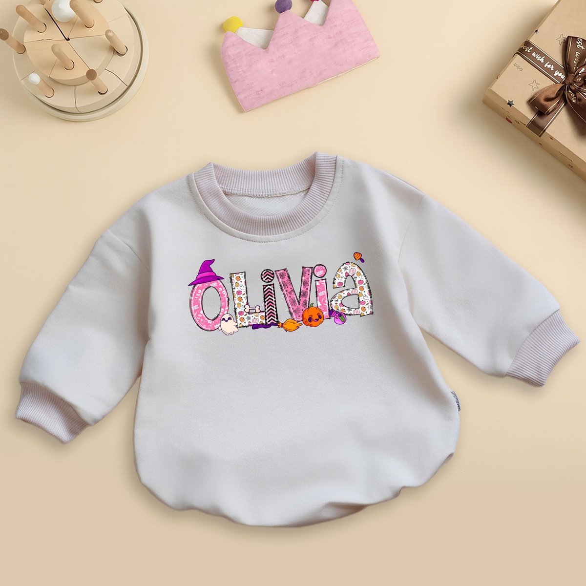 Personalized Halloween Baby Romper Sweatshirt Trendy Baby Bodysuit Custom Name Baby Outfit Spooky Fa 436