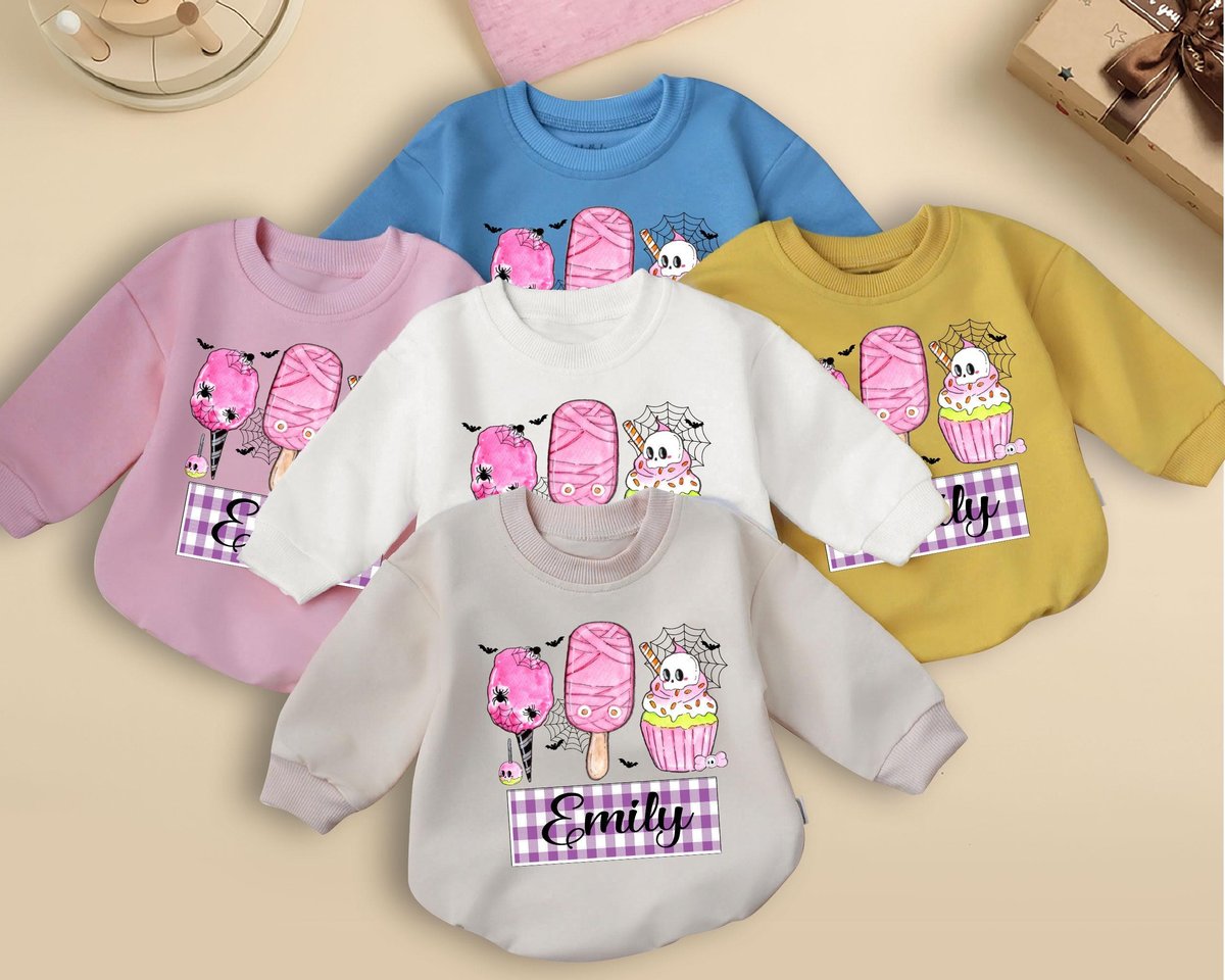 Personalized Halloween Ice Cream Baby Romper Ice Cream Baby Bodysuit Custom Ice Cream Baby Boy Outfi 436