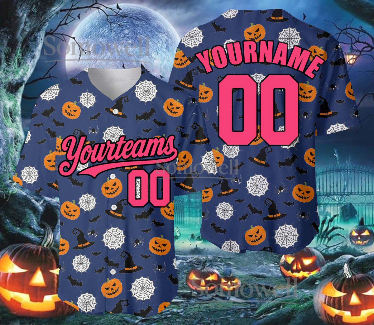 Personalized Halloween Pumpkin Baseball Jersey for Spooky Fun and Custom Name