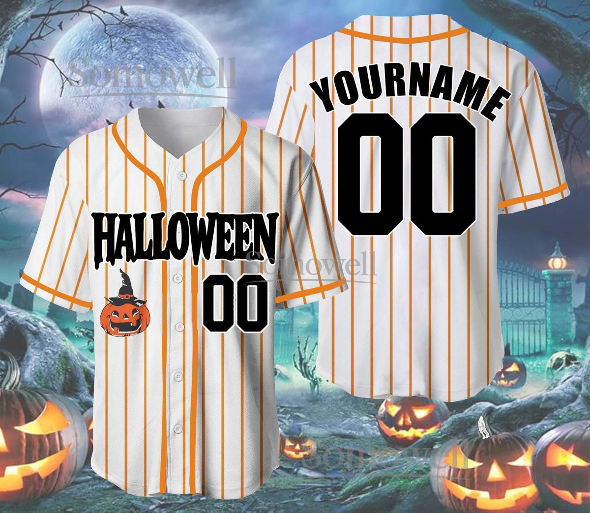 Personalized Halloween Pumpkin Horror Baseball Jersey Shirt Custom Scary Gift