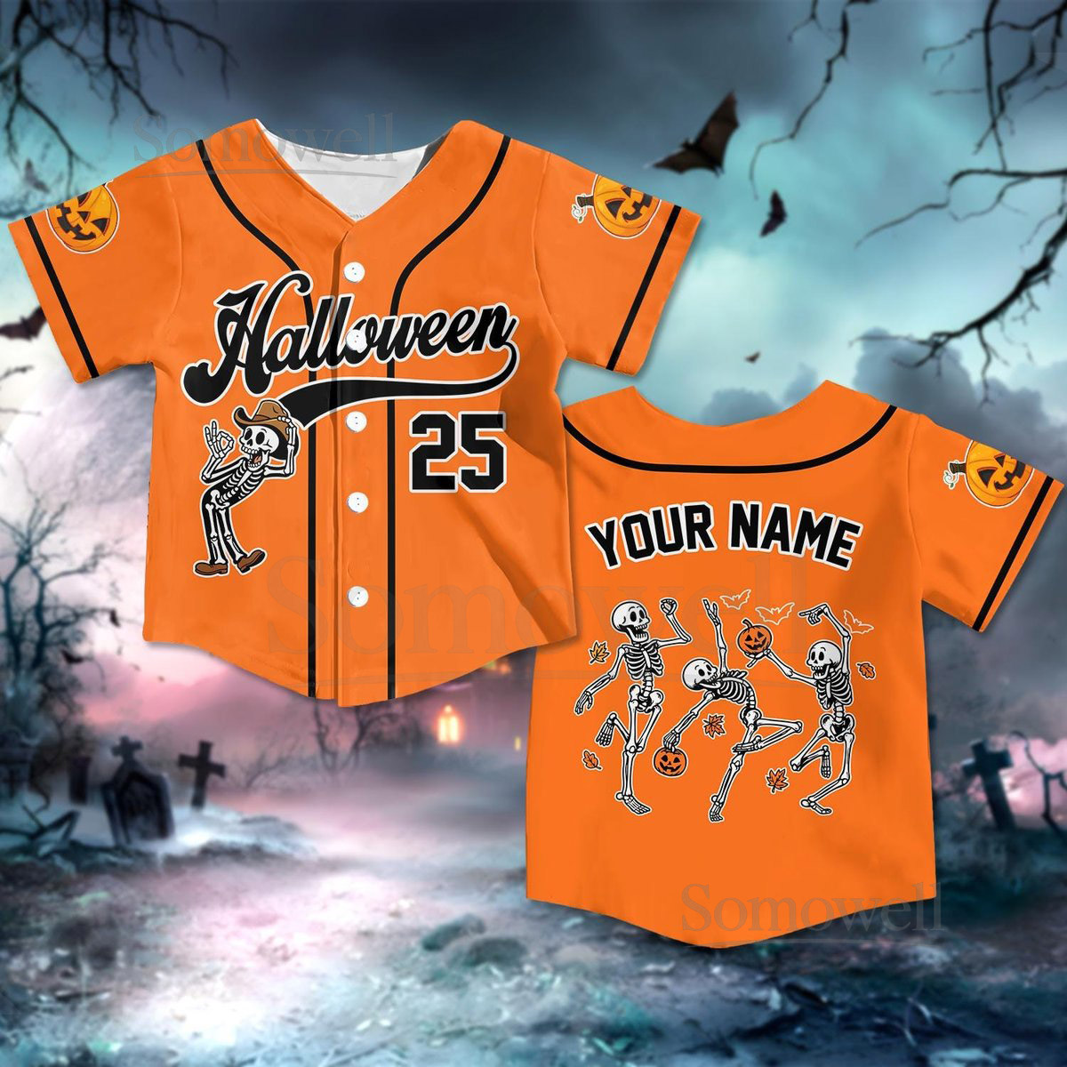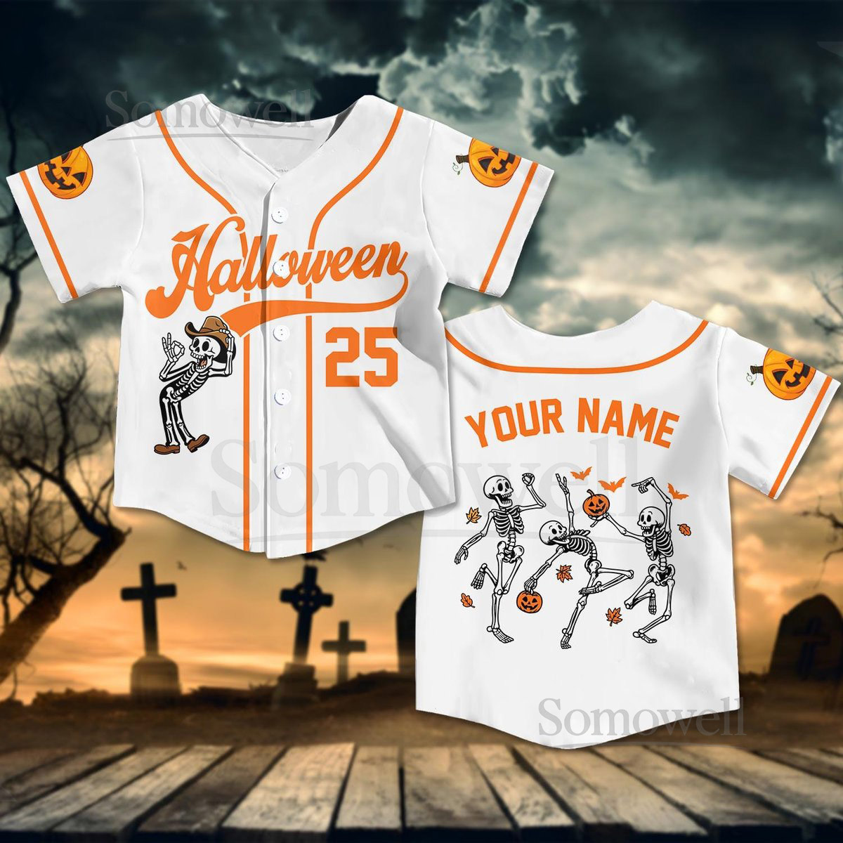 Personalized Halloween Skeleton Baseball Jersey Shirt Custom Name Number Jersey Funny Spooky Team Uniform for Kids Youth Adults_175