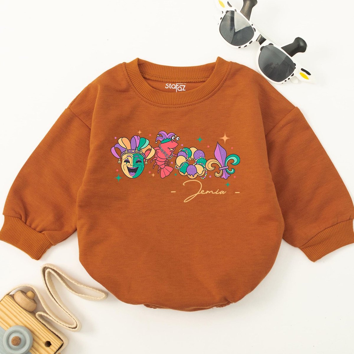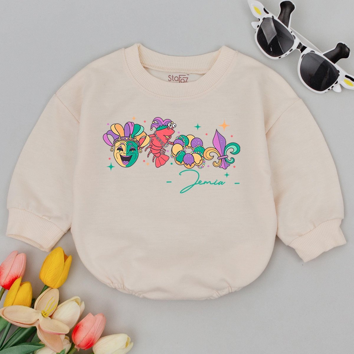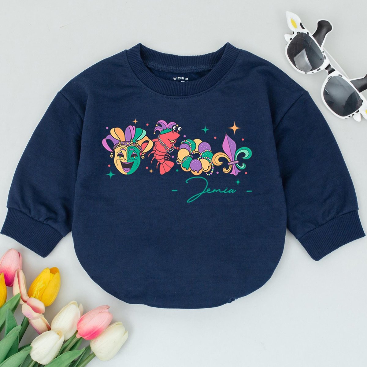 Personalized Happy Mardi Gras Baby Romper Baby Announcement Clothes Baby Carnival Outfit 1st Mardi G 185