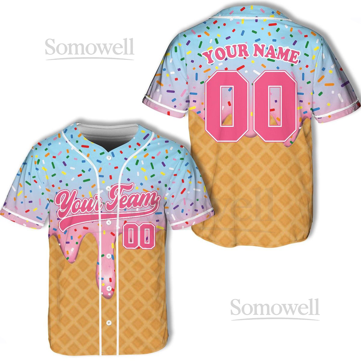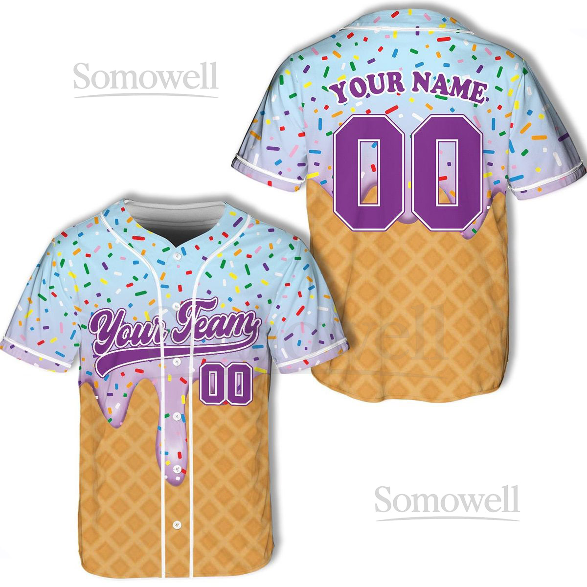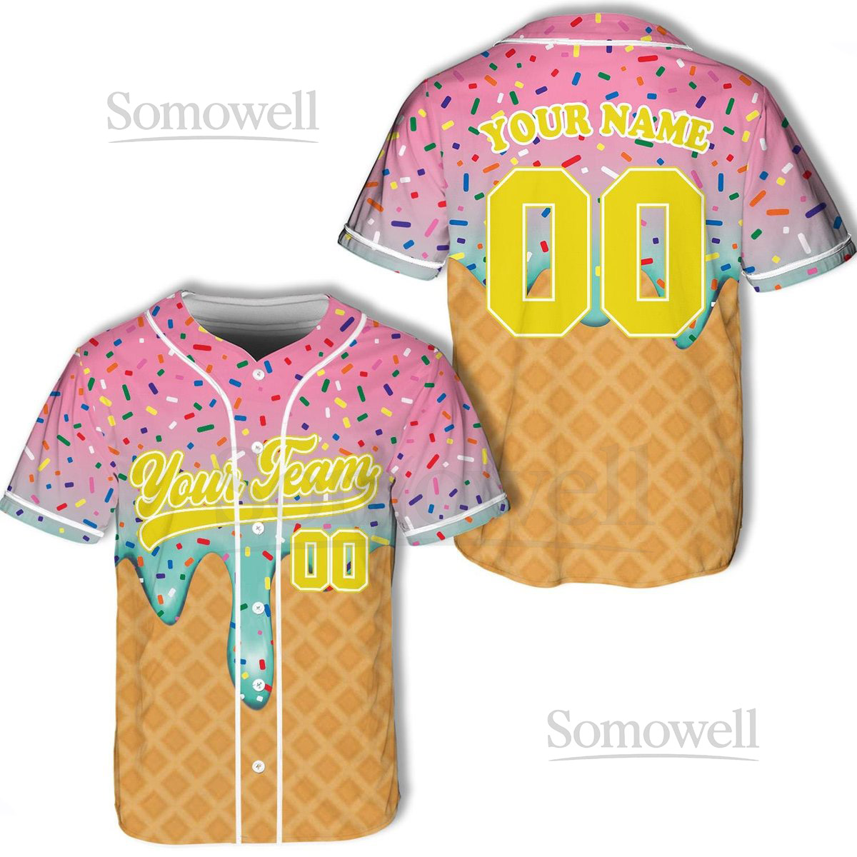 Personalized Ice Cream Baseball Jersey Custom Name and Number Shirt Baseball Mama Jersey Ice Cream Baseball Jersey Sport Matching Jersey_182