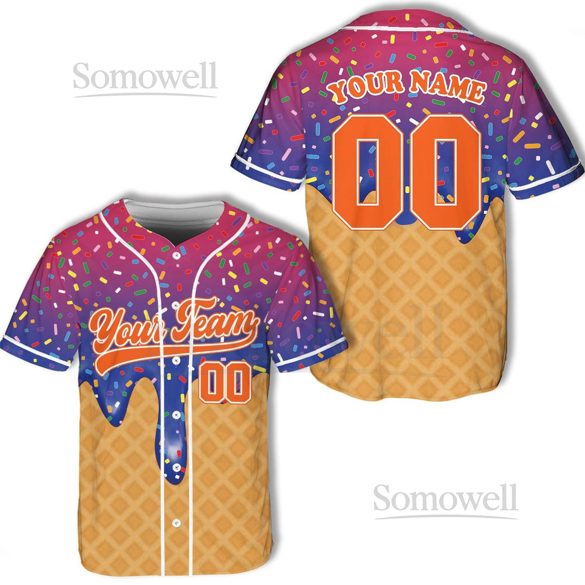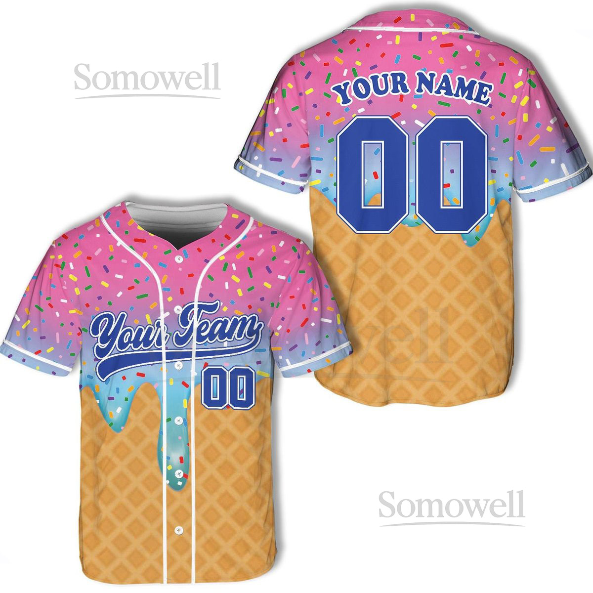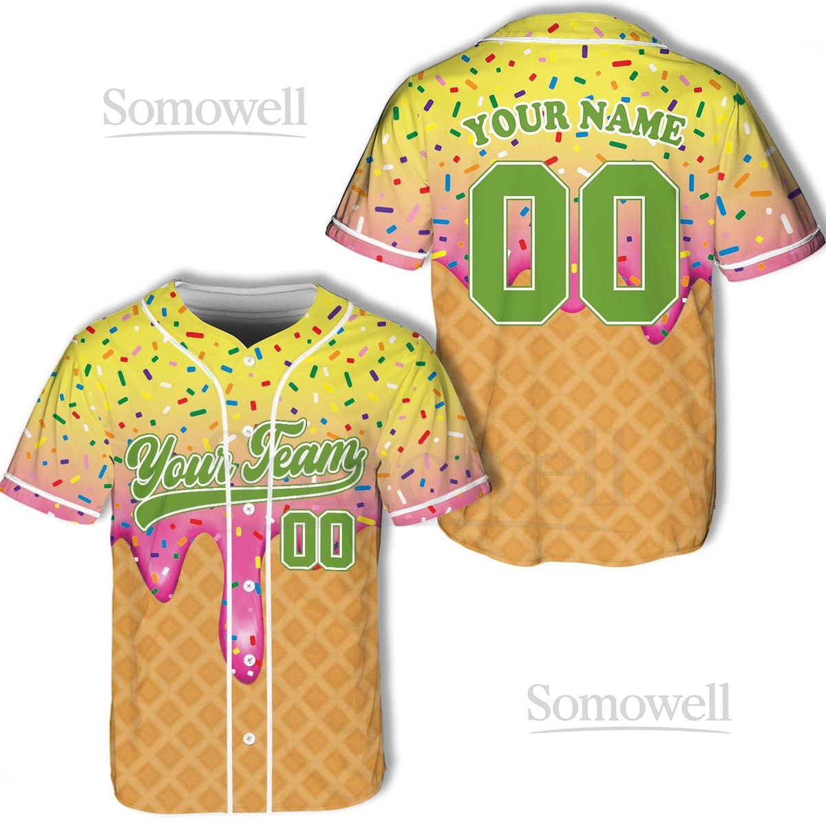 Personalized Ice Cream Baseball Jersey Custom Name and Number Shirt Baseball Mama Jersey Ice Cream Baseball Jersey Sport Matching Jersey_182