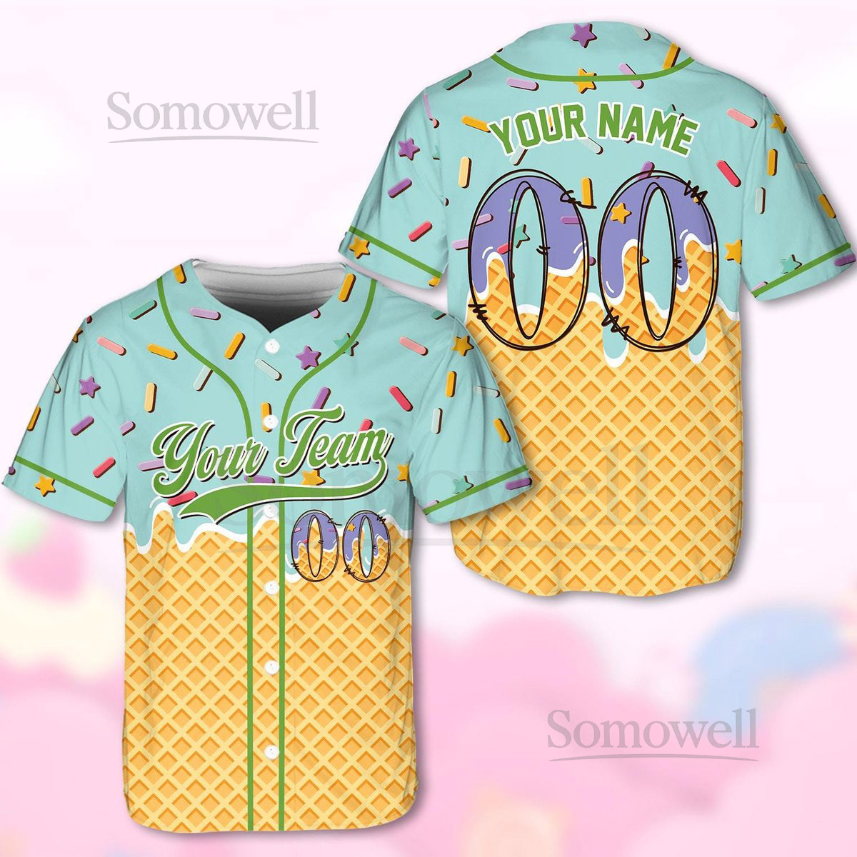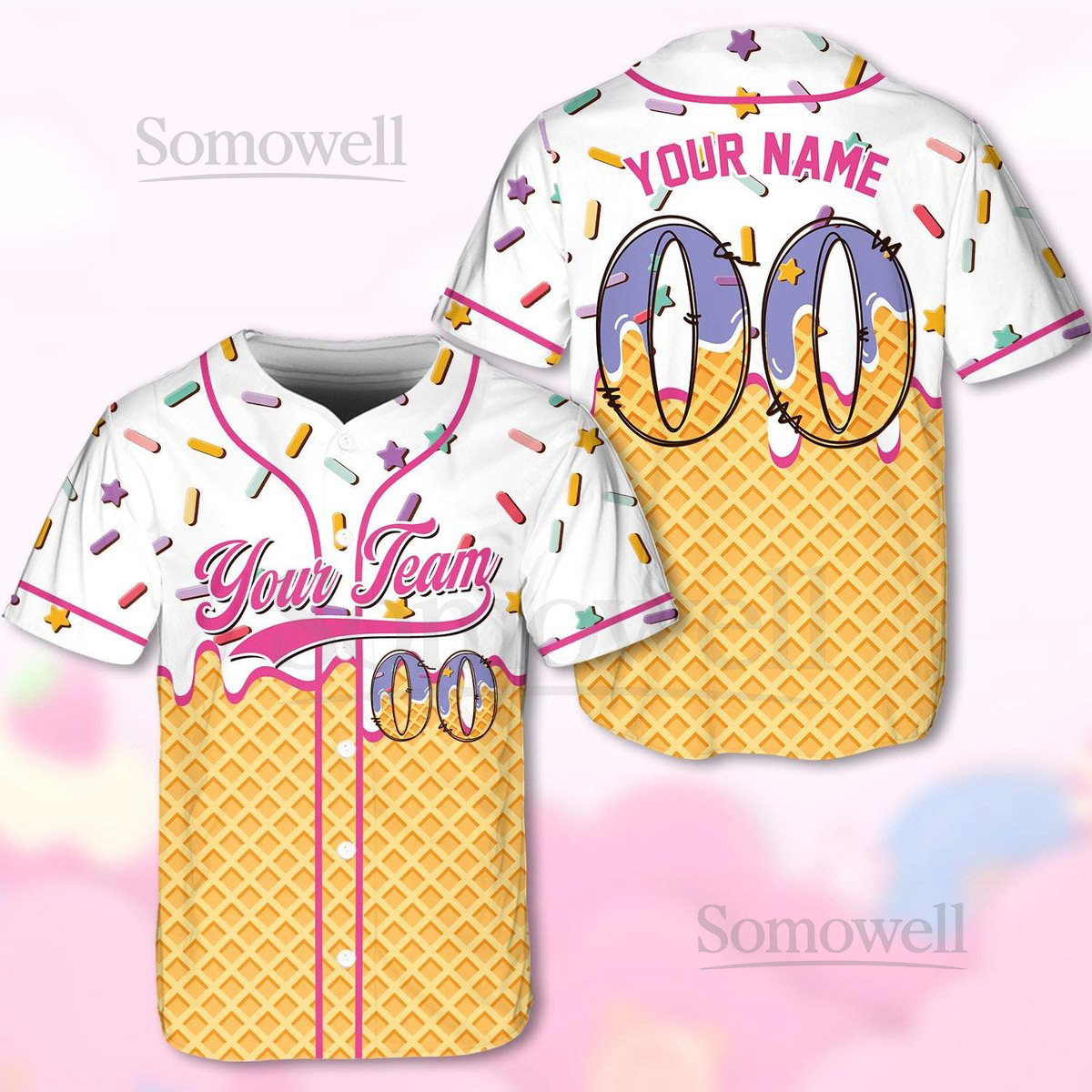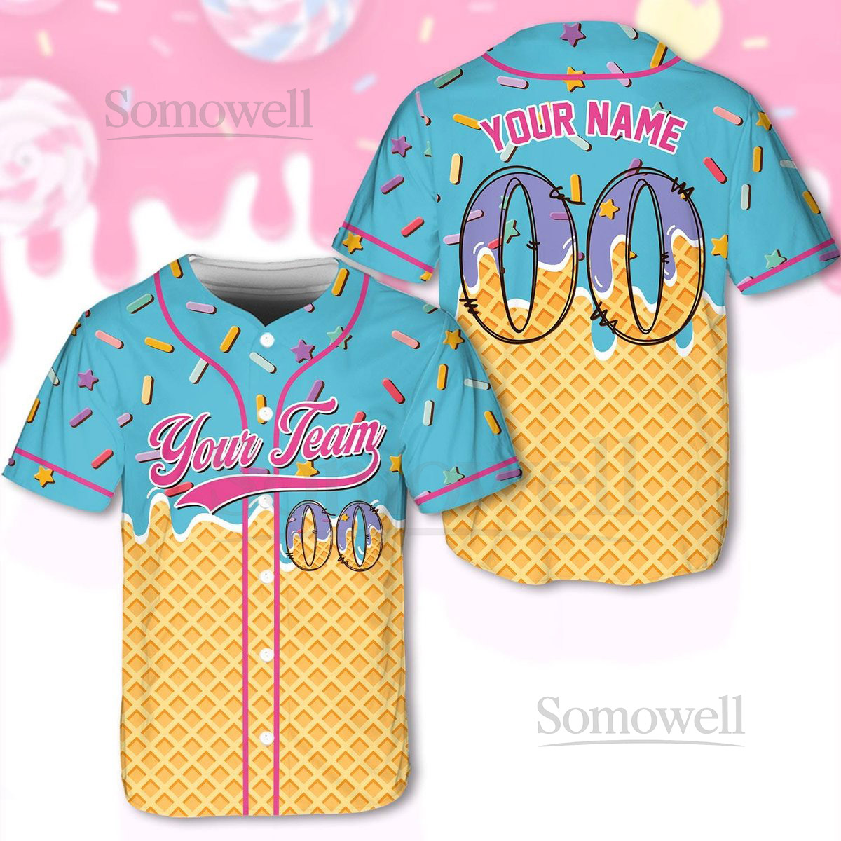 Personalized Ice Cream Baseball Jersey Custom Name and Number Shirt Baseball Mama Jersey Ice Cream Baseball Jersey Sport Matching Jersey_183