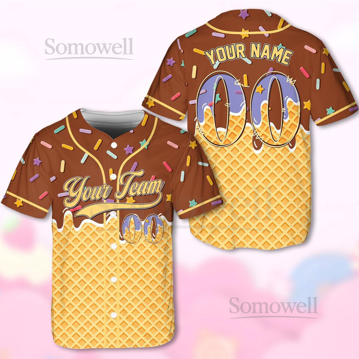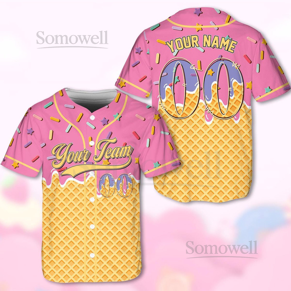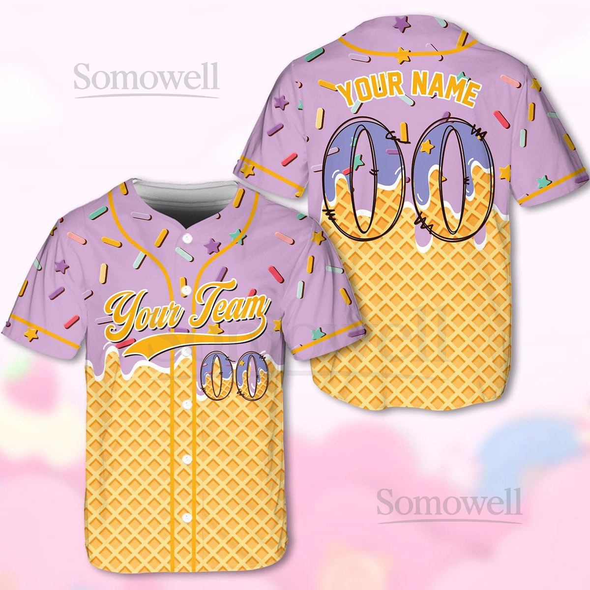 Personalized Ice Cream Baseball Jersey Custom Name and Number Shirt Baseball Mama Jersey Ice Cream Baseball Jersey Sport Matching Jersey_183