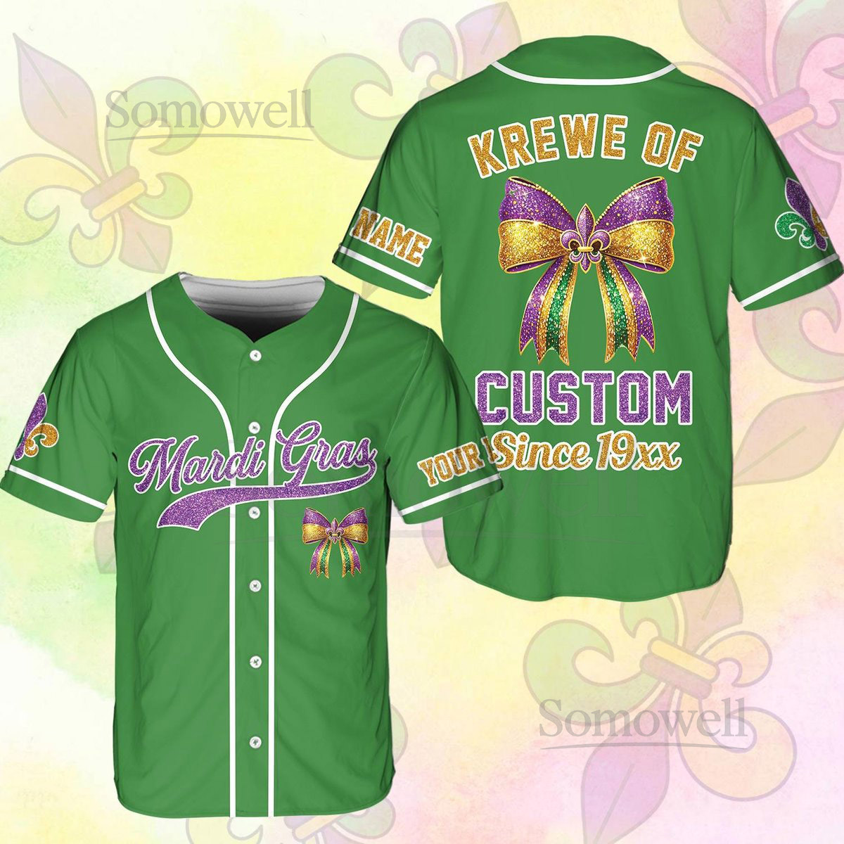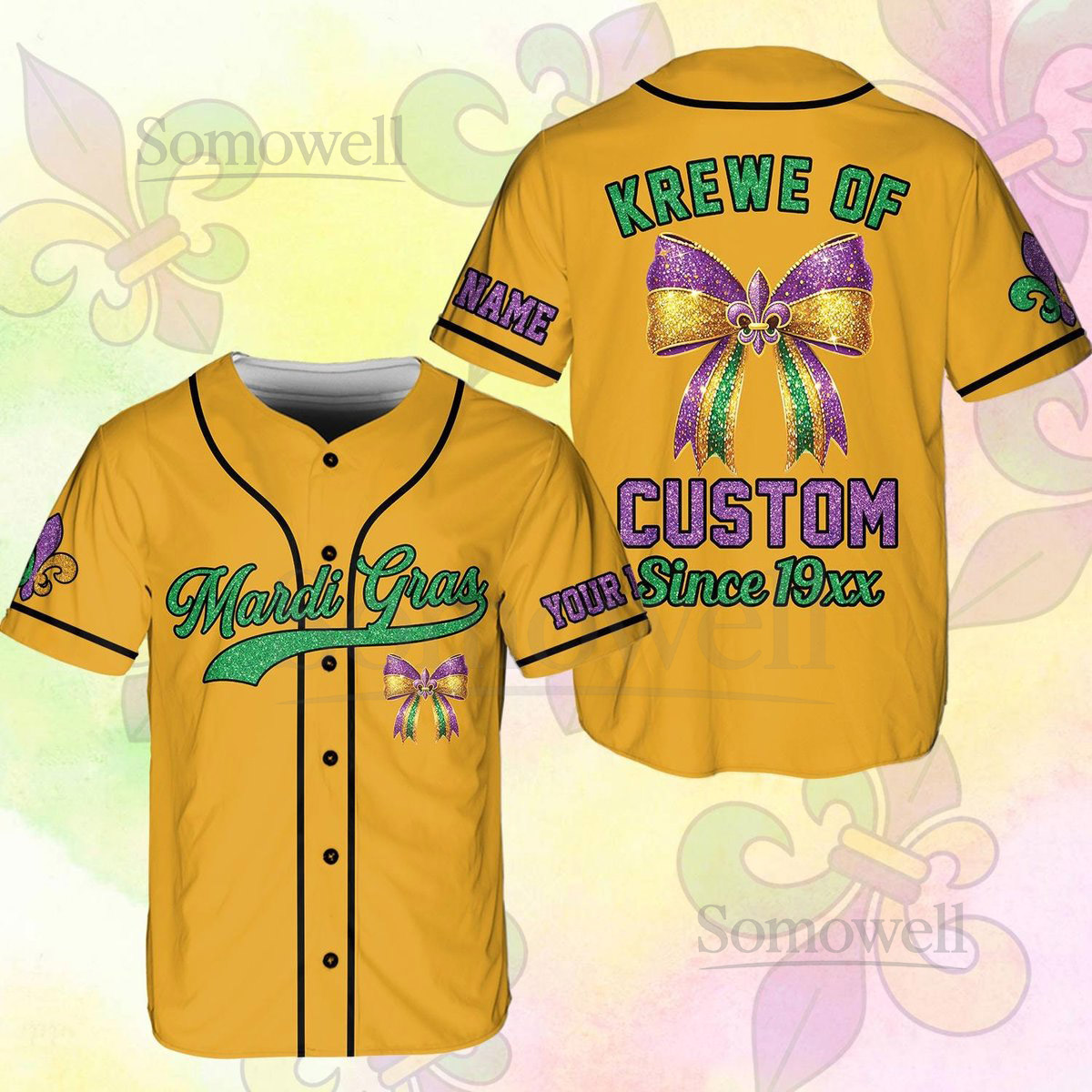 Personalized Krewe Mardi Gras Baseball Jersey Men Women Kid Youth Custom Mardi Gras With Bow Ribbon Baseball Jersey Perfect For Carnival_198