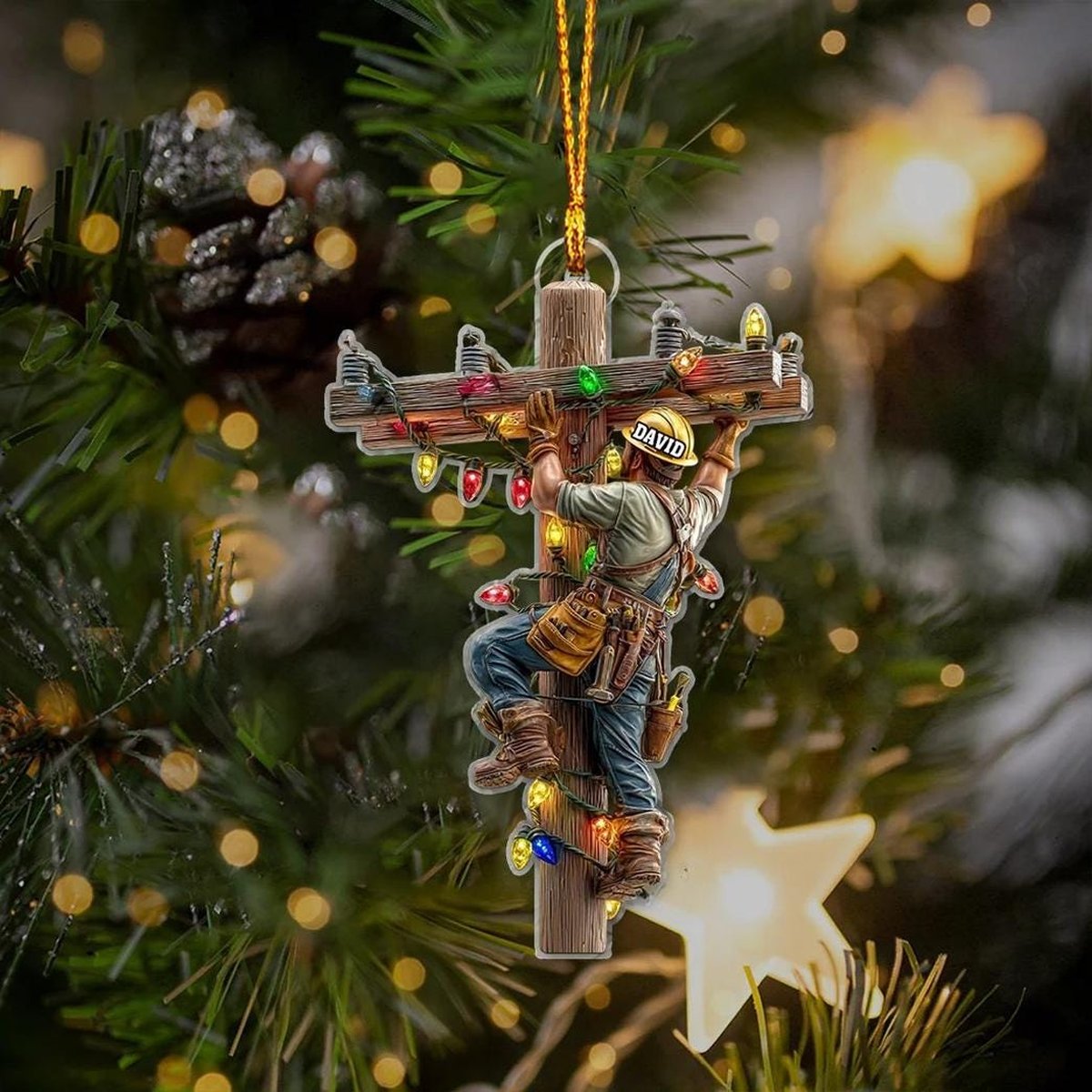 Personalized Lineman Christmas Ornament Worker Lineman Tree Hanger Lineworker Ornament Lineman Christmas Gift For Dad Gift For Lineman