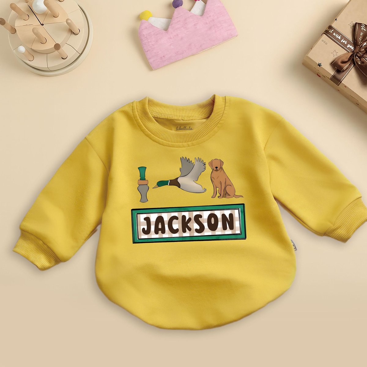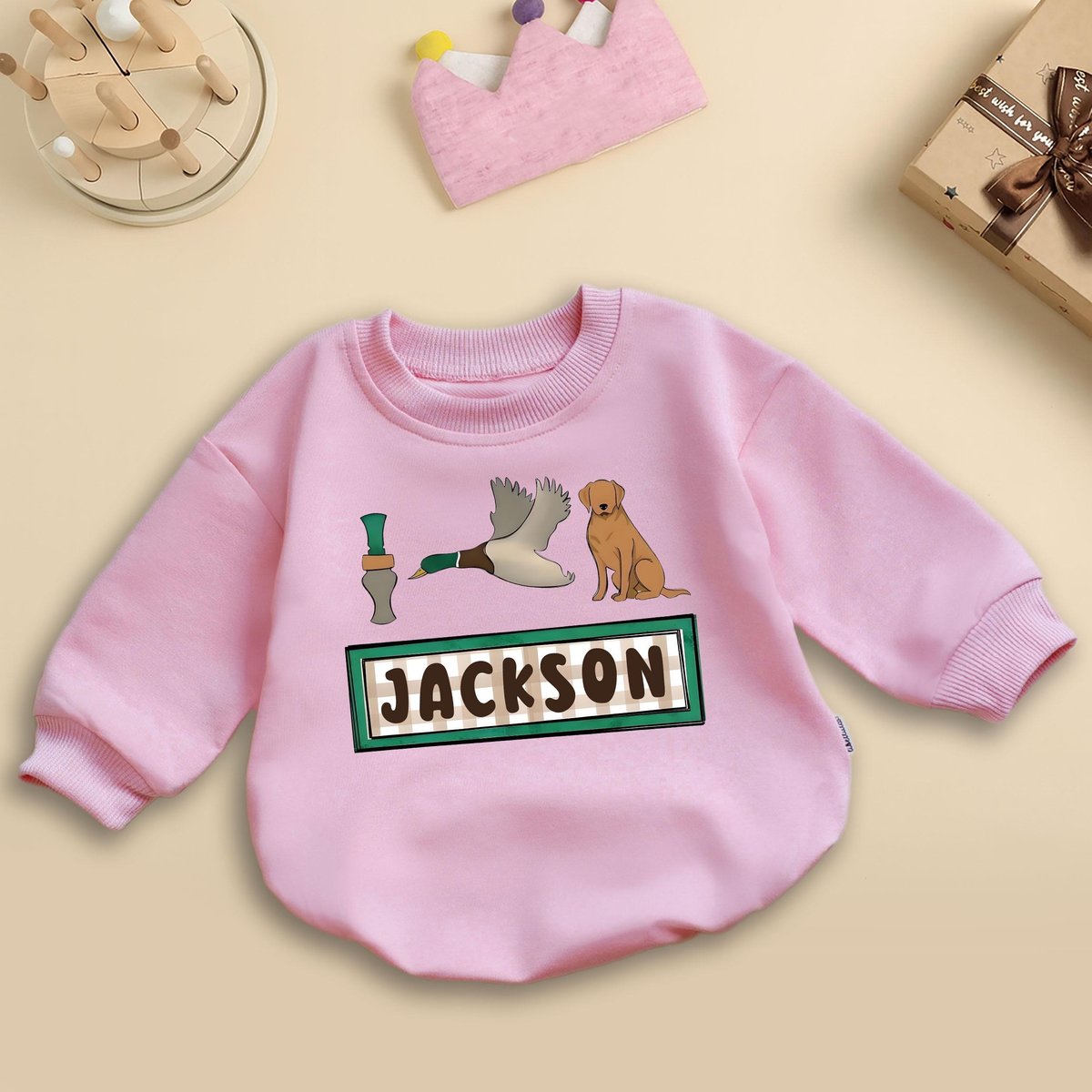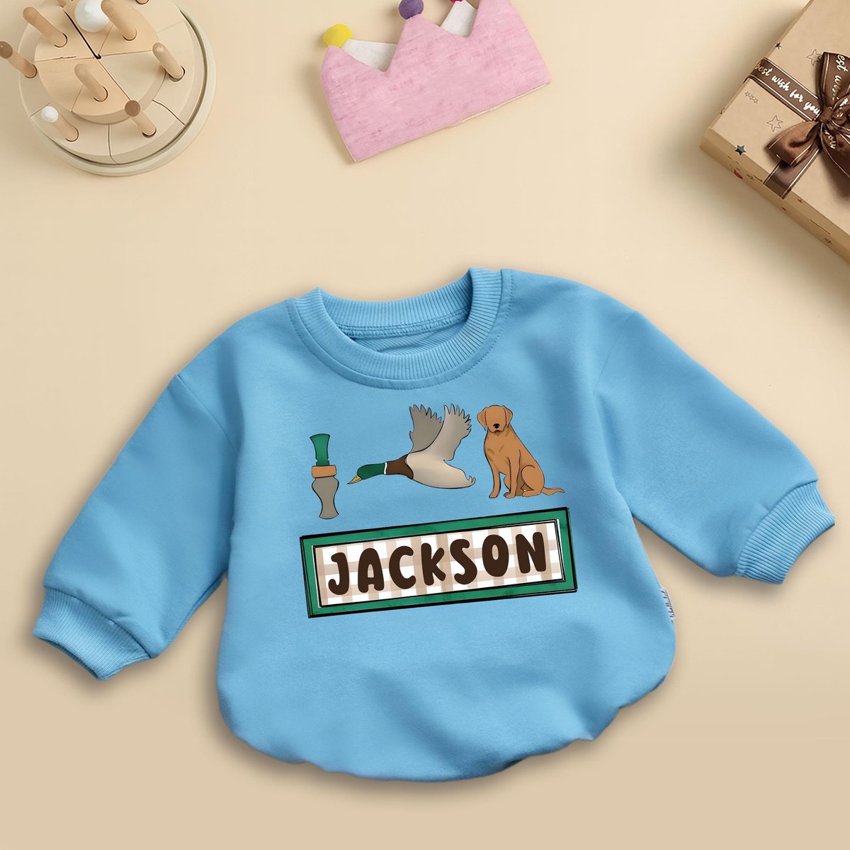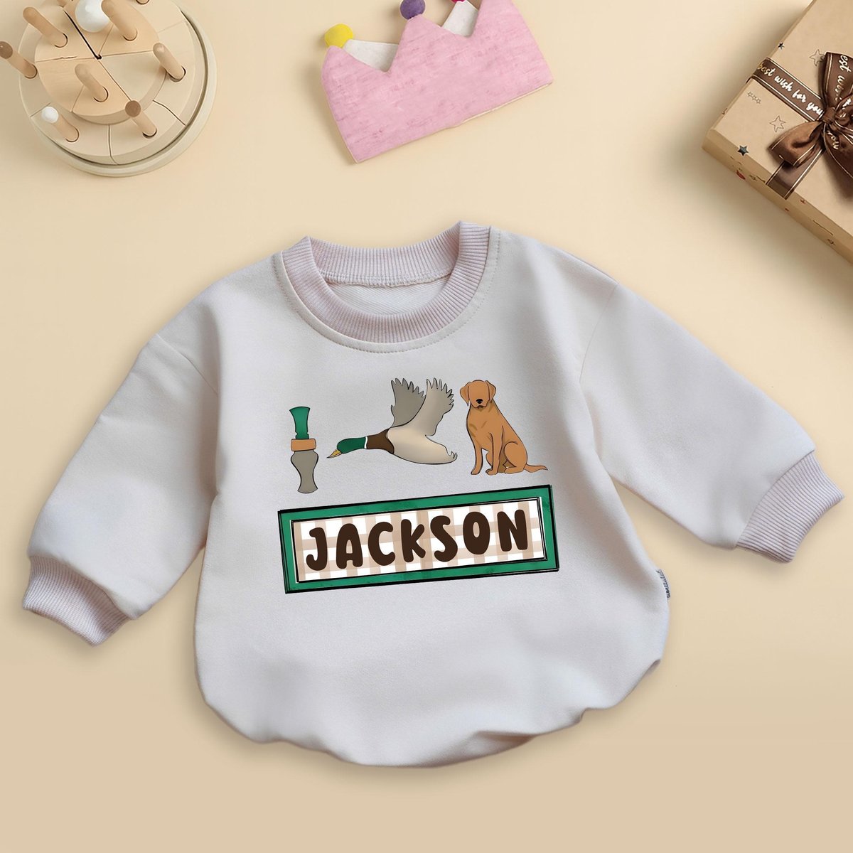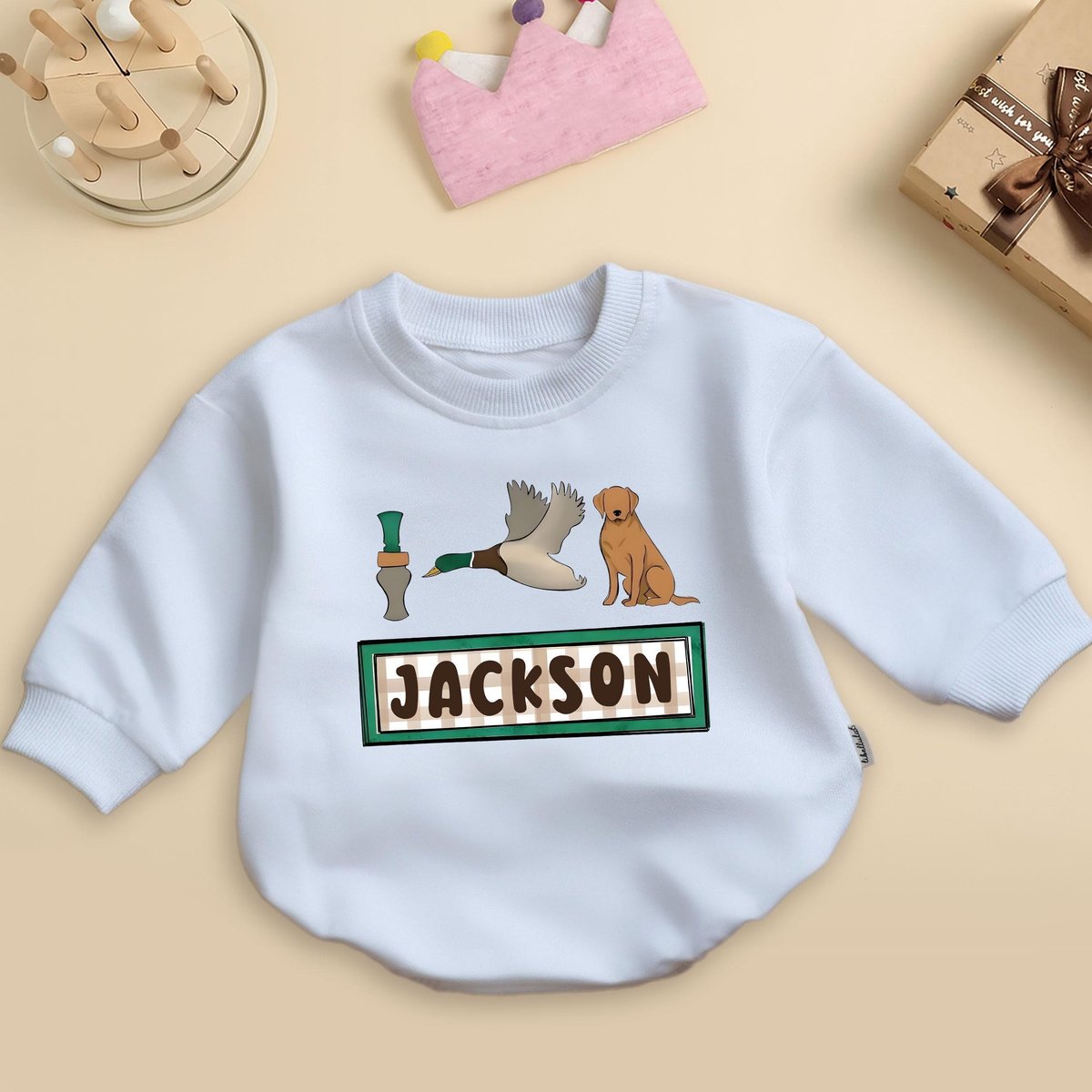 Personalized Mallard Duck Hunting Bubble Romper Sweater Boy Ducking Hunter Baby Romper Newborn Bodys 436