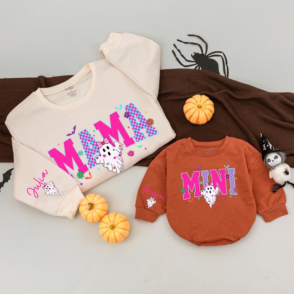 Personalized Mama Mini Halloween Matching Sweatshirts Mommy and Me Sweaters Retro Halloween Boo Cust 435