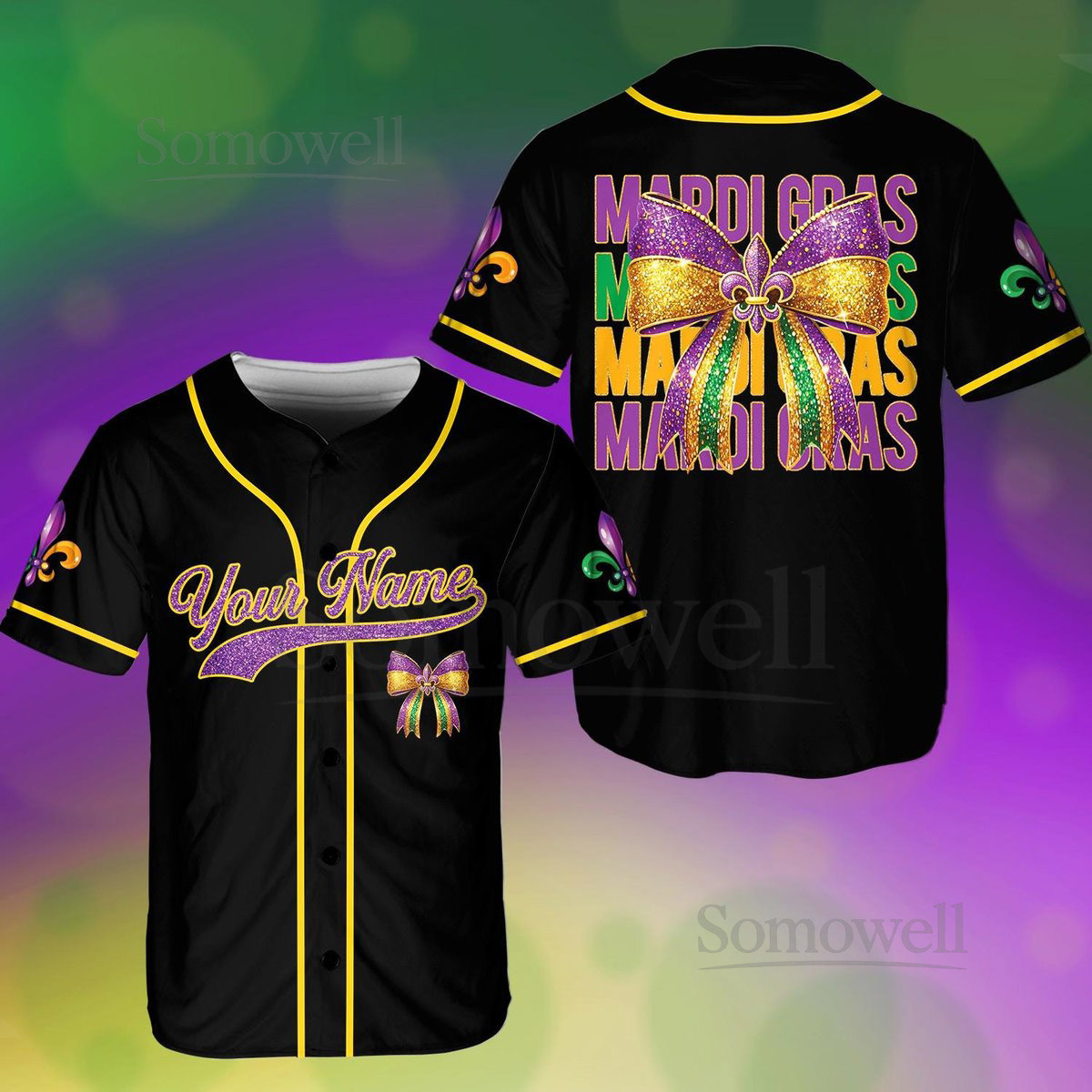 Personalized Mardi Gras Baseball Jersey Men Women Kid Youth Custom Mardi Gras With Bow Ribbon Baseball Jersey Perfect For Carnival_262