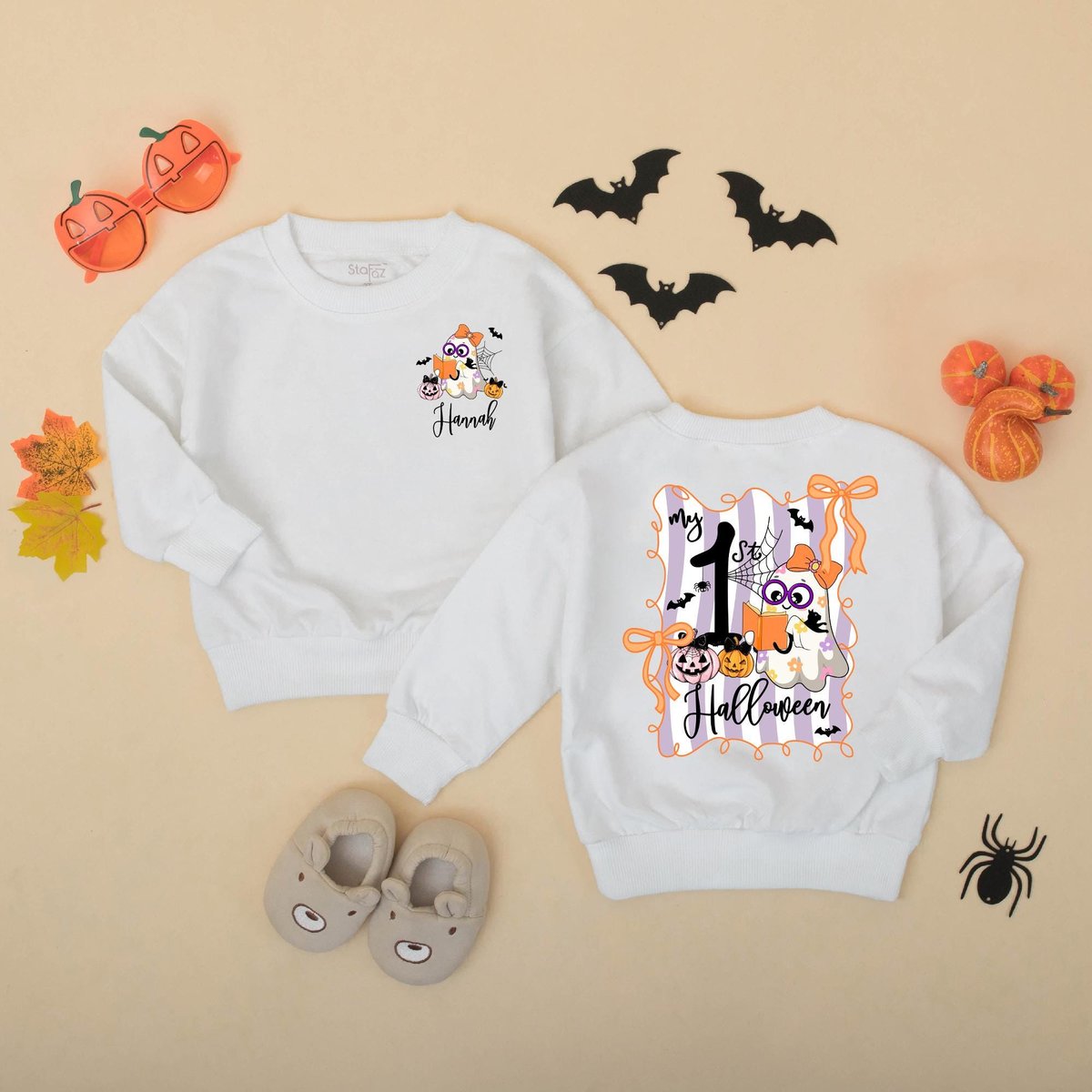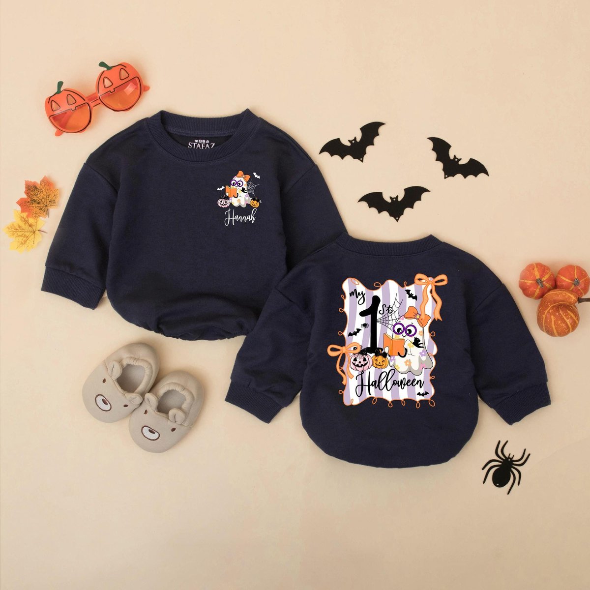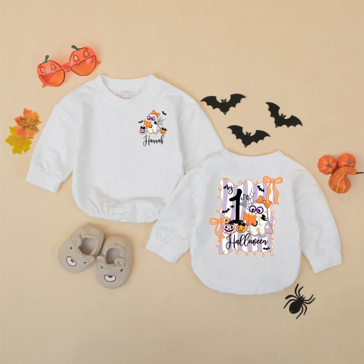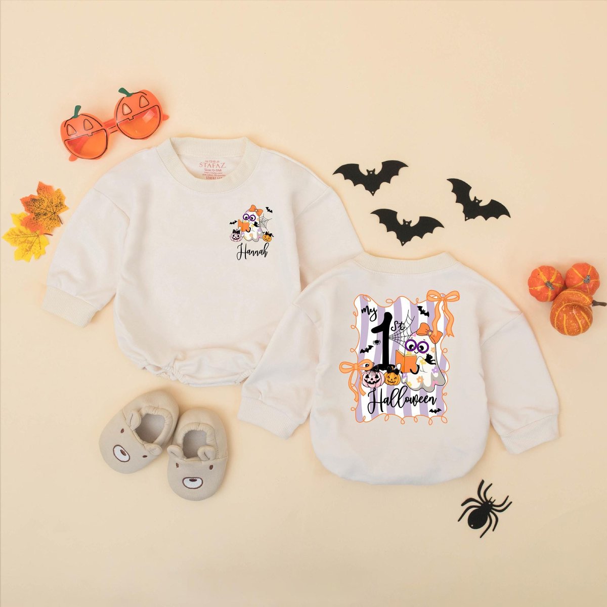 Personalized My First Halloween Baby Romper Custom Name Fall Baby Outfit 1st Halloween Ghost Romper 432