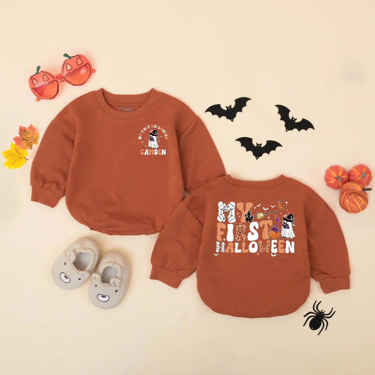 Personalized My First Halloween Baby Romper Retro Halloween Baby Boy Bodysuit Custom Infant Fall Out 435