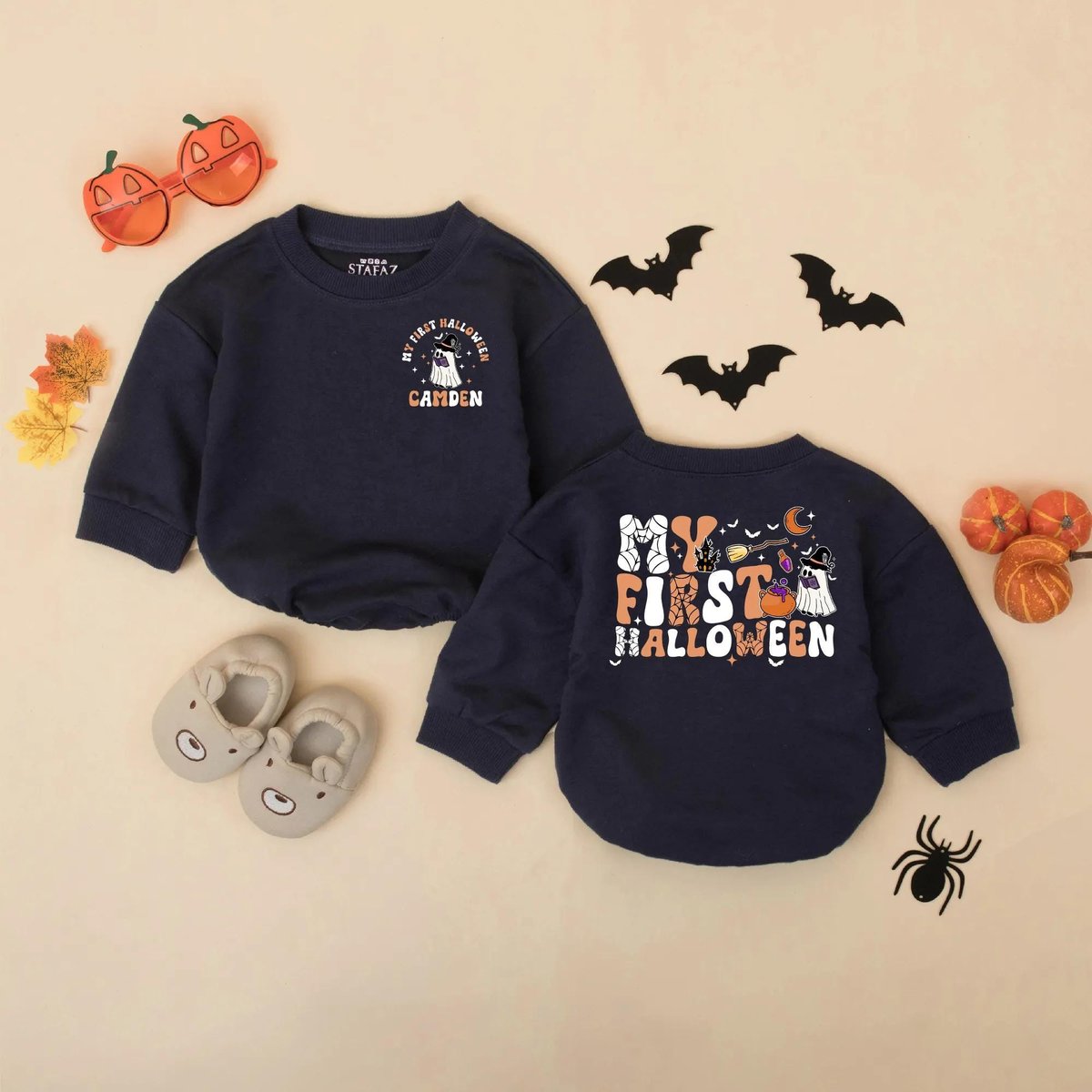 Be the first to review “Personalized My First Halloween Baby Romper Retro Halloween Baby Boy Bodysuit Custom Infant Fall Out 435”