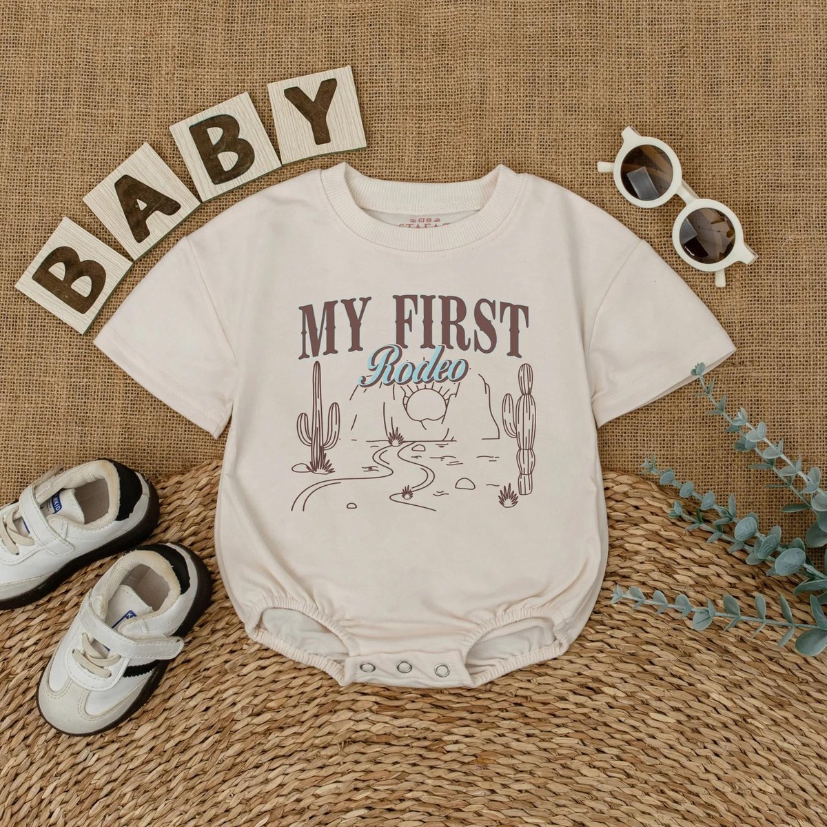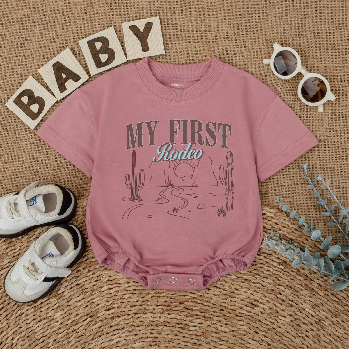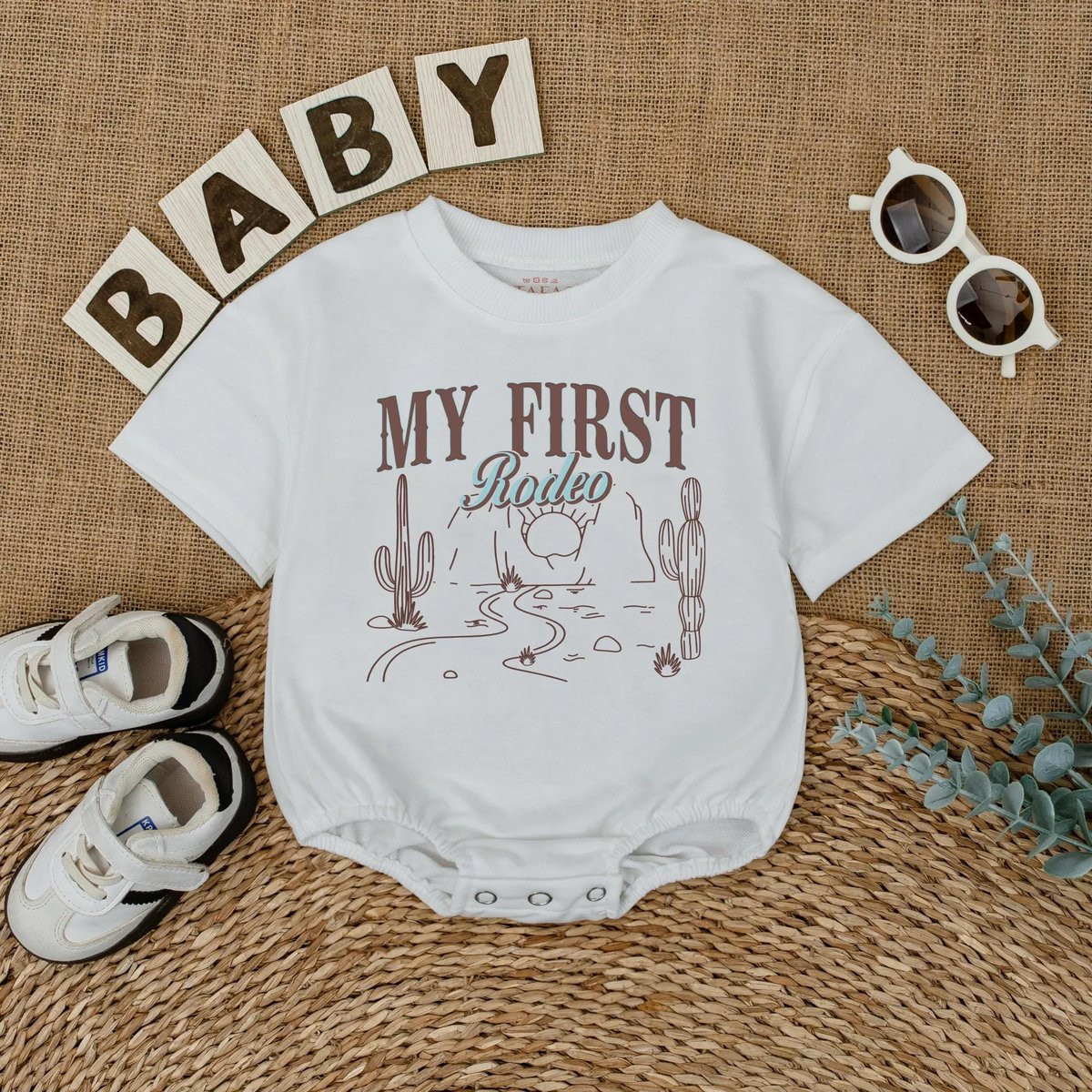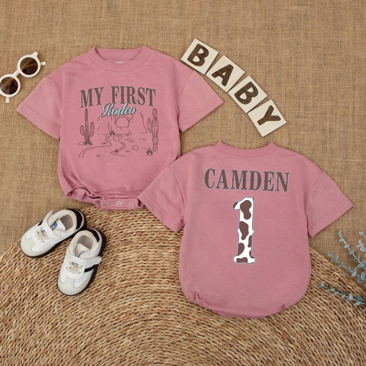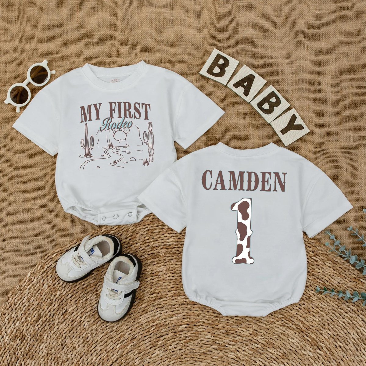 Personalized My First Rodeo Baby Romper First Birthday Outfit Western Themed Baby Shirt Custom Name 430