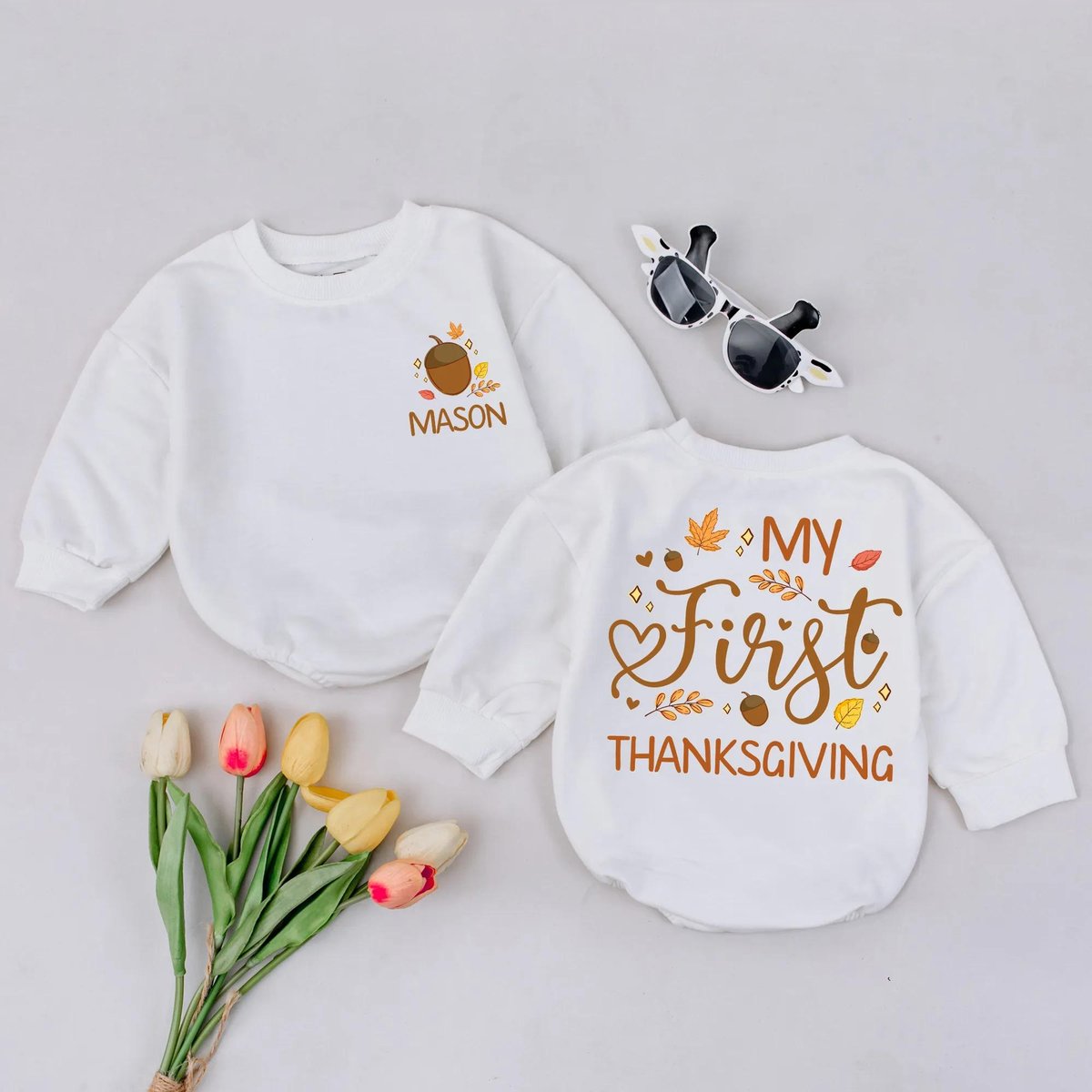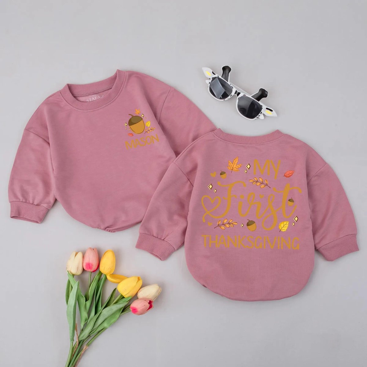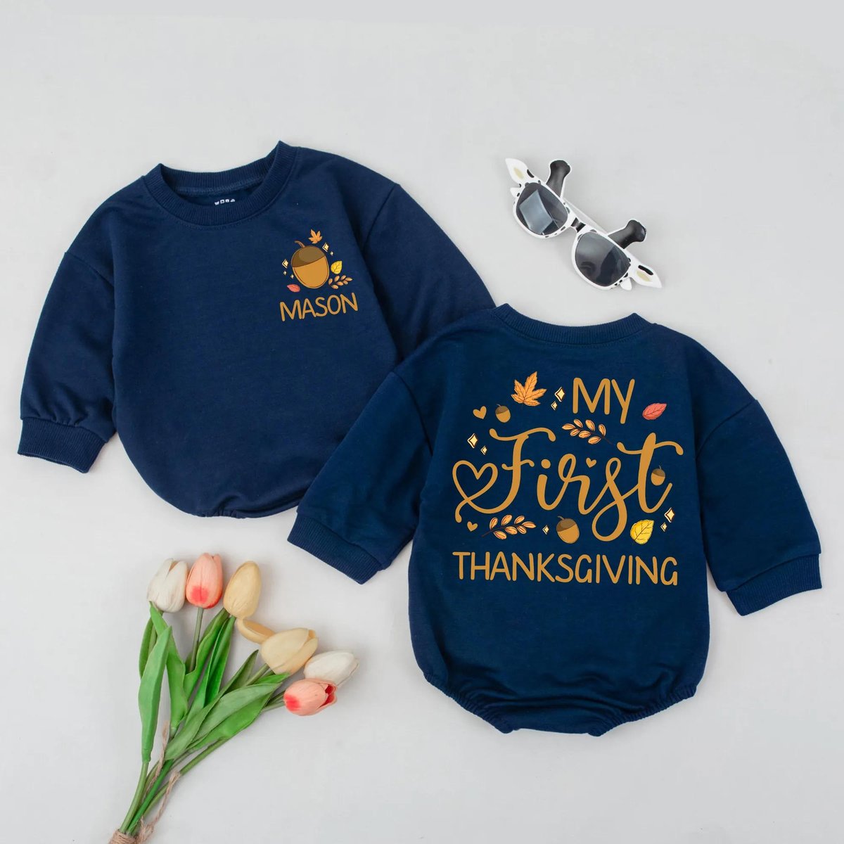 Personalized My First Thanksgiving Baby Romper Fall Baby Clothes Custom Name 1st Thanksgiving Outfit 436