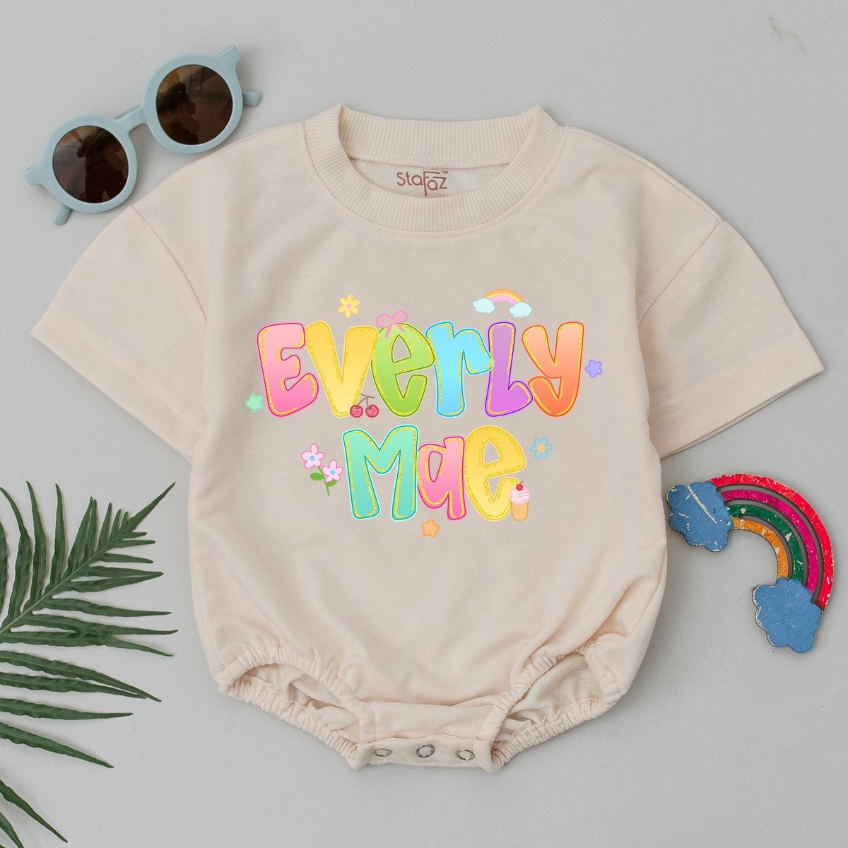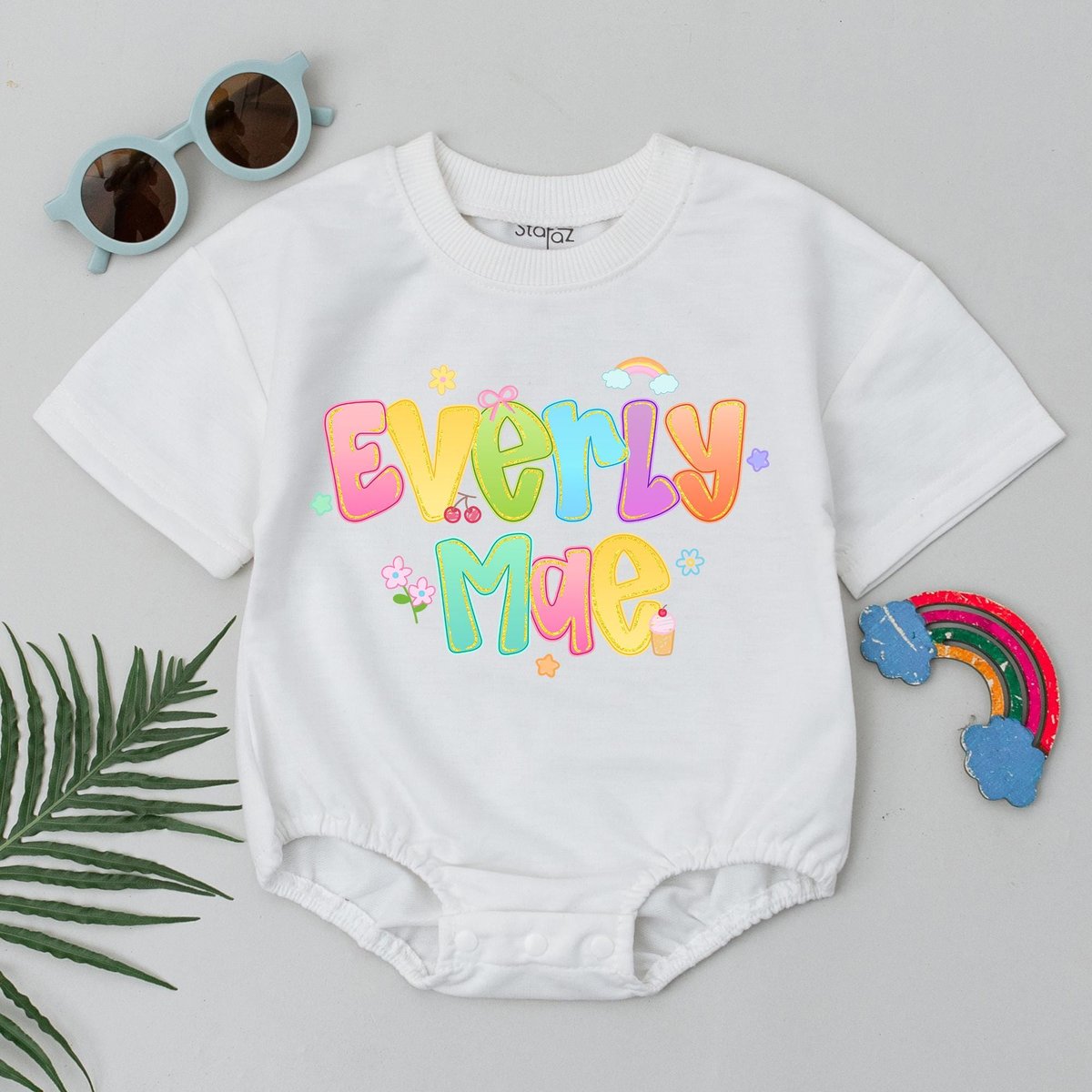 Personalized Name Baby Bubble Romper Summer Baby Girl Outfit Handwriting Print Bodysuit First Birthd
