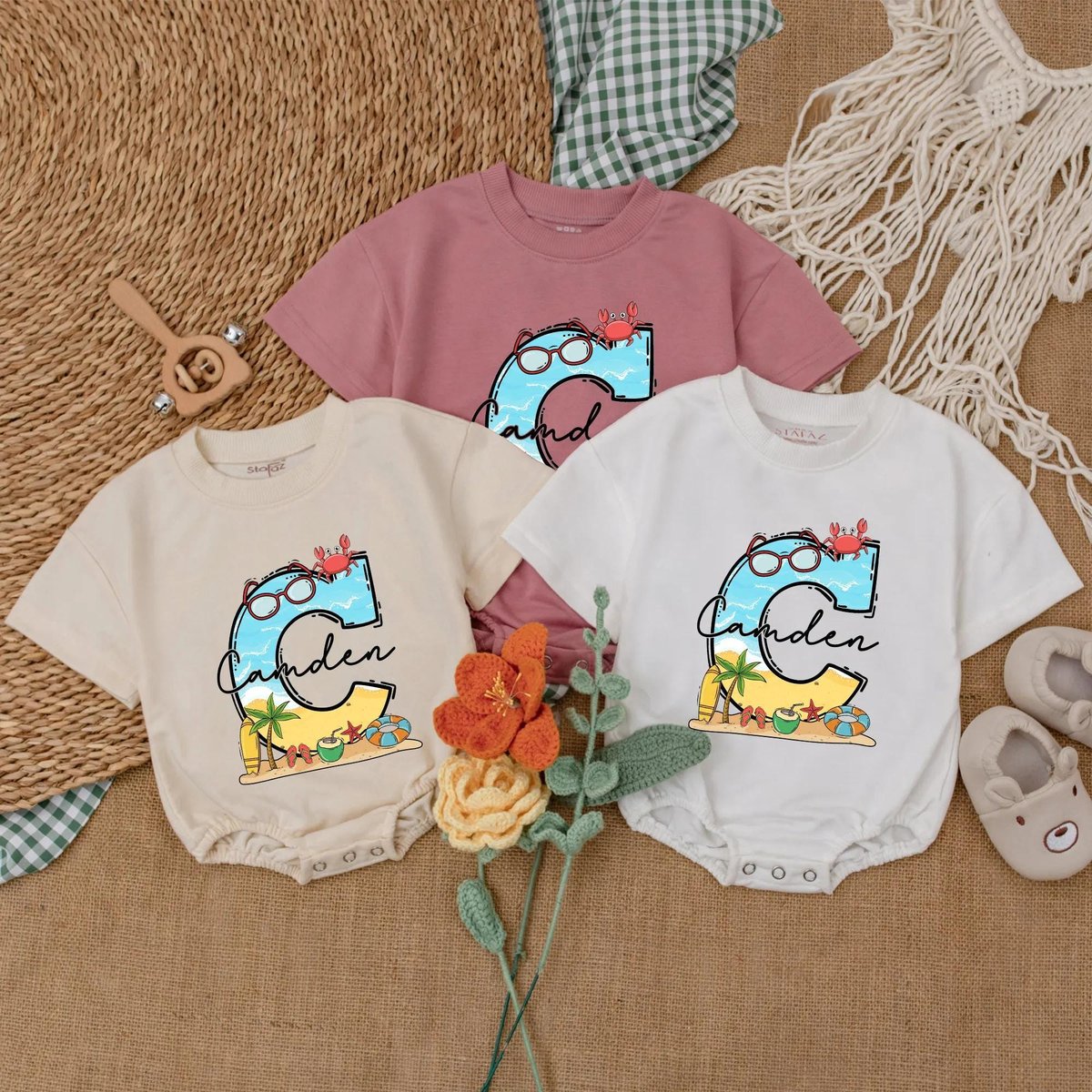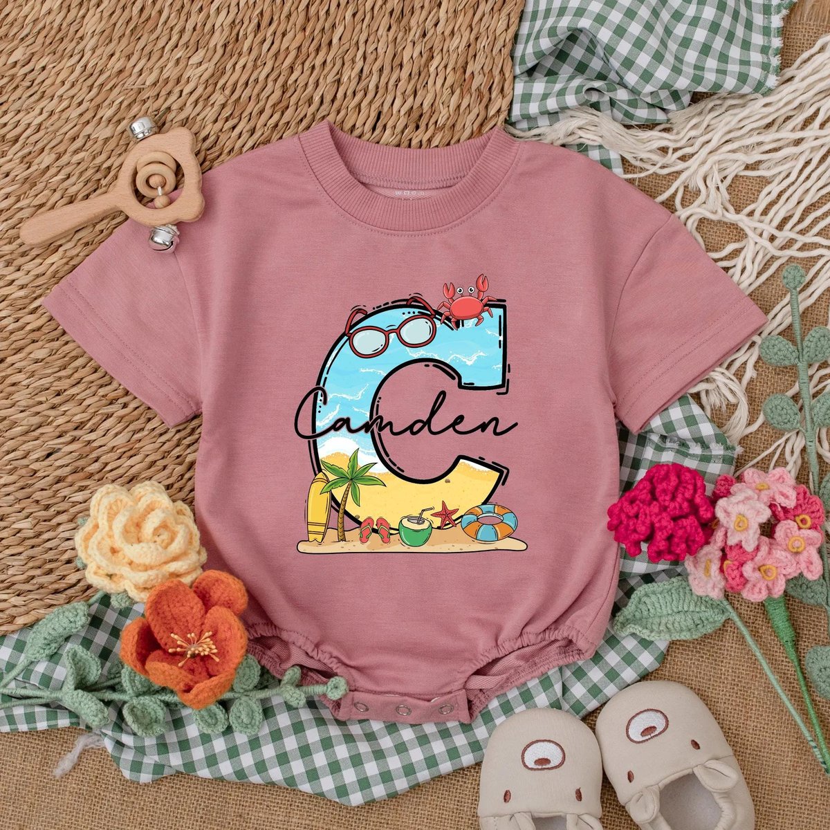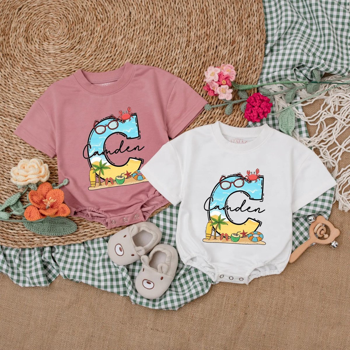 Personalized Name Beach Baby Romper Summer Baby Bodysuit Beach Vacation Clothes Adventure Bubble Rom 187