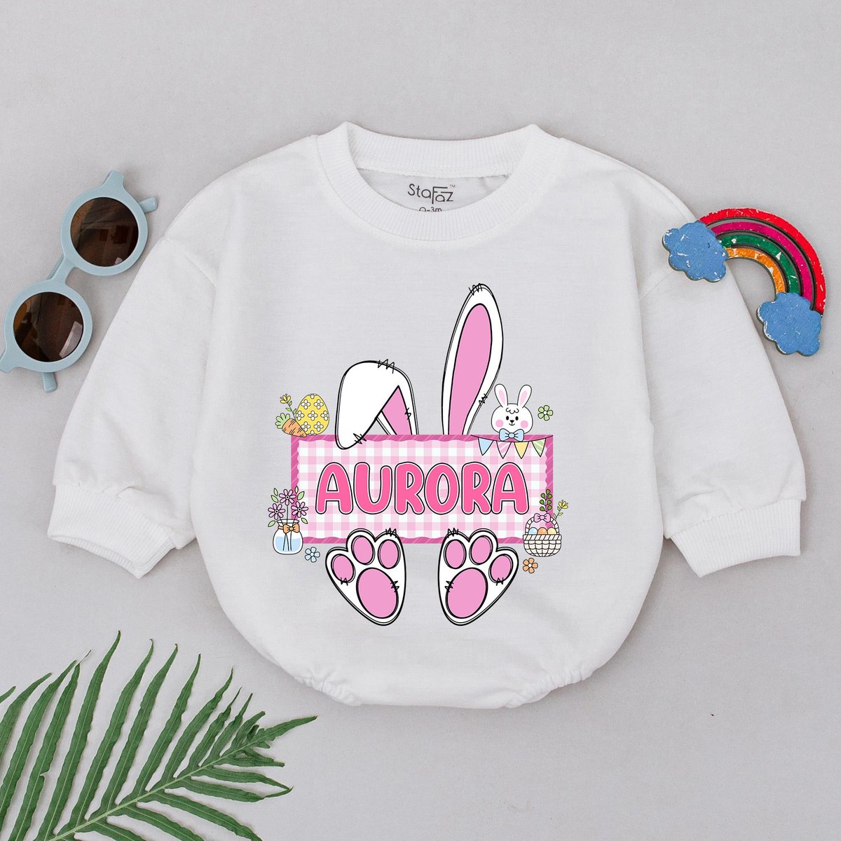 Personalized Name Easter Bunny Romper Bunny Ears Little Bunny Bodysuit Retro Easter Day Outfit Baby