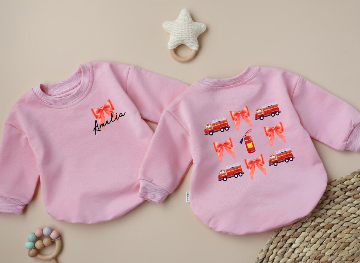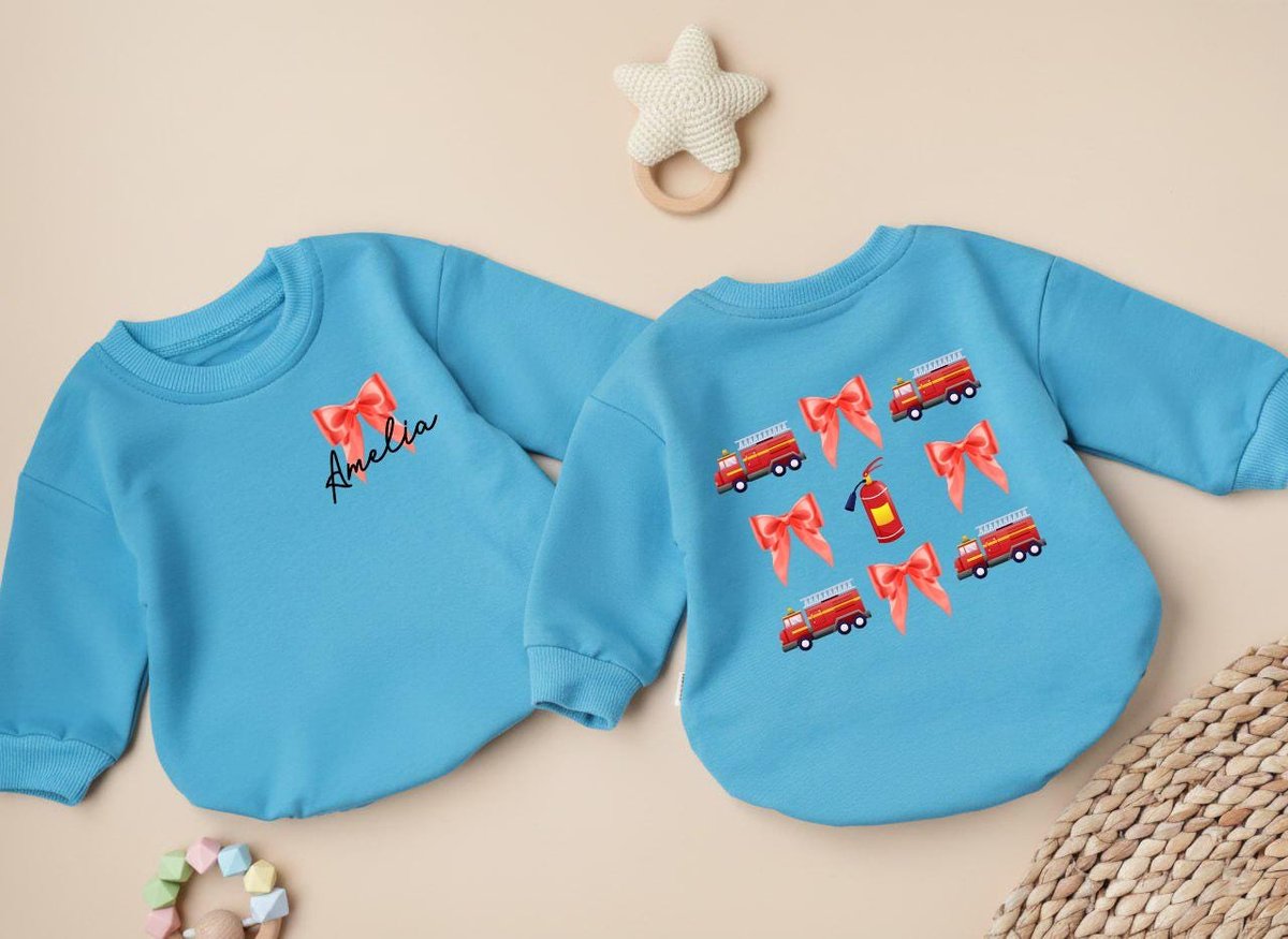 Personalized Name Firetruck Romper Coquette Firefighter Baby Bubble Romper Fire Truck Bubble Romper 436