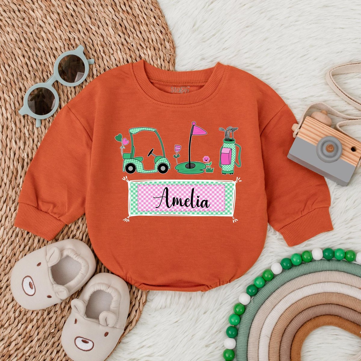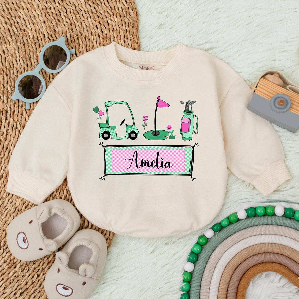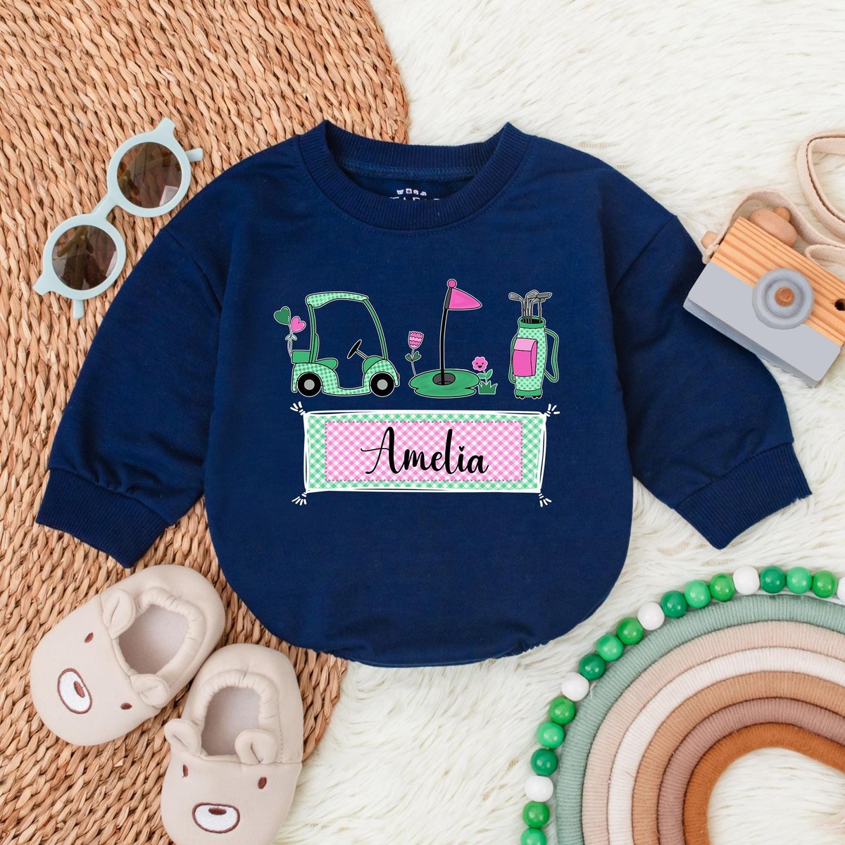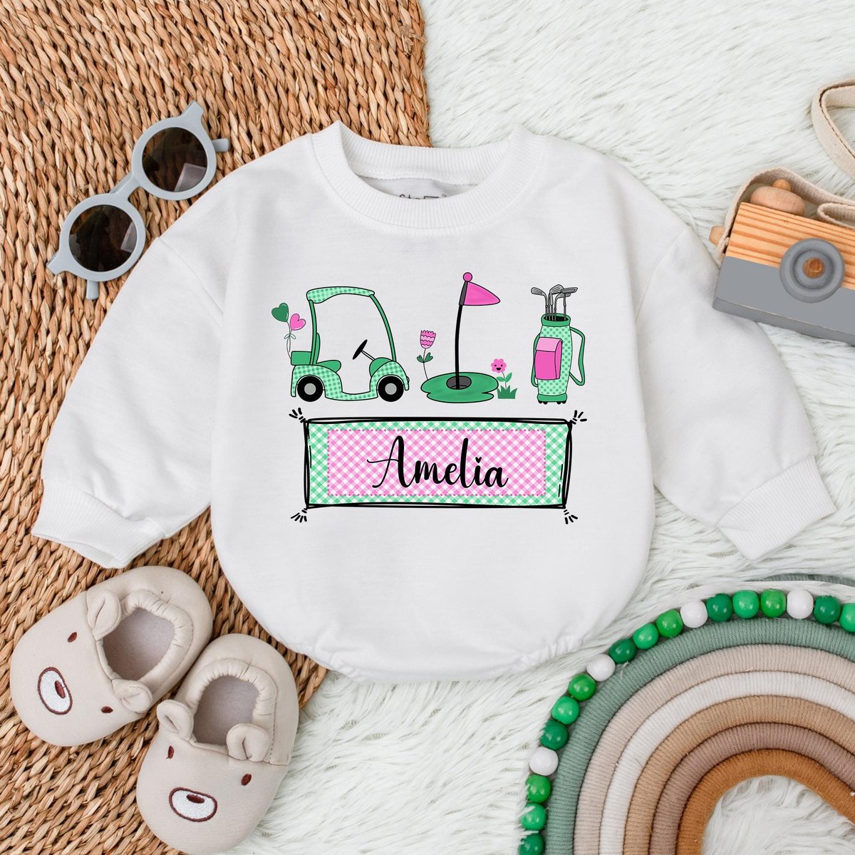 Personalized Name Girl Caddy Baby Bubble Romper Golf Baby Clothes Daddy’s Golfing Buddy Baby Outfit 188