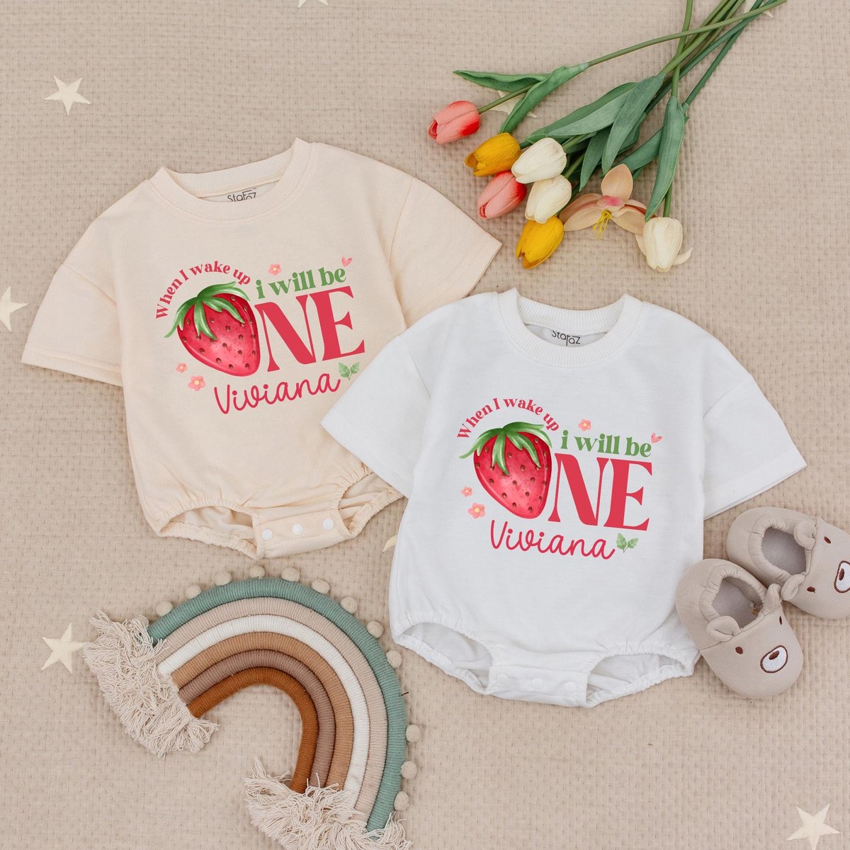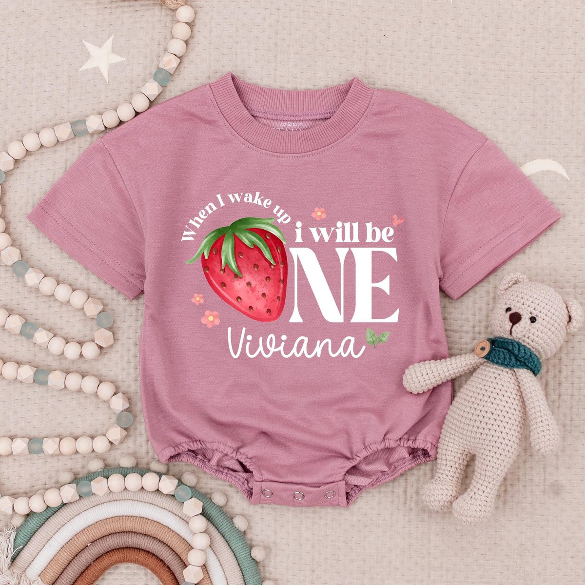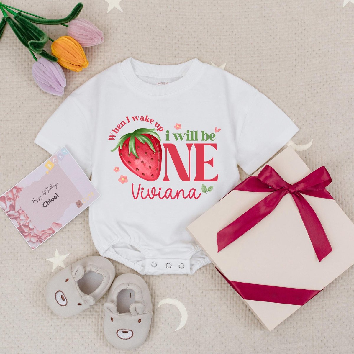 Personalized Name Girl’s First Birthday Strawberry Baby Romper Birthday Keepsake 1st Birthday Baby