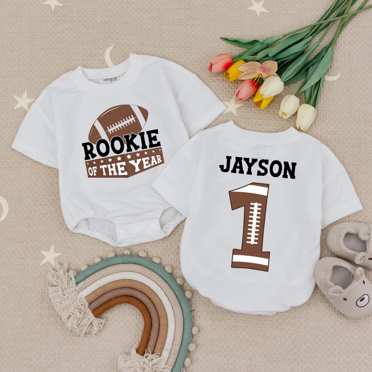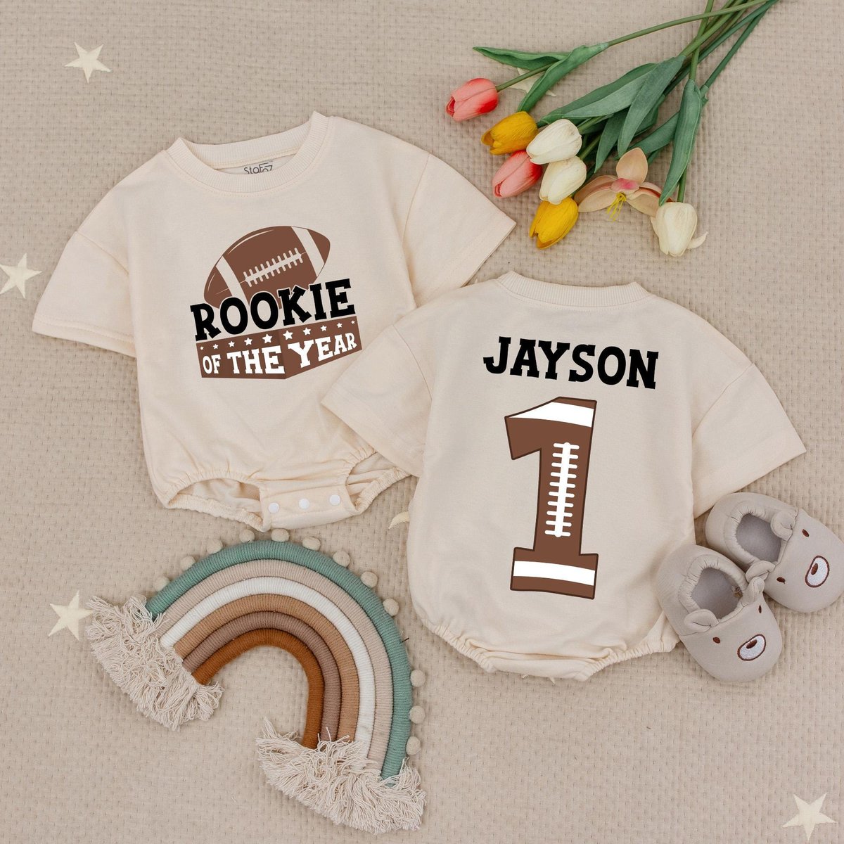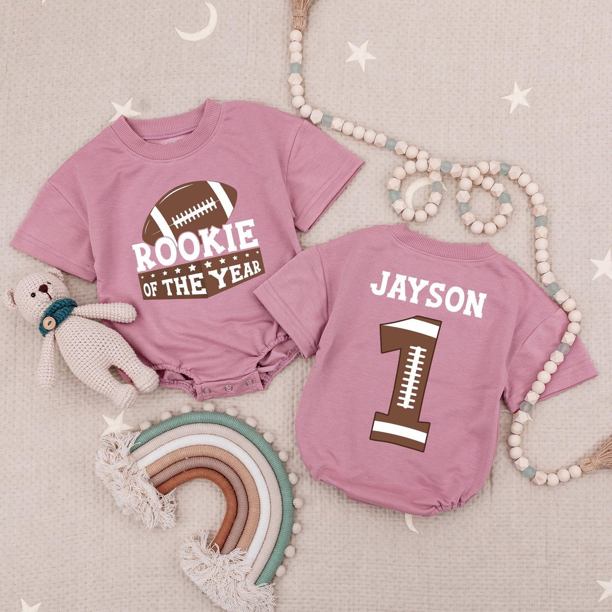 Personalized Name Rookie Of The Year Boys Football Birthday Baby Romper Sports Birthday Party Babysu
