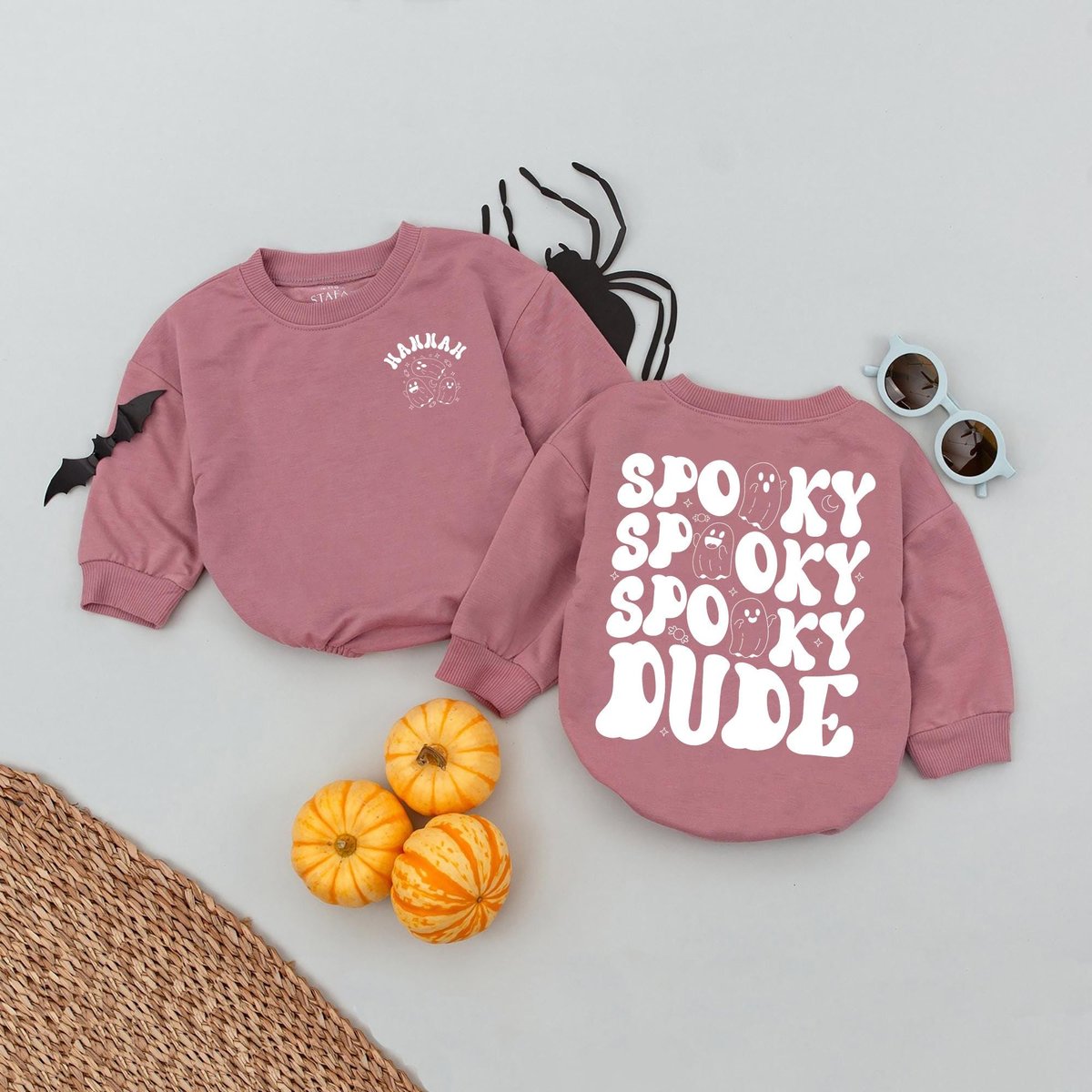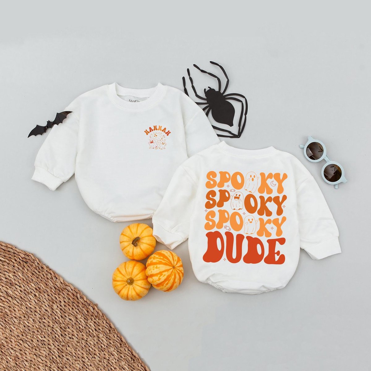Personalized Name Spooky Dude Baby Romper Cute Halloween Kids Babysuit Spooky Ghosts Shirt for Kids