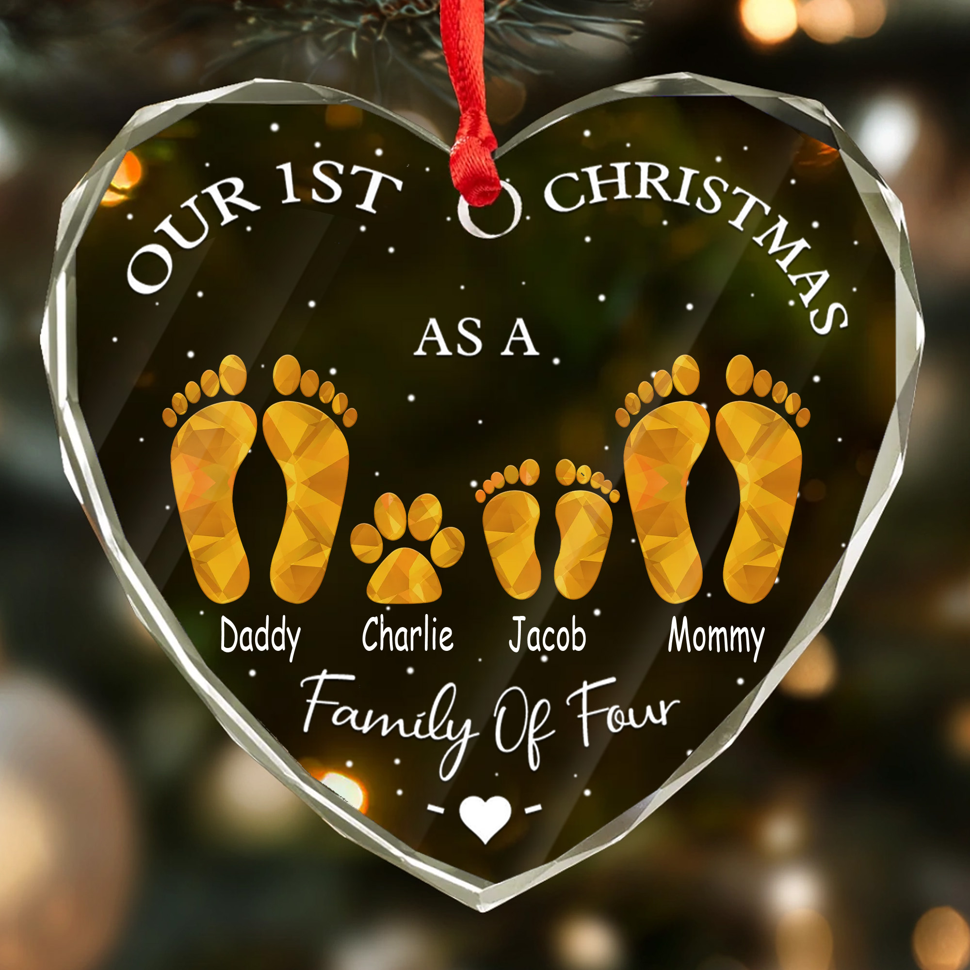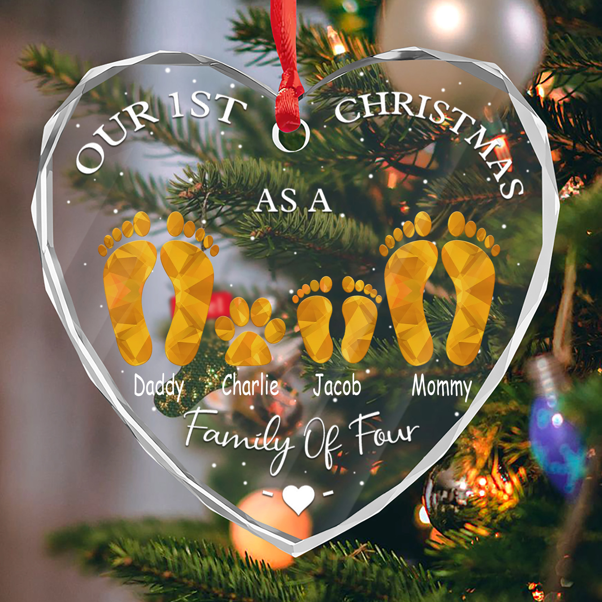 Personalized New Family Ornament with Pet Faceted Glass Heart 1st Christmas Gift for New Parents 2025-HGLO-OB66R