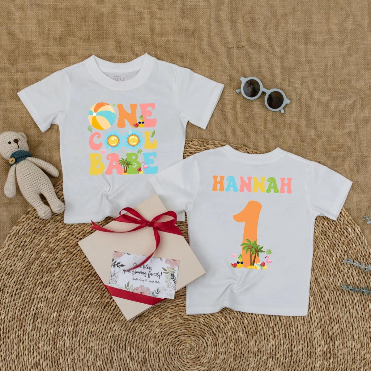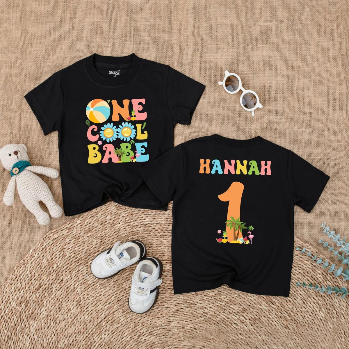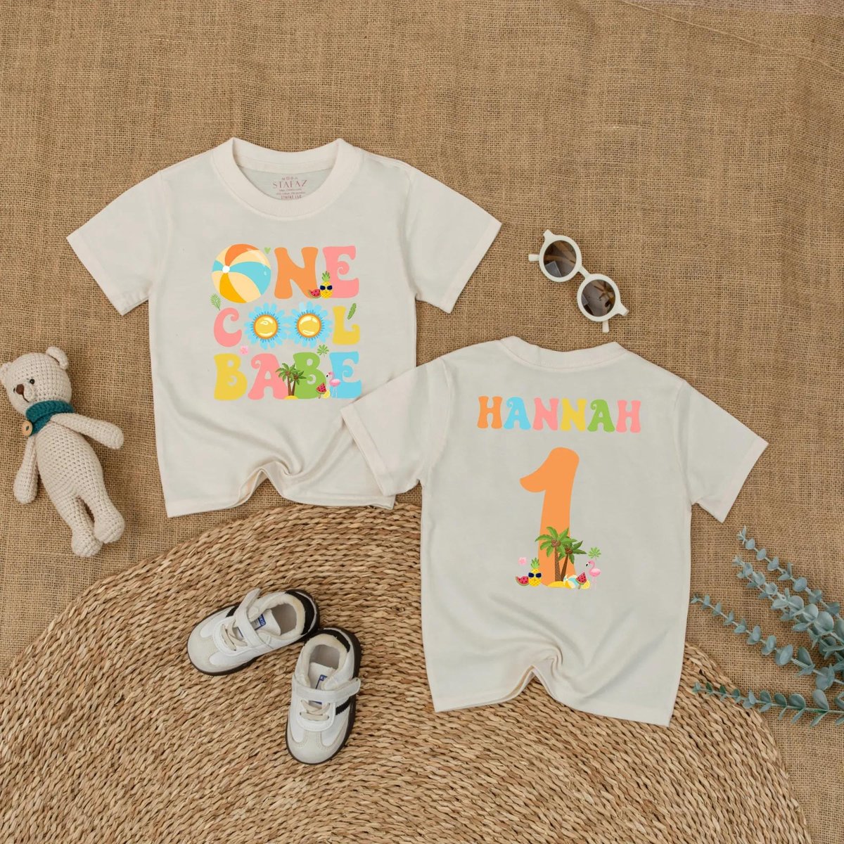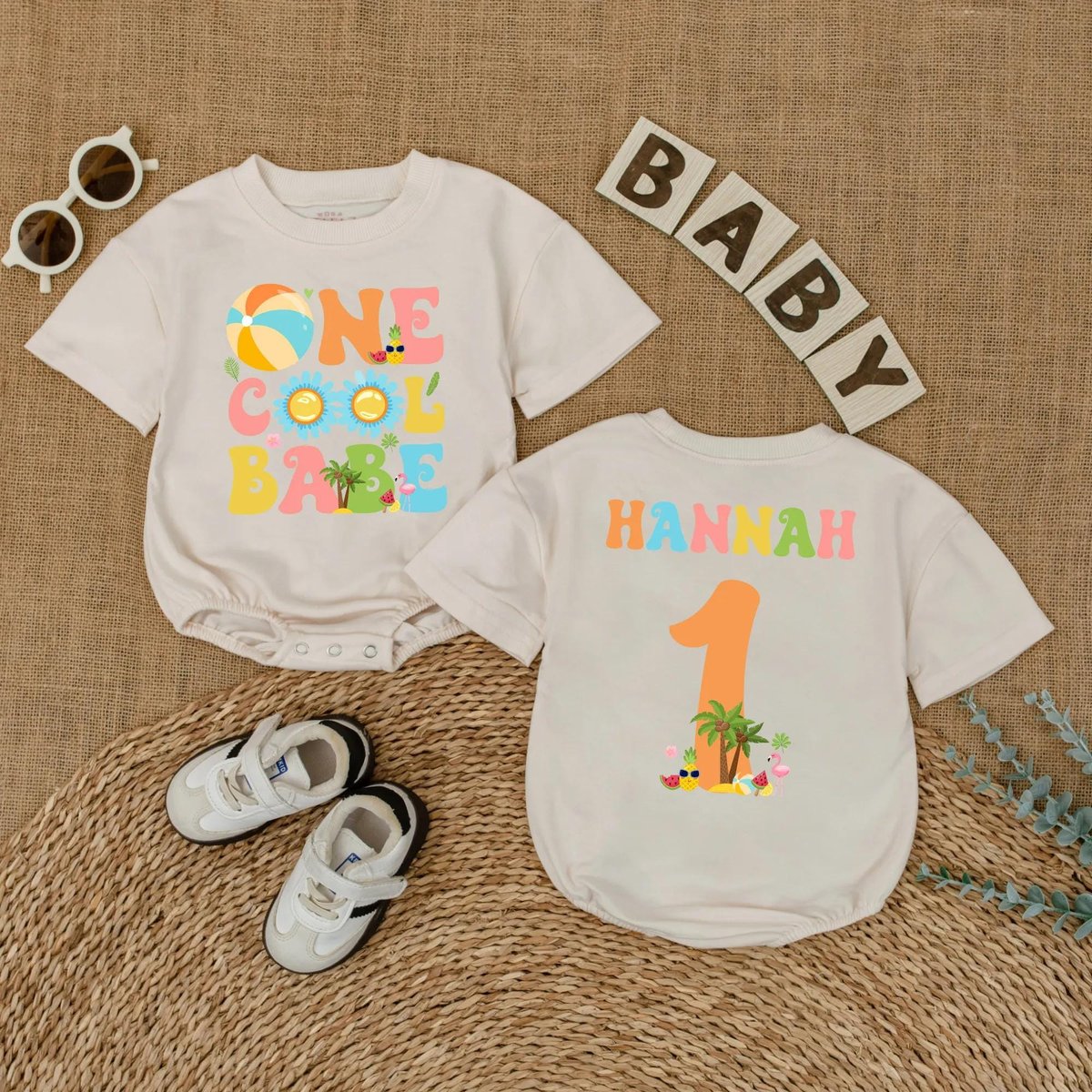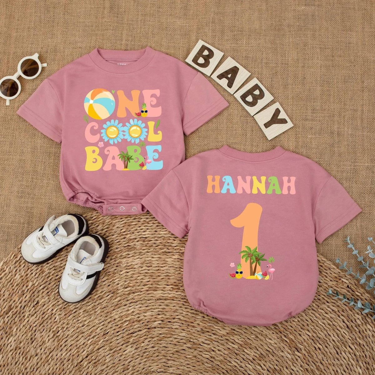 Personalized One Cool Babe Romper Custom Beach Birthday Baby Outfit Summer Bubble Romper for Girl Po 431