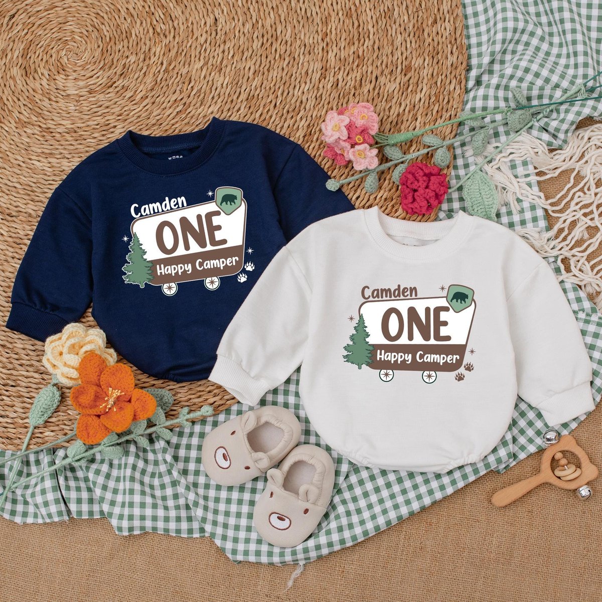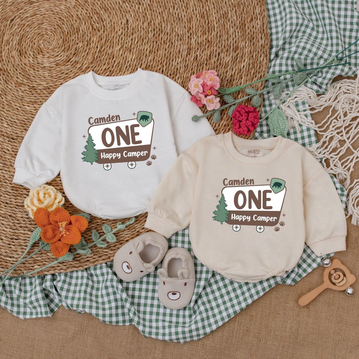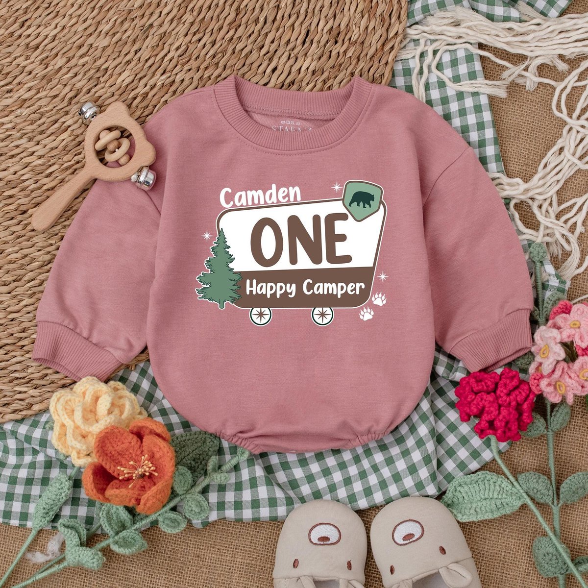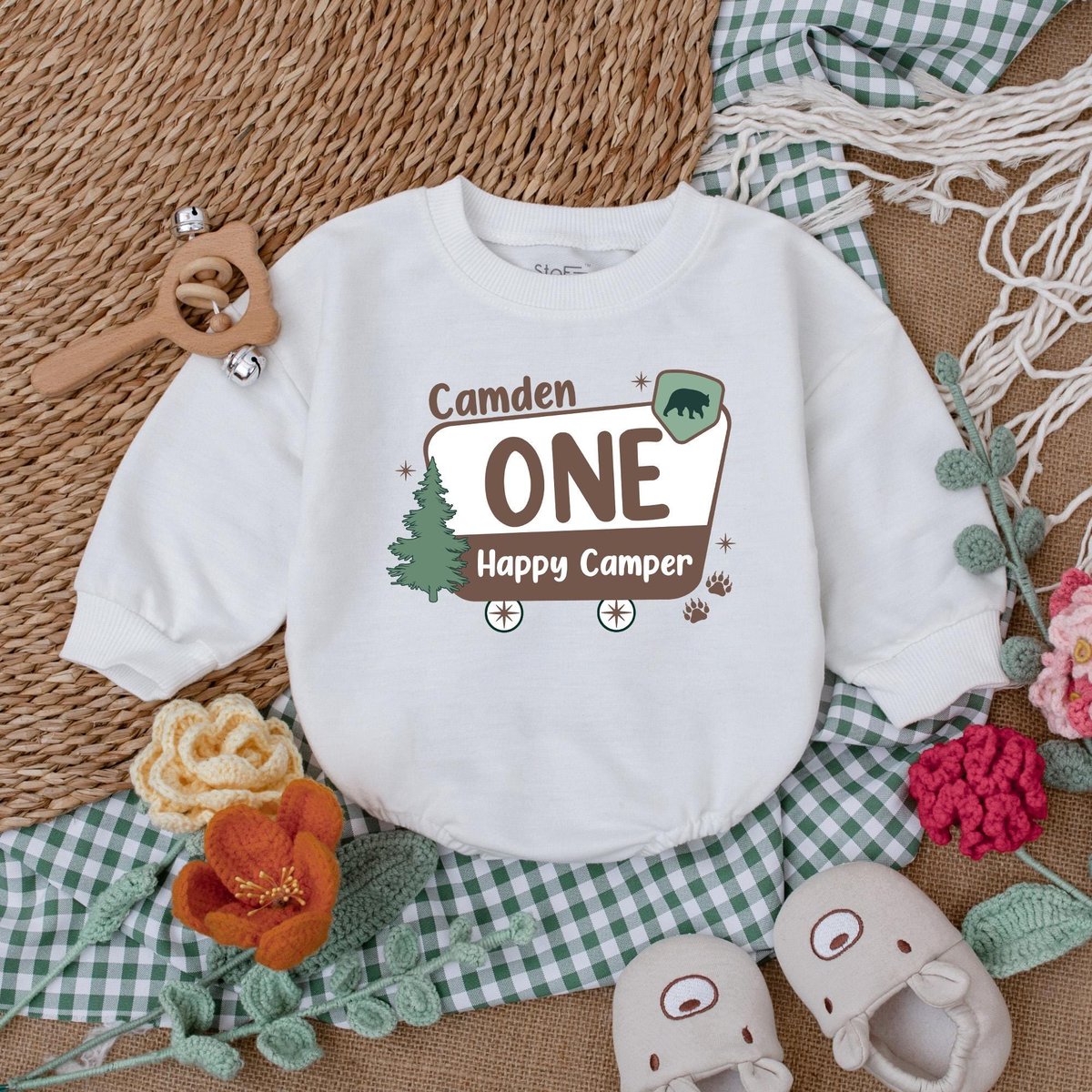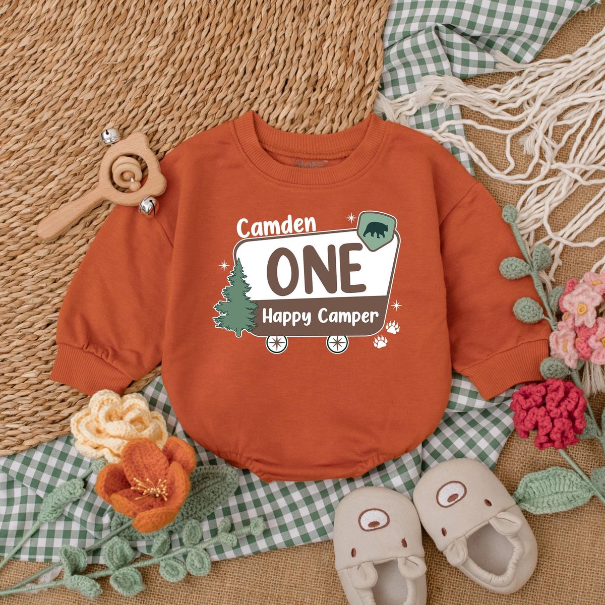 Personalized One Happy Camper Romper Camping 1st Birthday Bodysuit Boys First Birthday Outfit Advent 185
