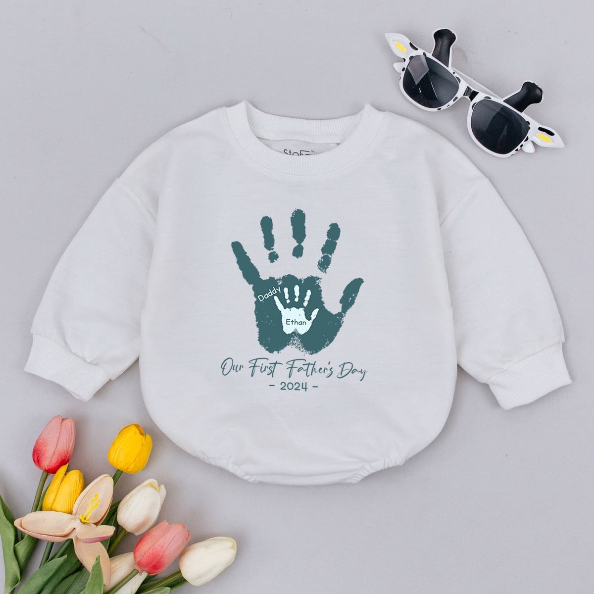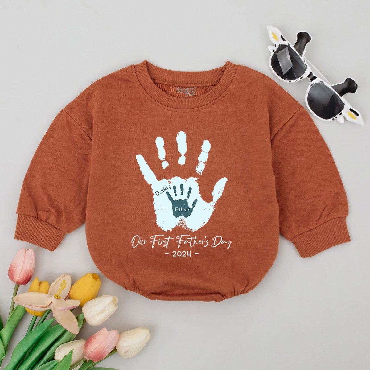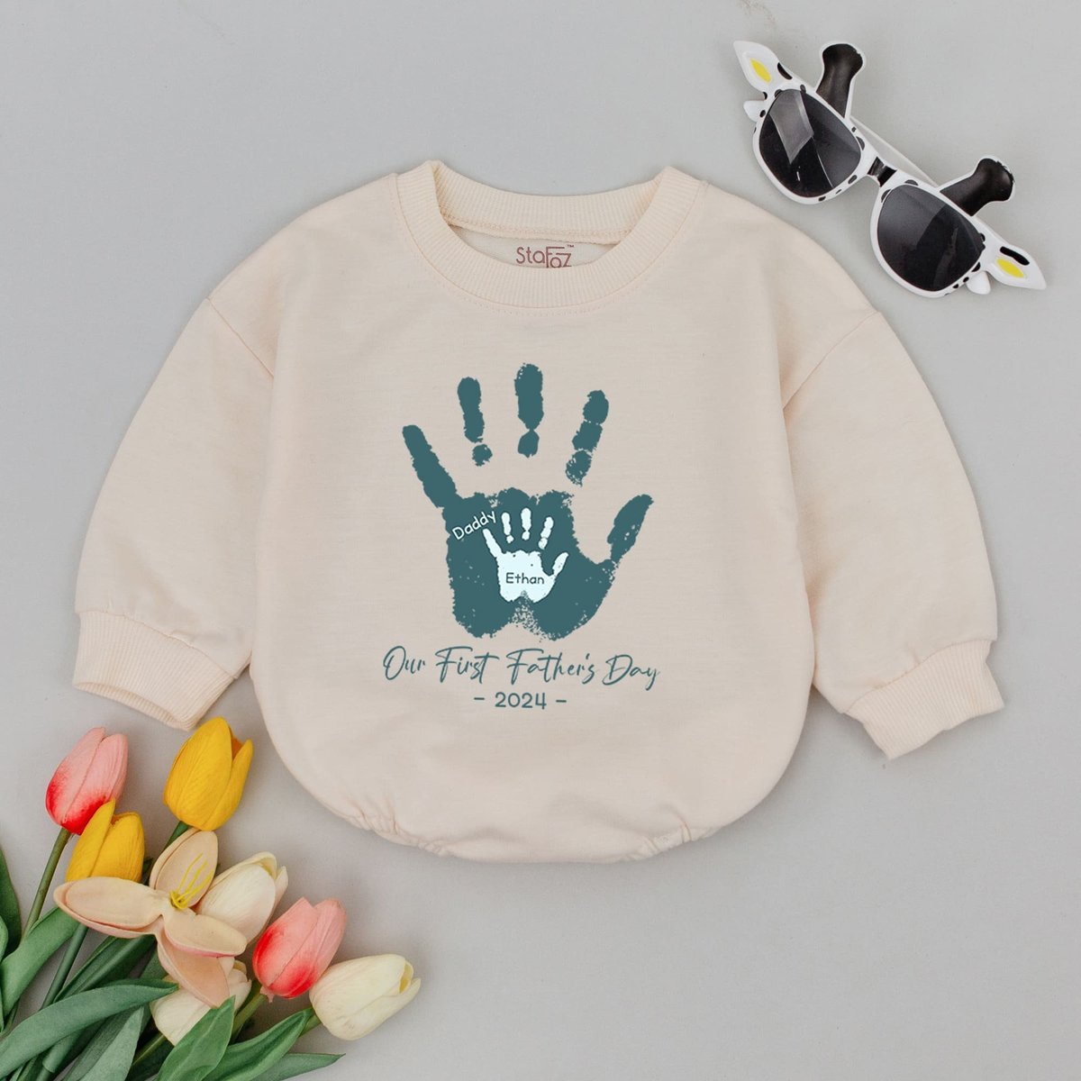 Personalized Our First Father’s Day Hands Dad Baby Romper Fathers Day Gift 1st Father’s day Baby C 172